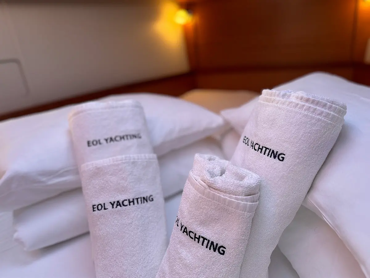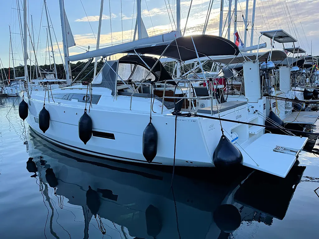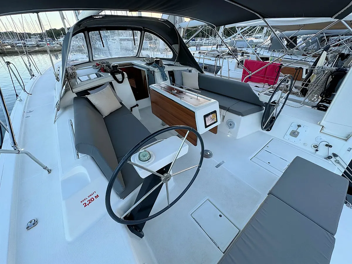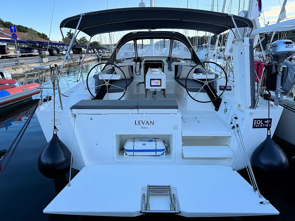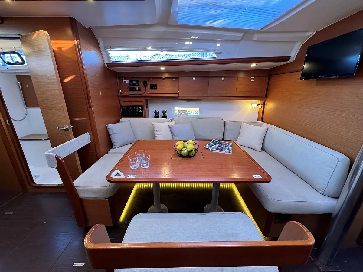 Cockpit speakers, Holding tank, Bimini, Cockpit cushions, Barbecue grill in cockpit, Dinghy, Sprayhood, Refrigerator, Air condition, Heating