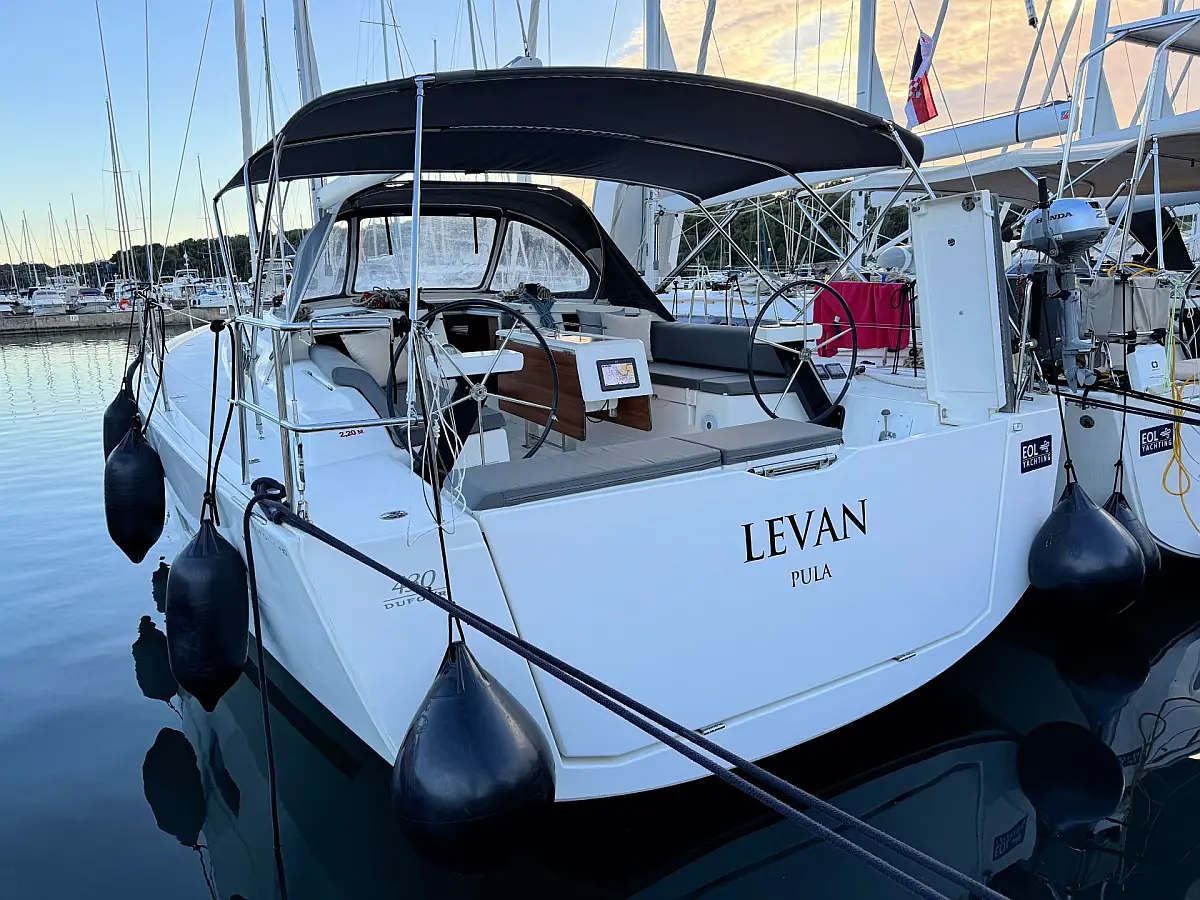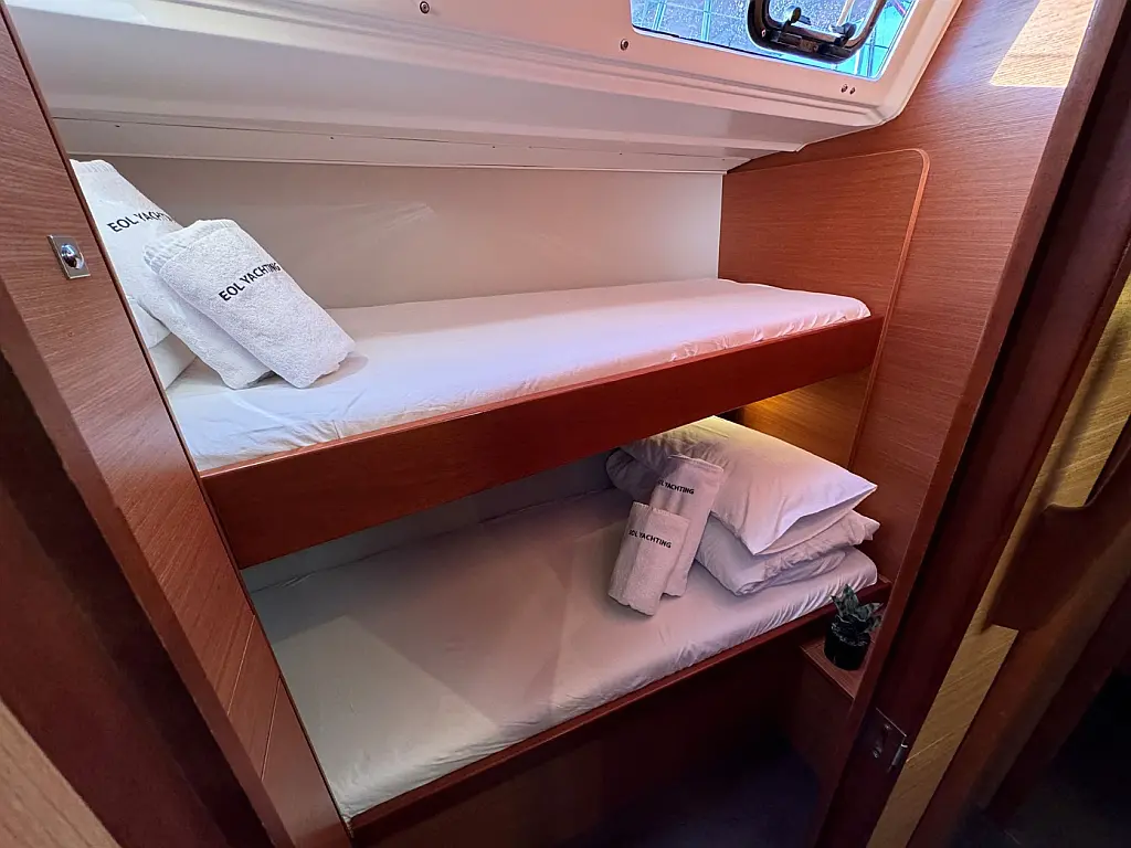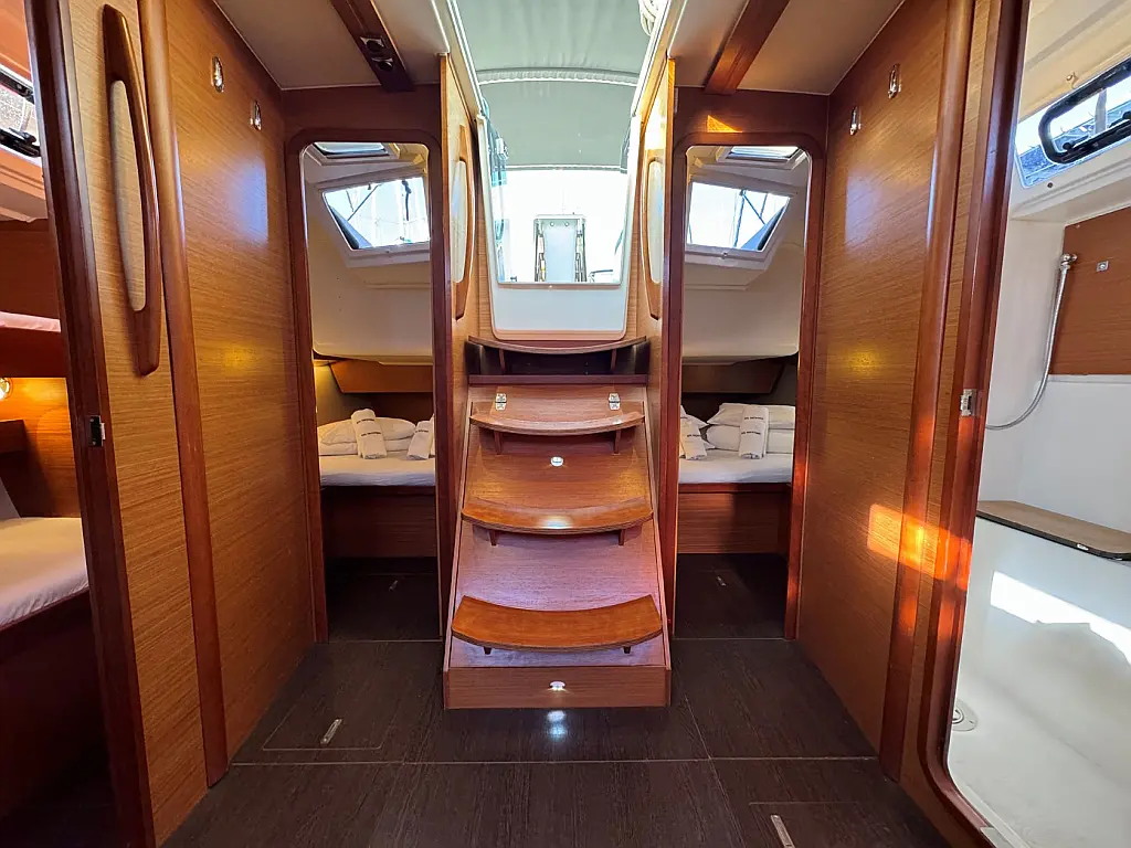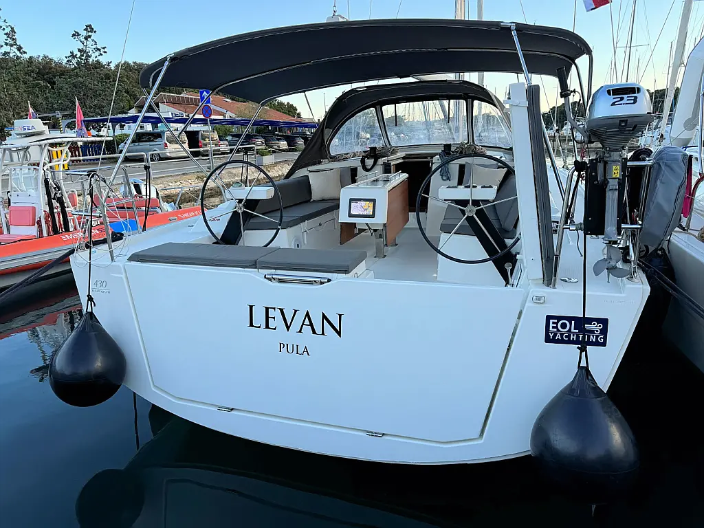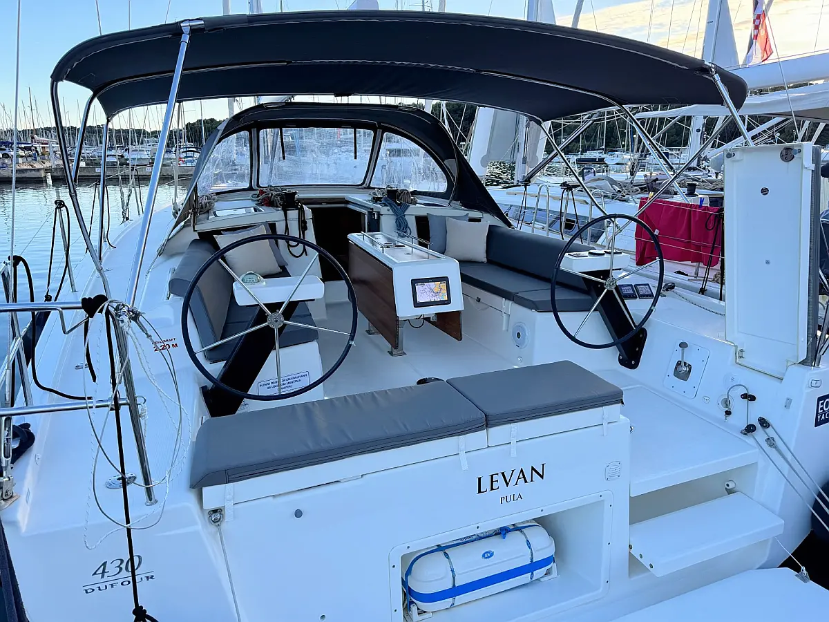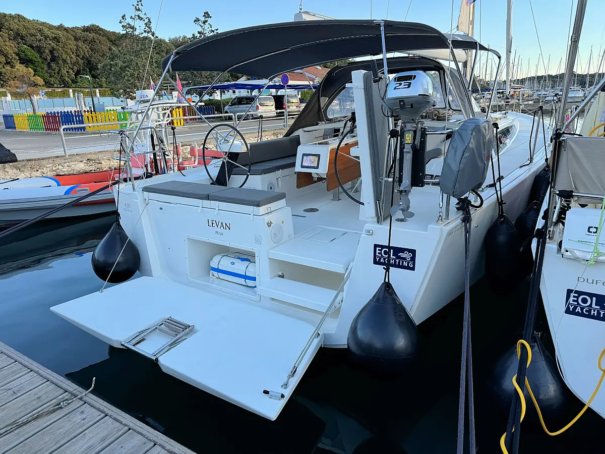 Cockpit speakers, Holding tank, Bimini, Cockpit cushions, Barbecue grill in cockpit, Dinghy, Sprayhood, Refrigerator, Air condition, Heating