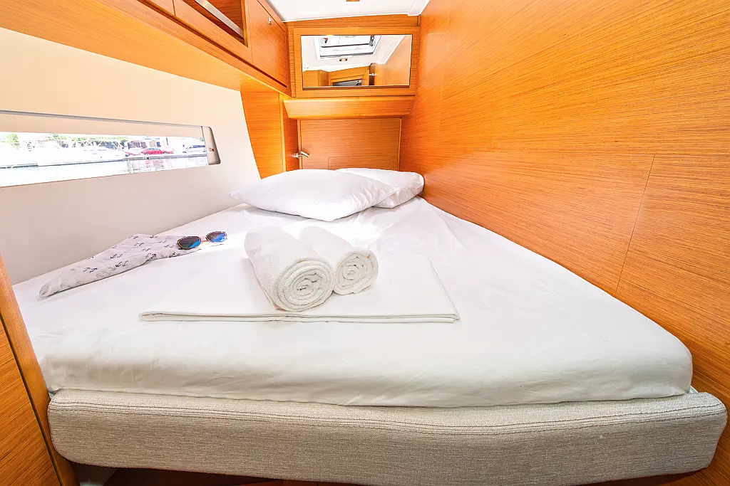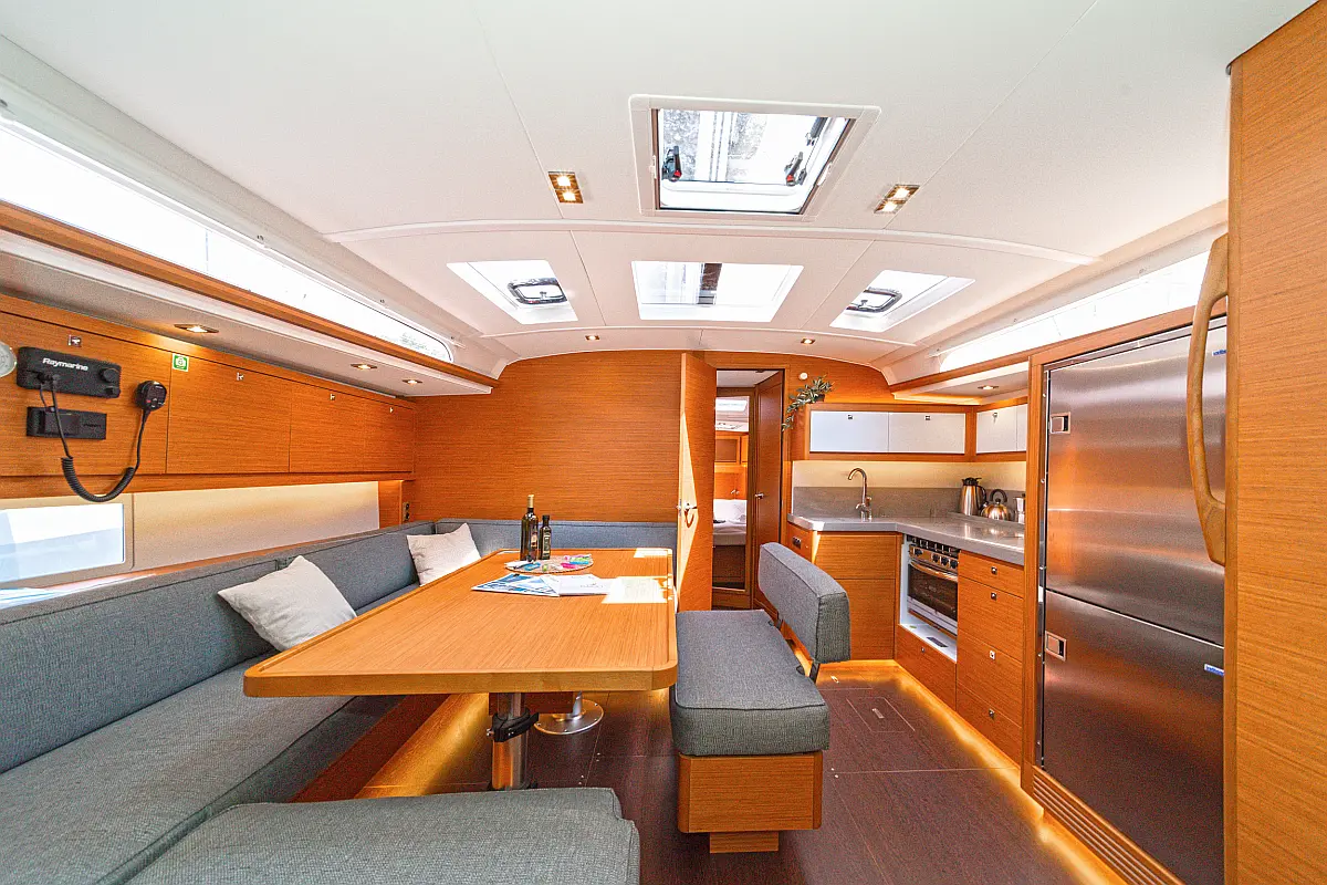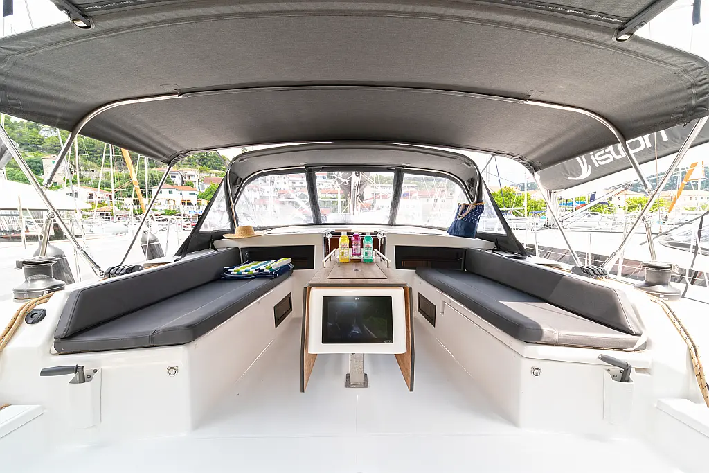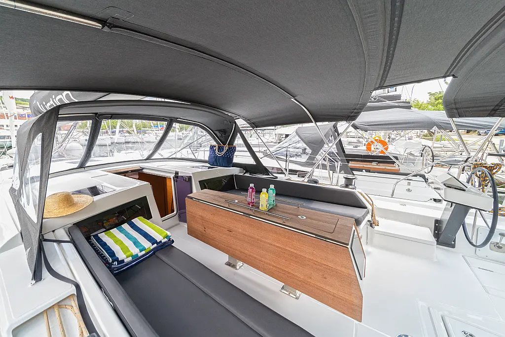 Cockpit cushions, Sprayhood, Bimini, Wi-Fi & Internet, Holding tank, Dinghy, Outboard engine, Heating, Inverter, Electric toilet, Refrigerator, Barbecue grill in cockpit, Cockpit speakers, Solar Panels