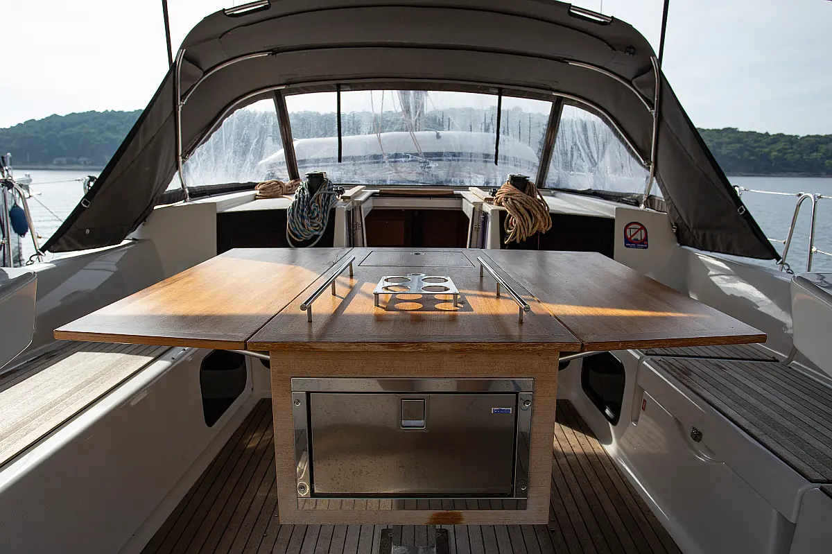 Bimini, Holding tank, Dinghy, Sprayhood, Refrigerator, Heating