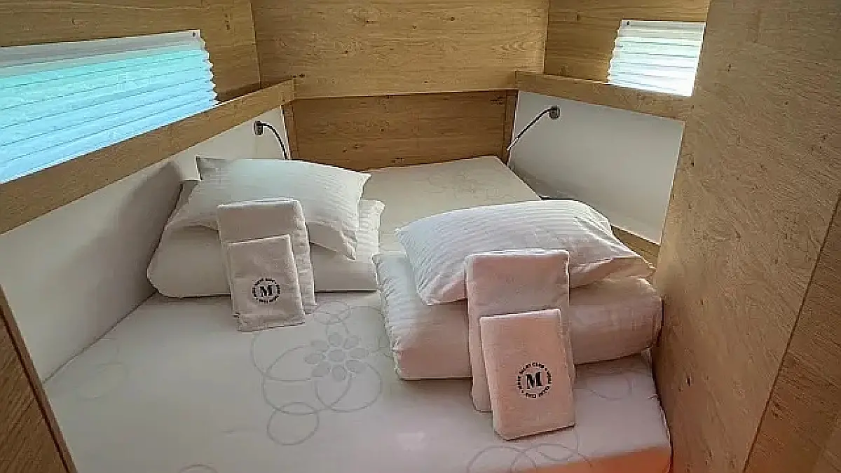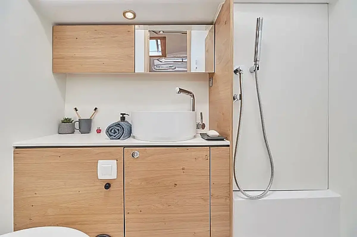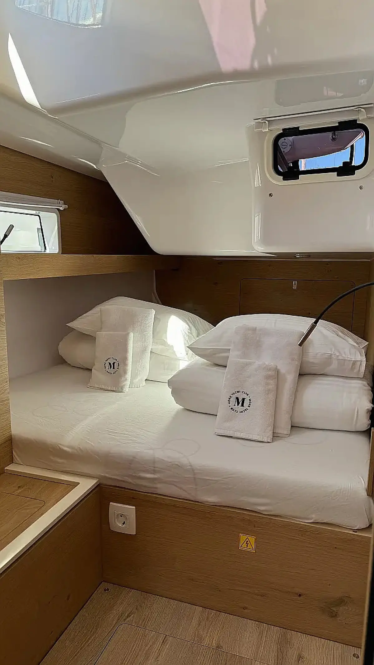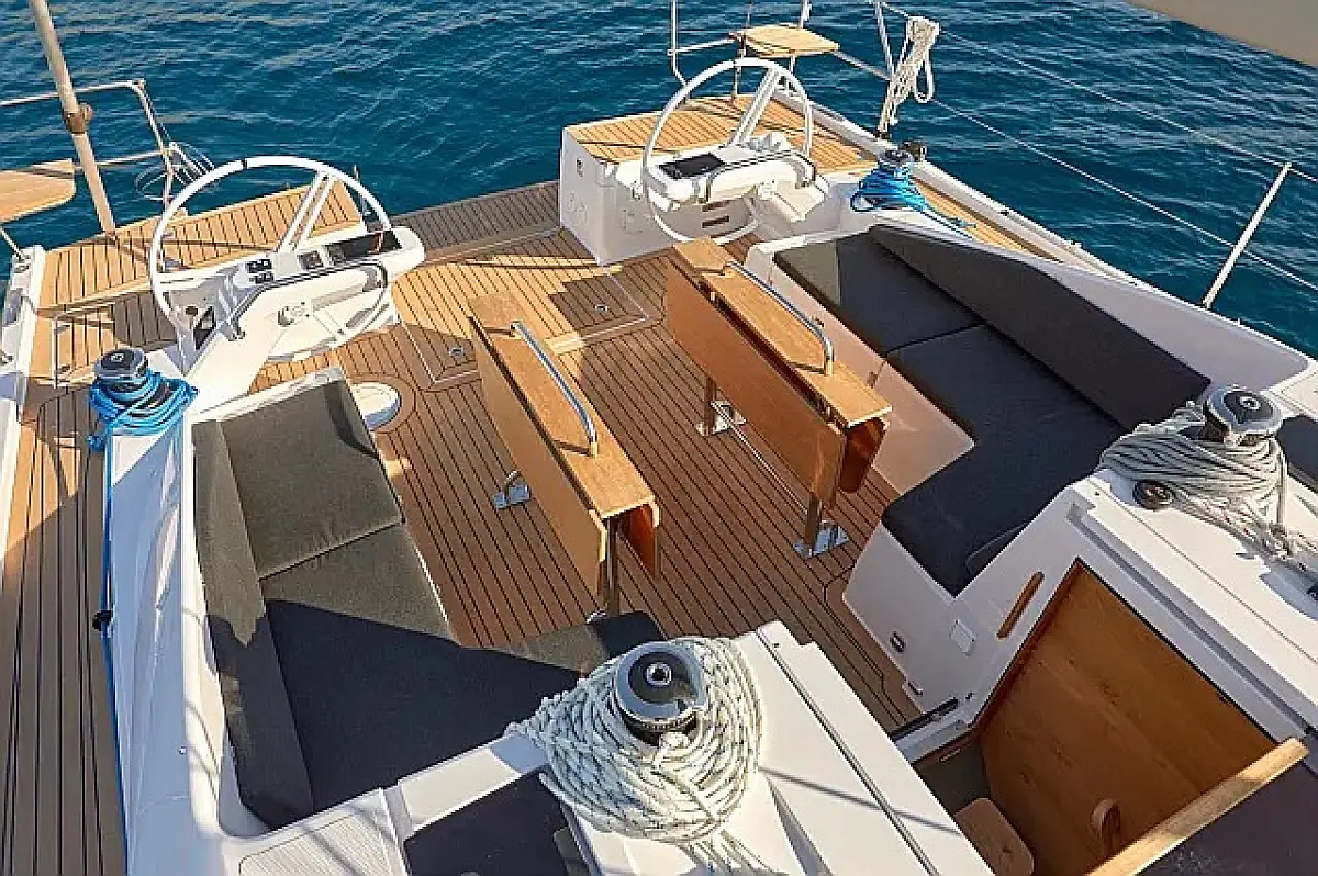Refrigerator, Swimming platform, Bimini, Cockpit cushions, Cockpit speakers, Dinghy, Heating, Holding tank, Sprayhood, Teak Cockpit, Wi-Fi & Internet