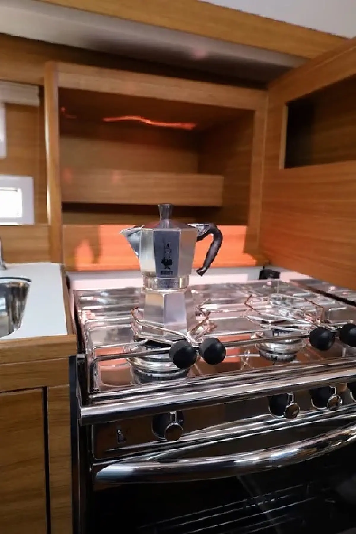 Refrigerator, Air condition, Bimini, Cockpit cushions, Cockpit speakers, Electric toilet, Heating, Holding tank, Solar Panels, Sprayhood, Teak Cockpit, Wi-Fi & Internet