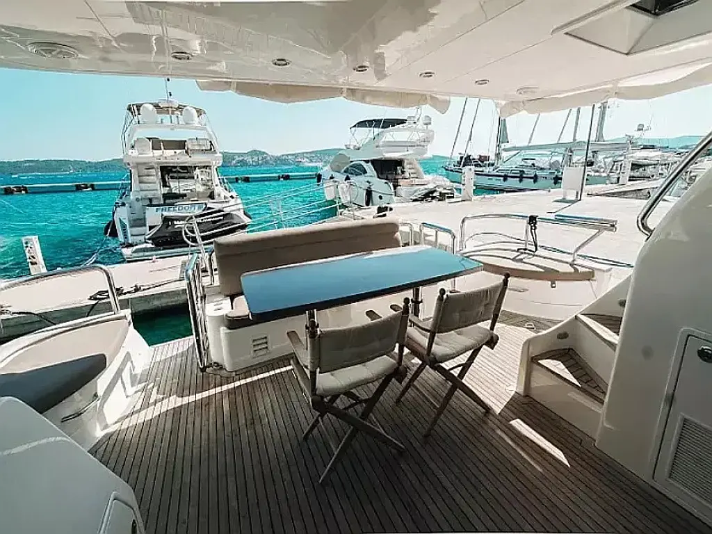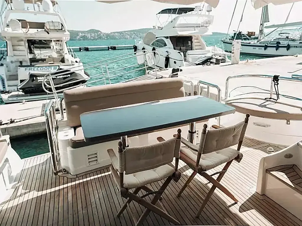 Air condition, Dinghy, Dishwasher, Generator, Heating, Swimming platform, Hydraulic gangway, Washer/Dryer, Outboard engine, Refrigerator, Water maker, Coffee maker, Flybridge