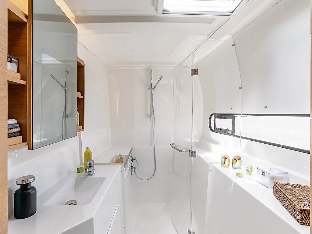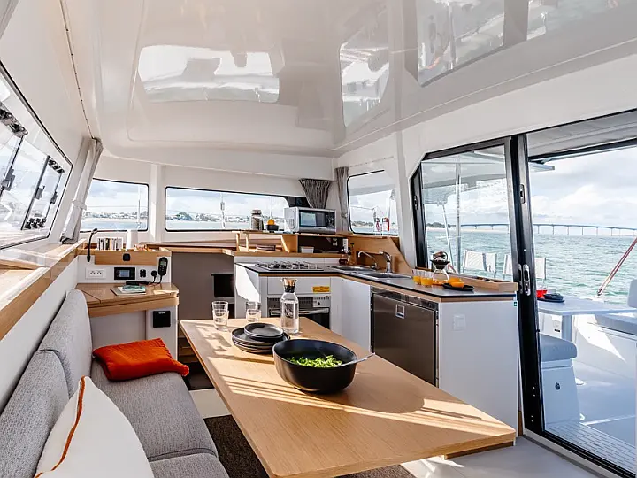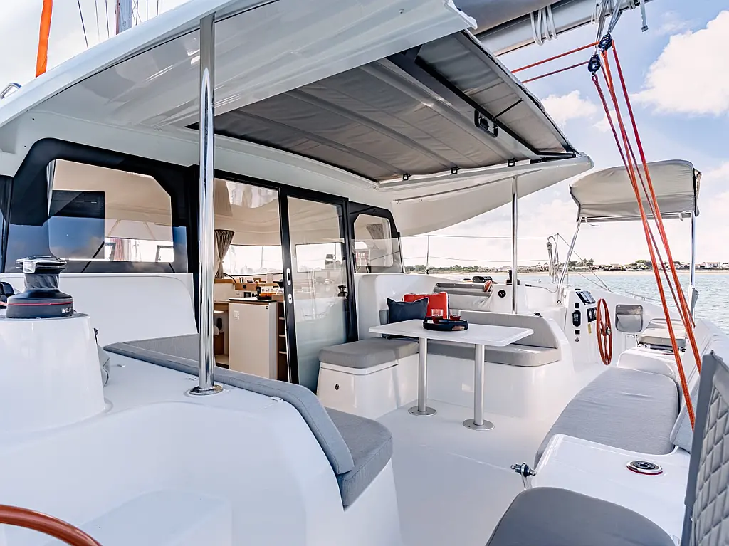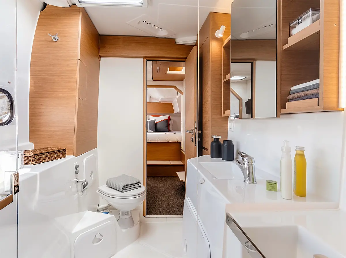 Refrigerator, Electric toilet, Electric winches, Inverter, Bimini, Cockpit cushions