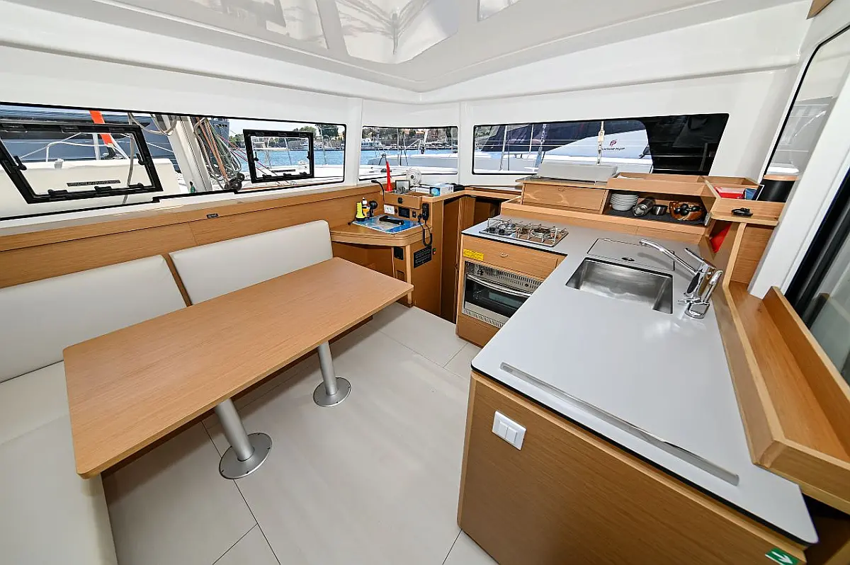 37 ft | Length 6 (4+2) Cabins 10 8+1+1 Berths 2 Heads Technical Specifications Draught: 4 ft | Engine: 2x29 hp Water capacity: 600.00 l Main sail: Full batten Displacement: 9000.00 kg Fuel capacity: 400.00 l Beam: 22 ft | Genoa: Furling Equipment Navigation: Autopilot Comfort: Dinghy, Electric winches, Heating, Sprayhood, Water maker Entertainment: Radio-CD player Documents Download Brochure