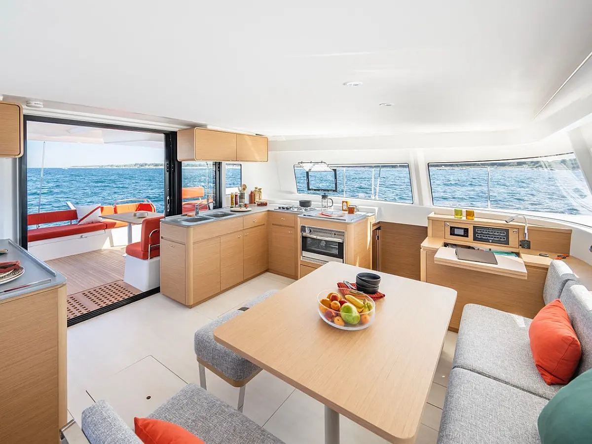 Electric toilet, Inverter, Cockpit cushions, Refrigerator, Solar Panels, Air condition, Water maker, Generator