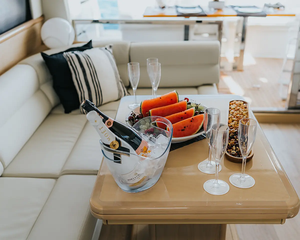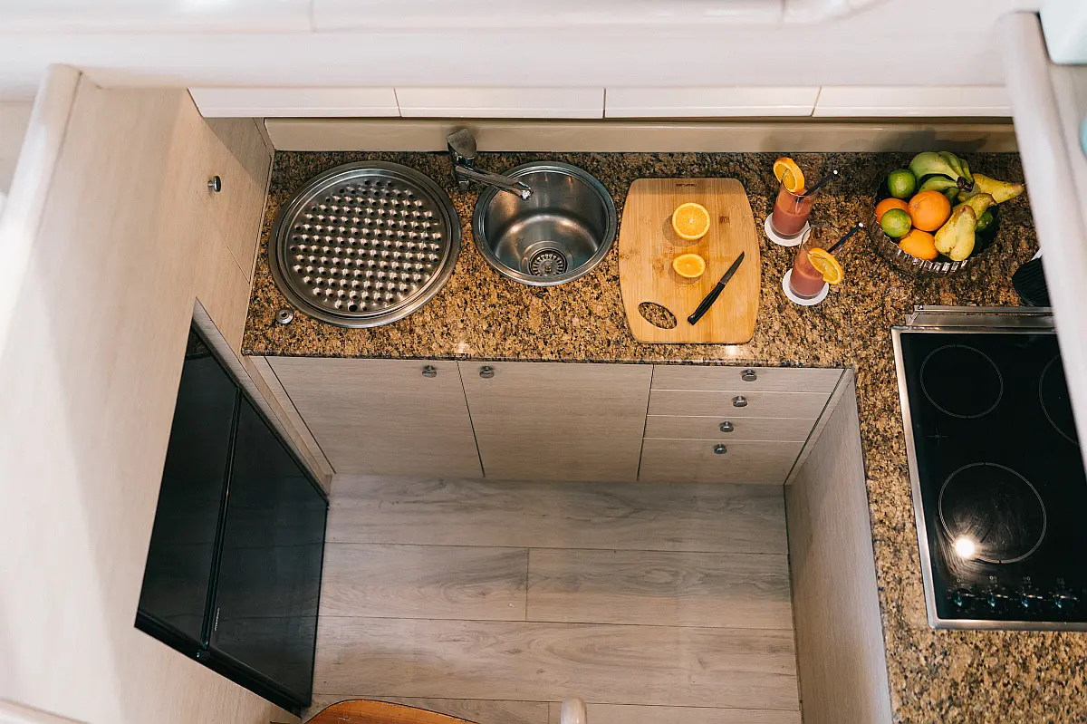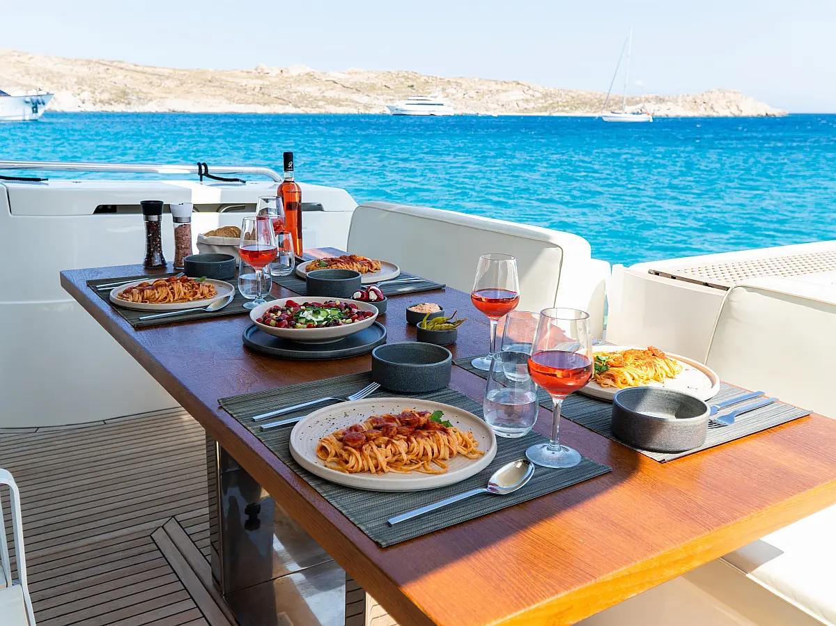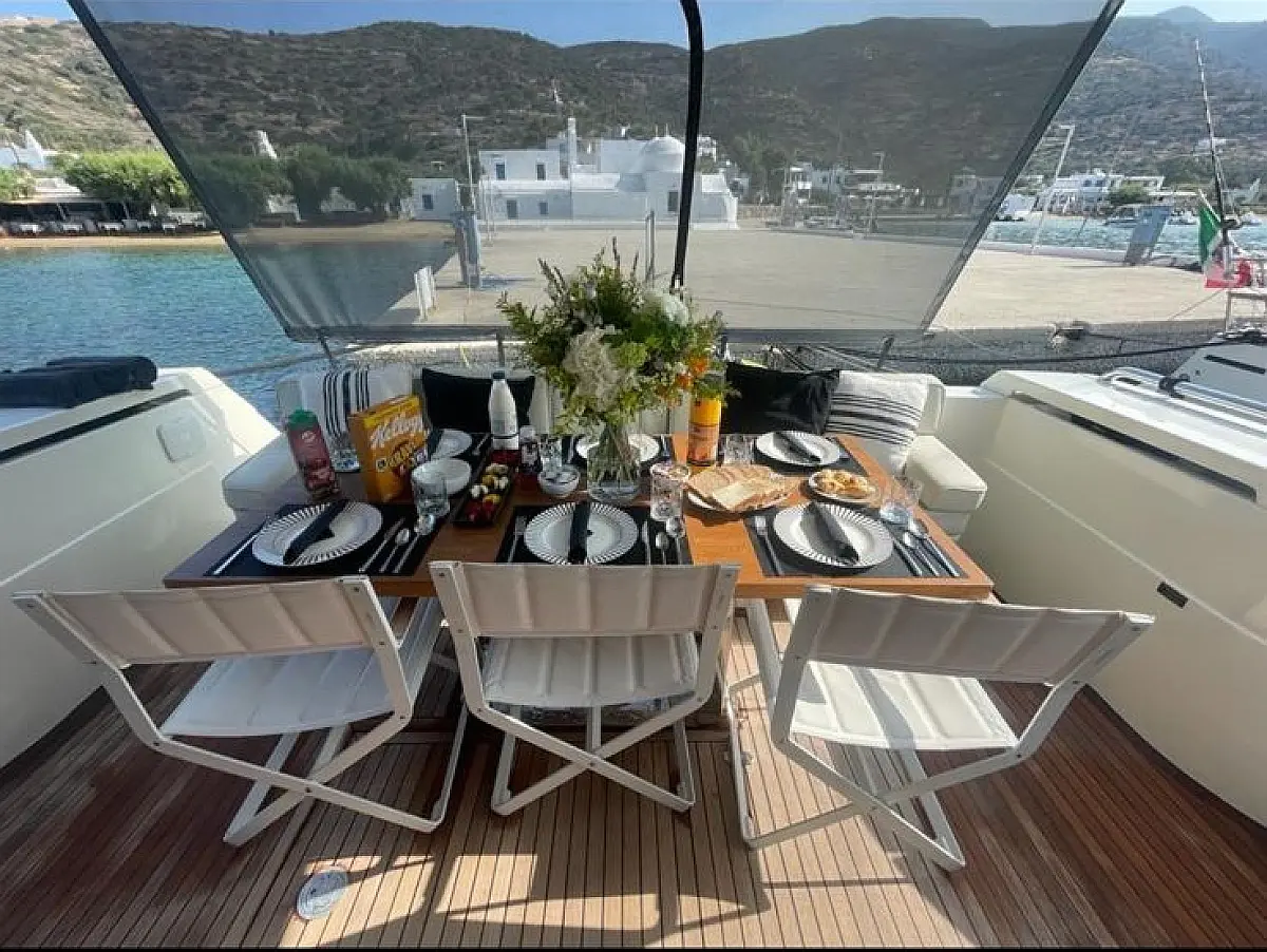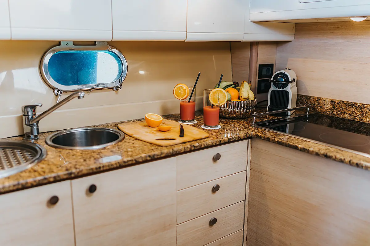 Ice maker, Water maker, Air condition, Heating, Solar Panels, Teak deck, Electric winches, Inverter, Bimini, Generator, Refrigerator, Coffee maker