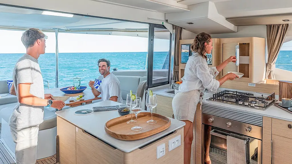 Bimini, Refrigerator, Barbecue grill in cockpit, Dinghy, Teak Cockpit, Coffee maker, Air condition, Electric winches, Generator, Heating, Solar Panels, Cockpit cushions