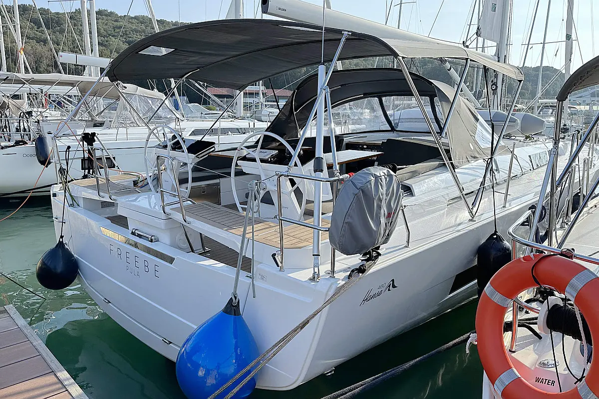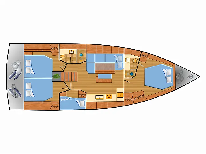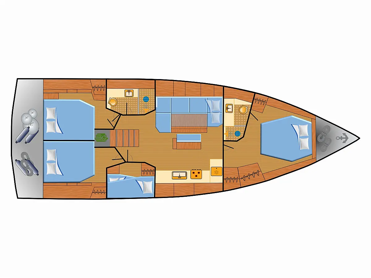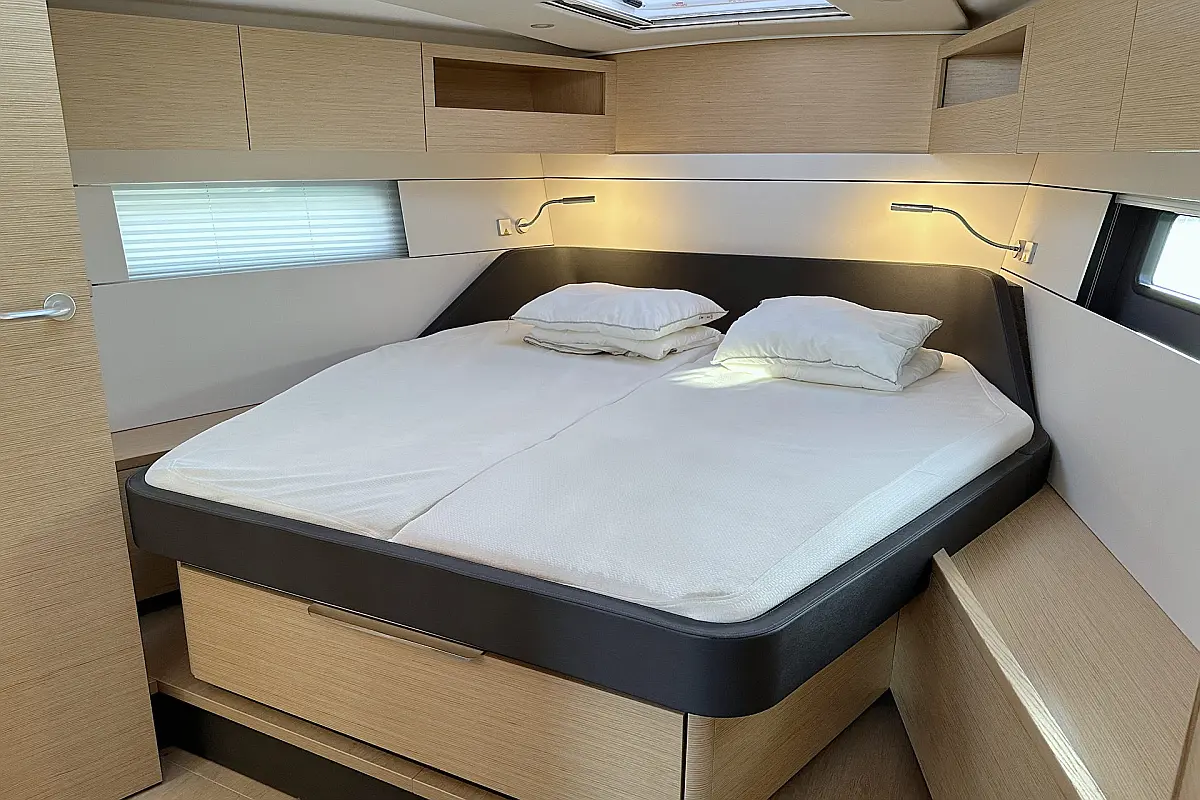 Heating, Wi-Fi & Internet, Refrigerator, Bimini, Dinghy, Holding tank, Sprayhood, Swimming platform, Cockpit cushions, Barbecue grill in cockpit, Teak Cockpit