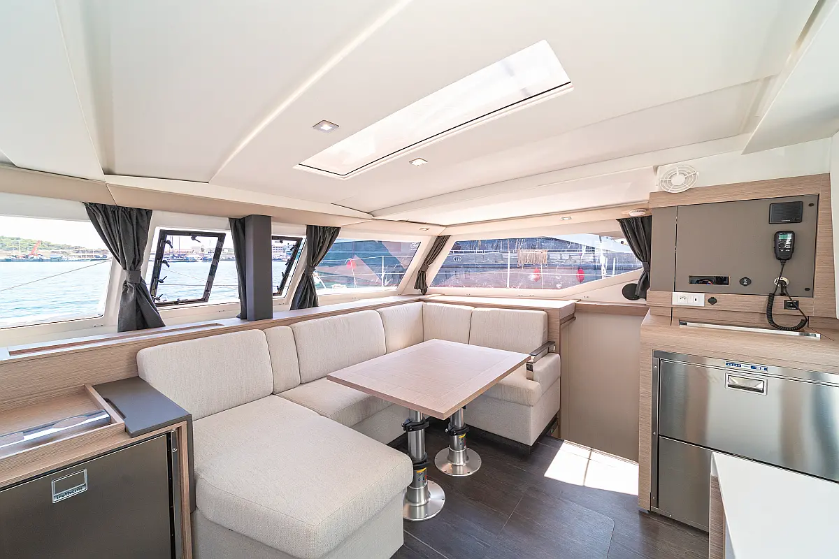 Bimini, Refrigerator, Barbecue grill in cockpit, Coffee maker, Holding tank, Wi-Fi & Internet, Electric toilet, Dinghy, Cockpit cushions, Solar Panels, Cockpit speakers