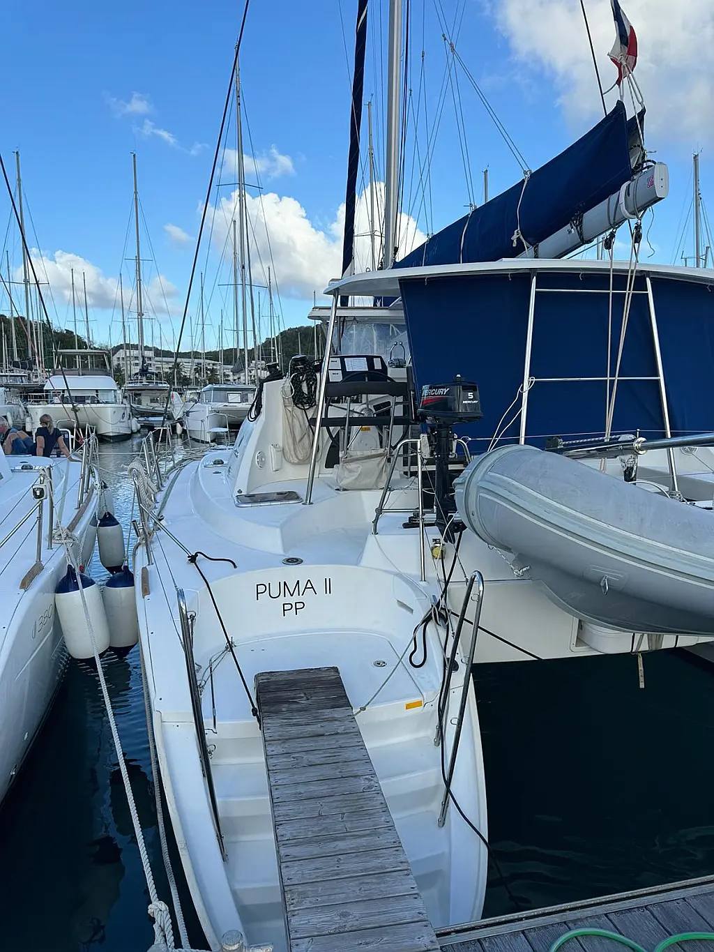 Dinghy, Bimini, Solar Panels, Cockpit cushions, Inverter