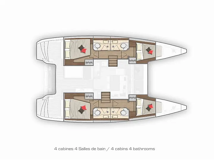 Refrigerator, Bimini, Cockpit cushions, Electric winches, Electric toilet, Wi-Fi & Internet, Air condition, Generator