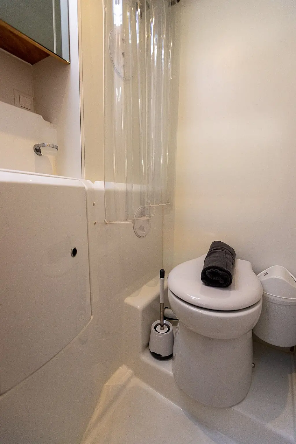 Air condition, Refrigerator, Solar Panels, Generator, Bimini, Cockpit cushions, Dinghy, Electric toilet