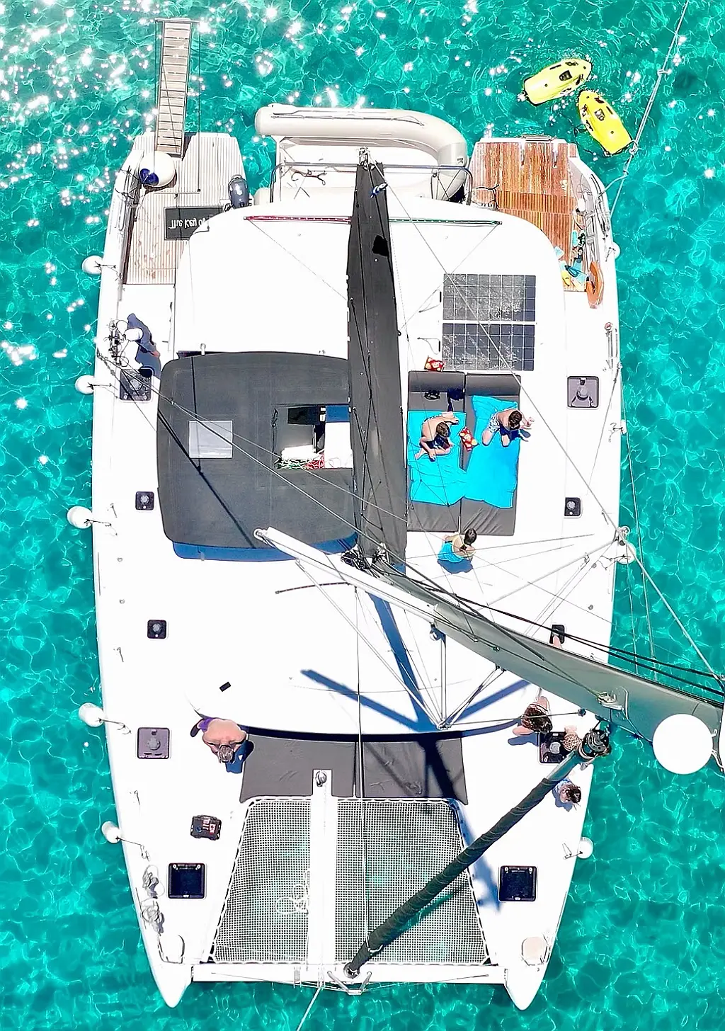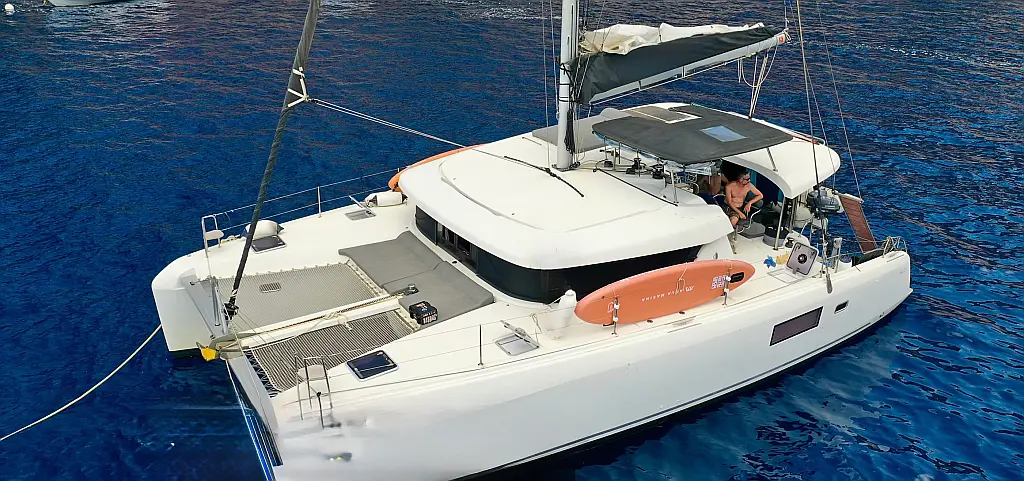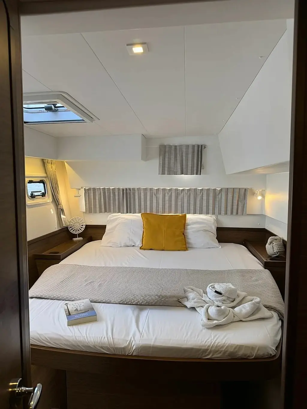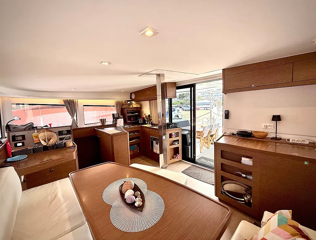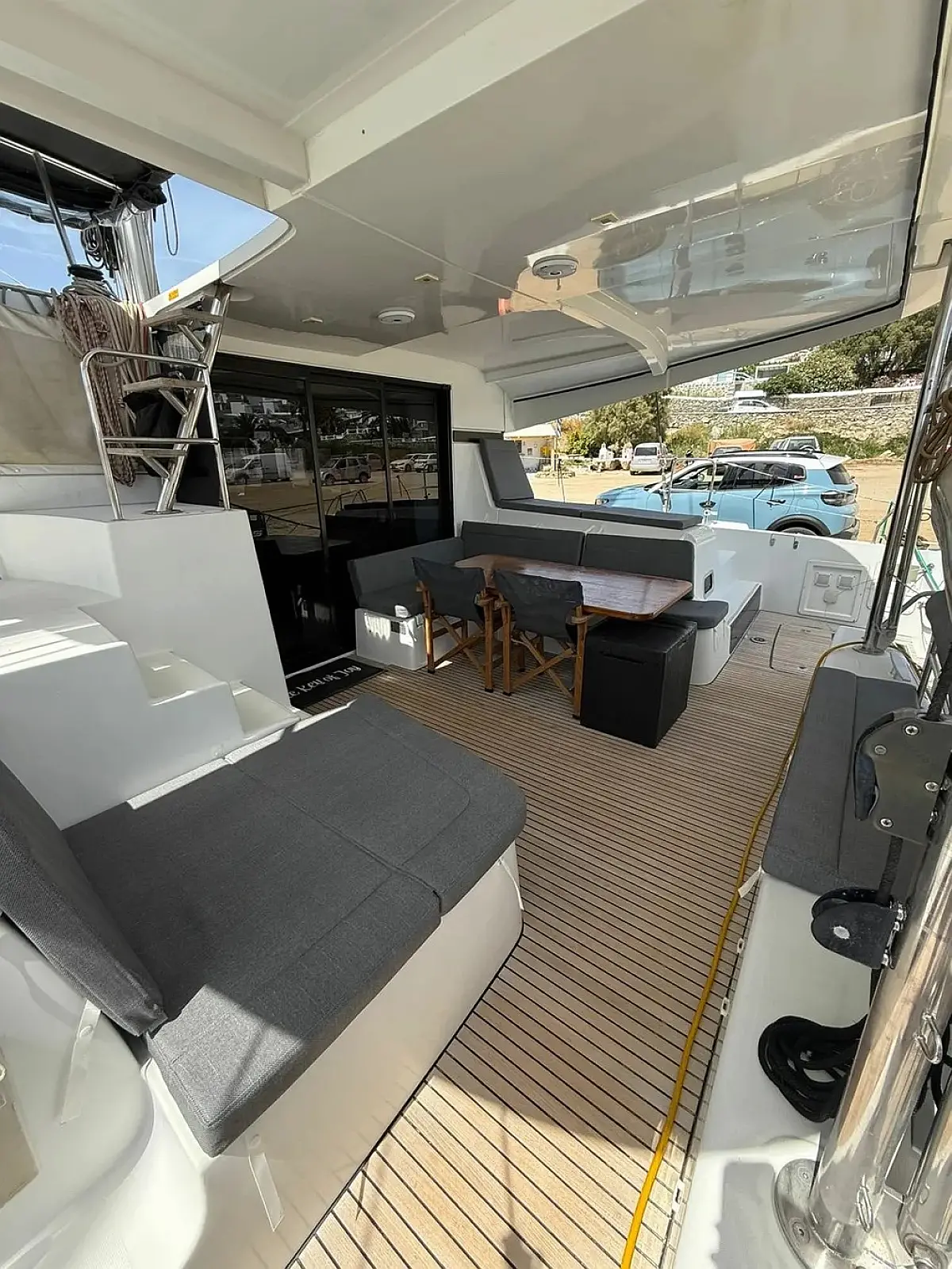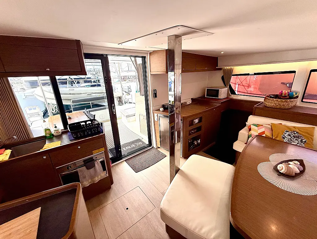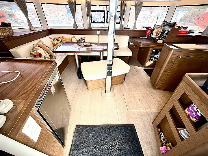 Refrigerator, Air condition, Generator, Inverter, Bimini, Sprayhood, Cockpit cushions, Cockpit speakers, Outboard engine, Coffee maker, Solar Panels, Teak deck, Water maker, Dinghy, Electric toilet, Ice maker