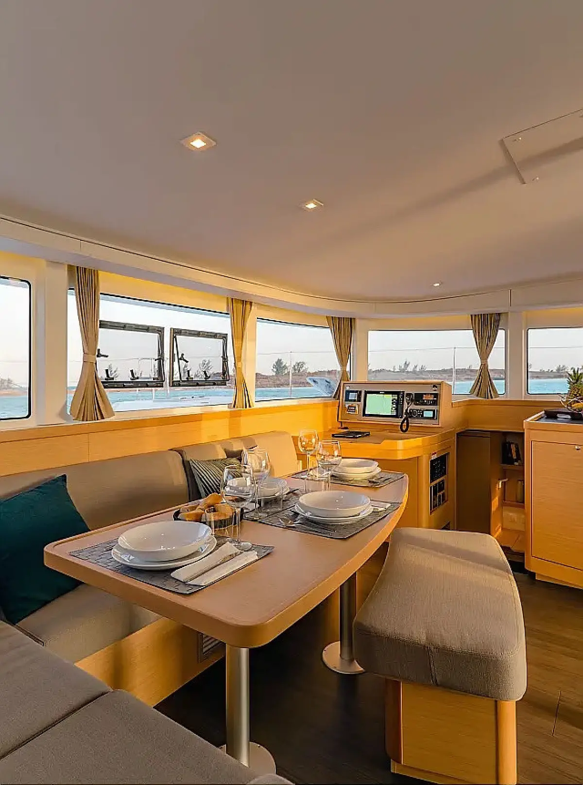 Refrigerator, Air condition, Bimini, Cockpit cushions, Cockpit speakers, Dinghy, Coffee maker, Electric toilet, Generator, Heating, Holding tank, Outboard engine, Solar Panels, Teak Cockpit, Wi-Fi & Internet