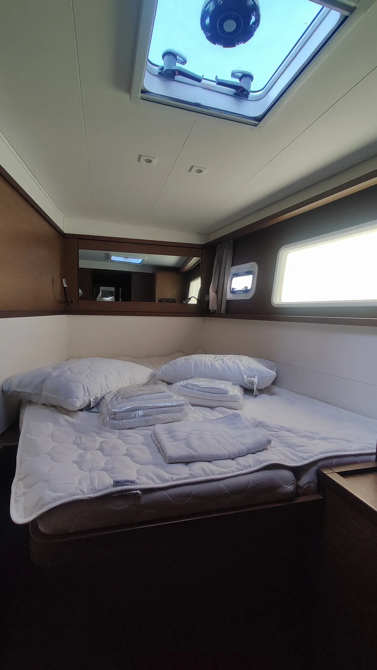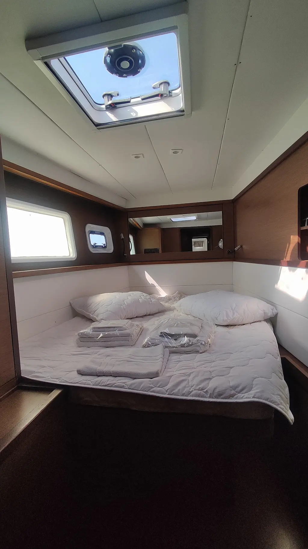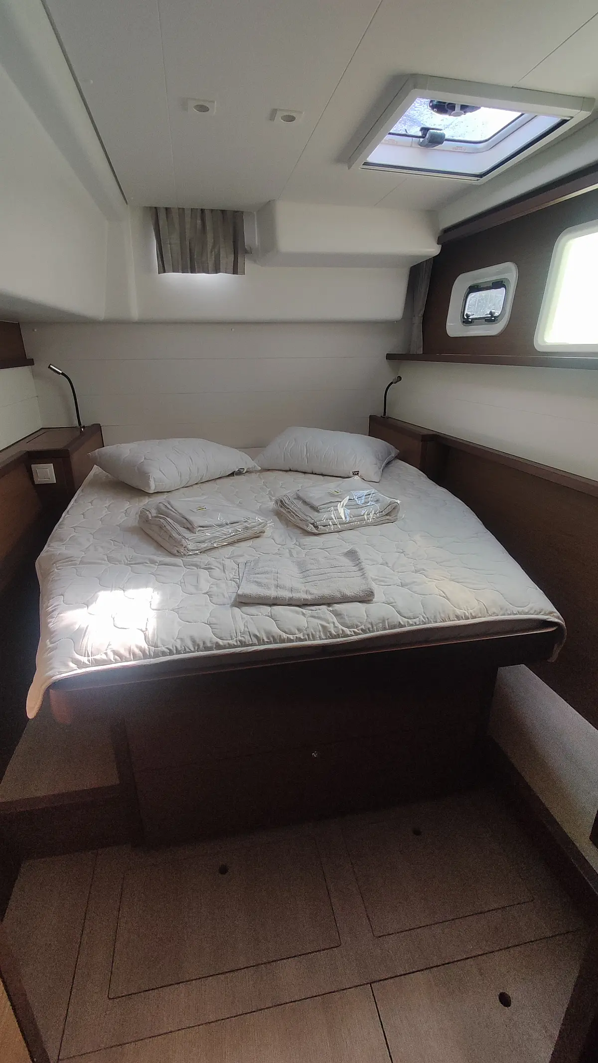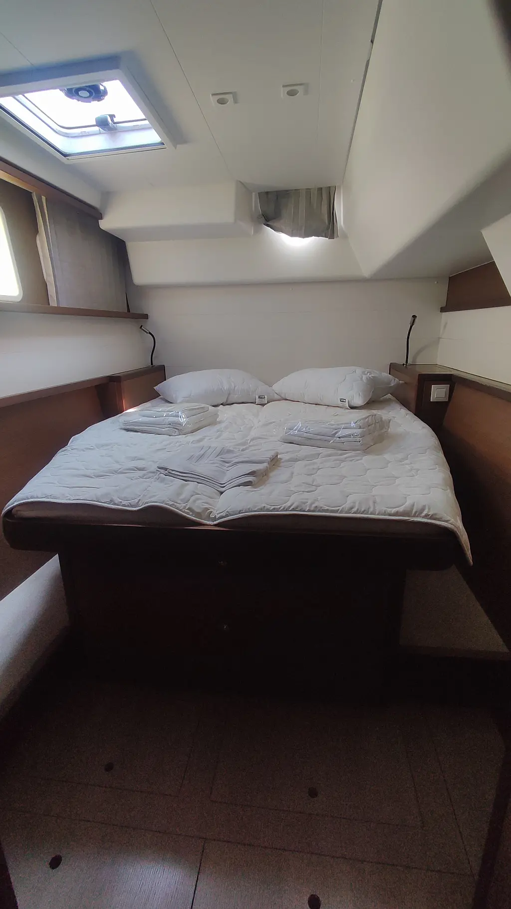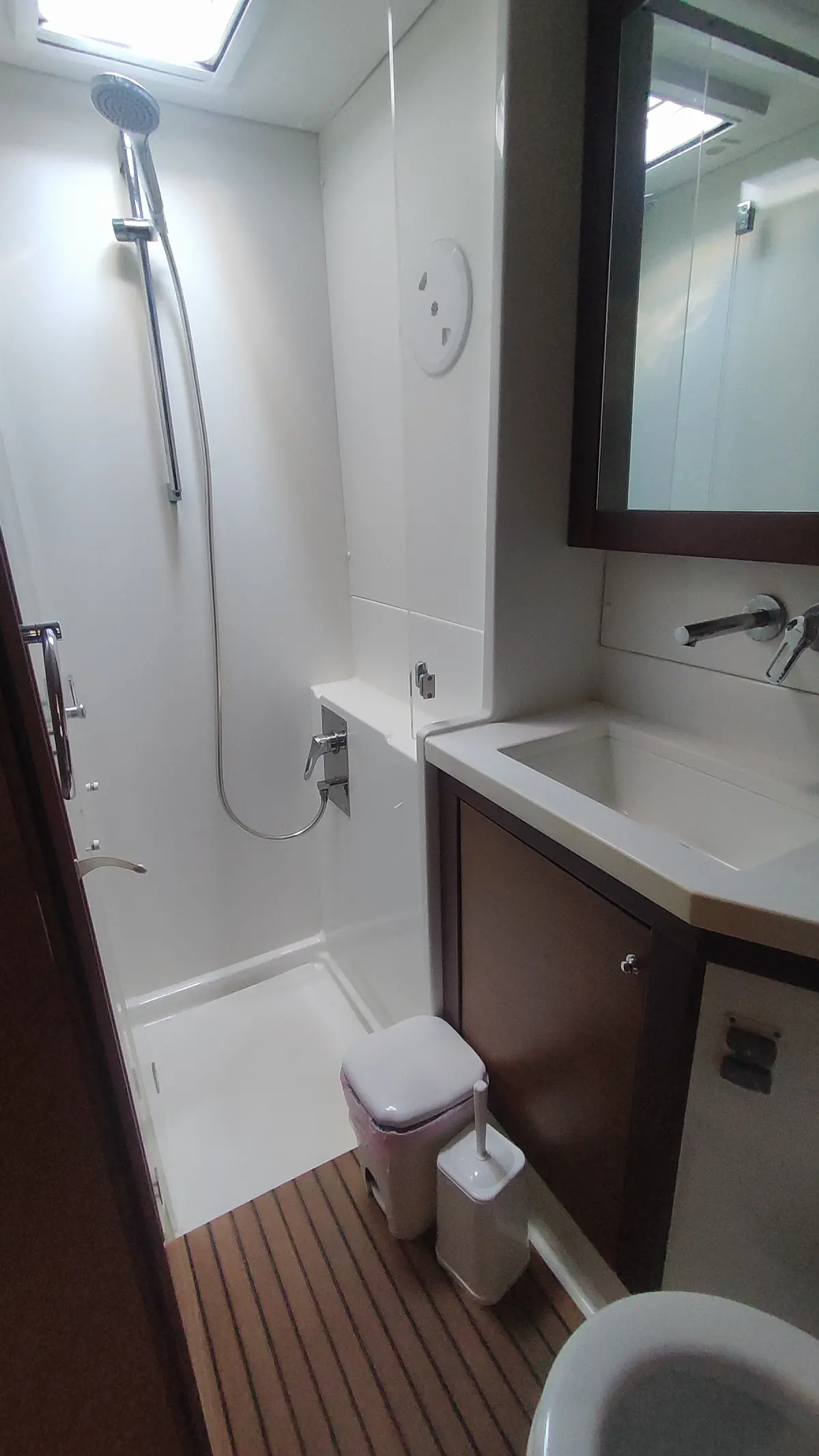 Refrigerator, Outboard engine, Flybridge, Dinghy, Bimini, Sprayhood, Cockpit speakers, Inverter, Cockpit cushions, Electric winches, Holding tank, Solar Panels, Electric toilet, Air condition, Generator, Water maker, Coffee maker