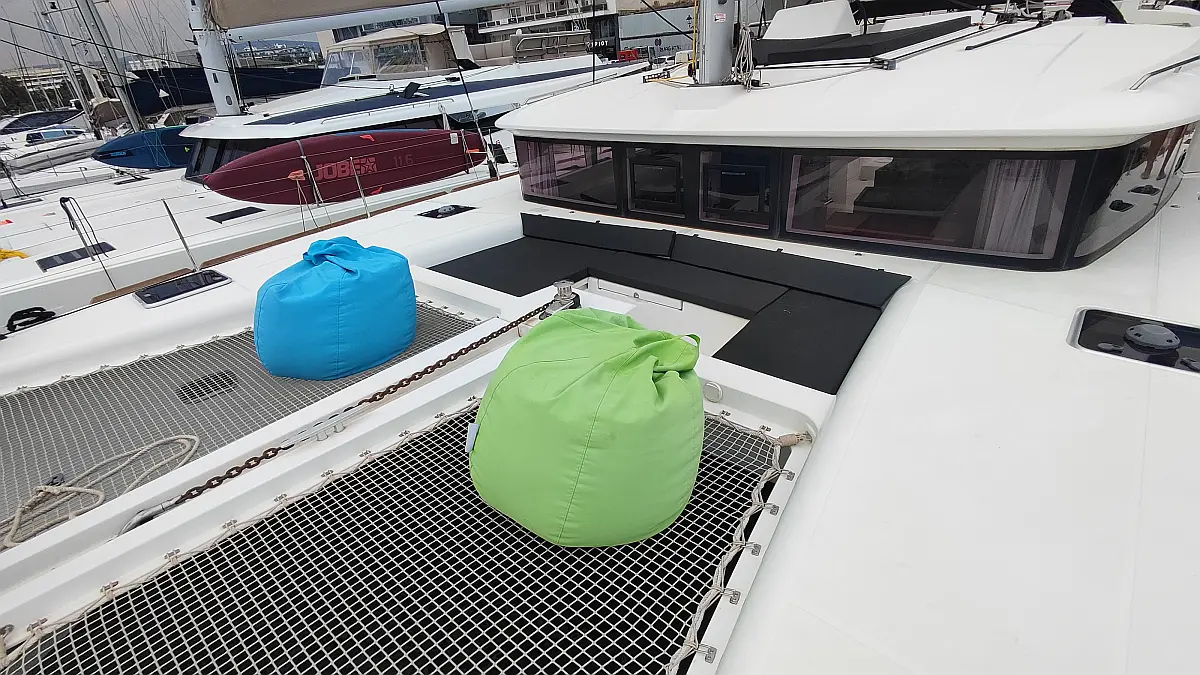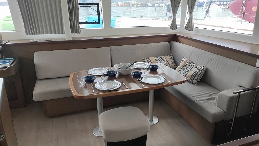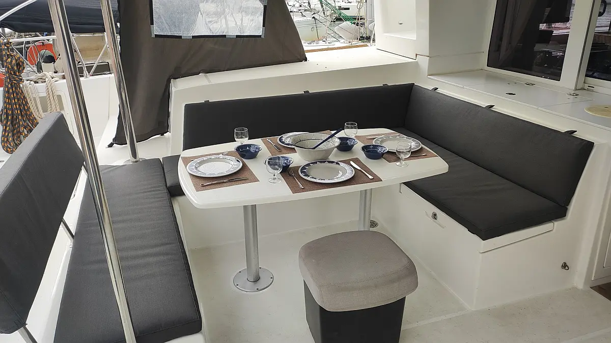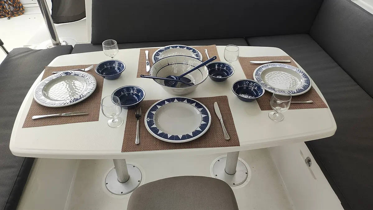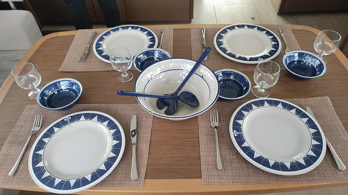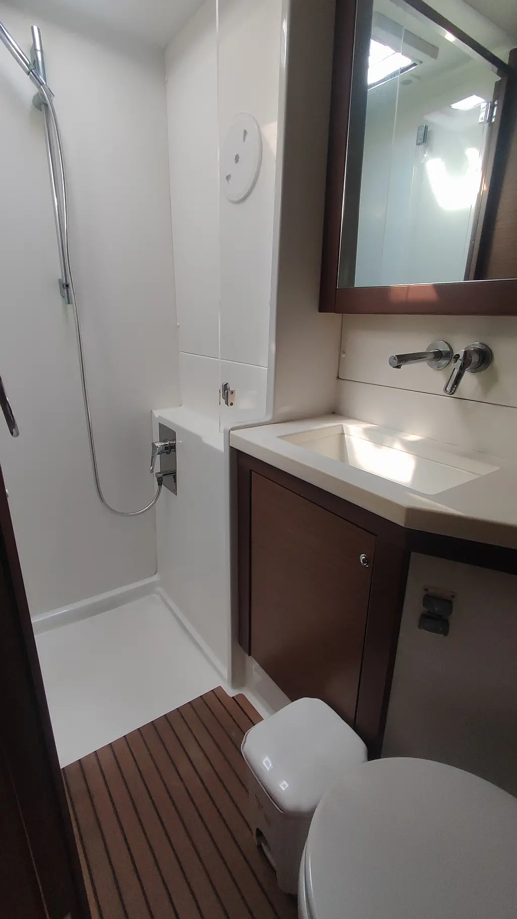 Refrigerator, Outboard engine, Flybridge, Dinghy, Bimini, Sprayhood, Cockpit speakers, Inverter, Cockpit cushions, Electric winches, Holding tank, Solar Panels, Electric toilet, Air condition, Generator, Water maker, Coffee maker