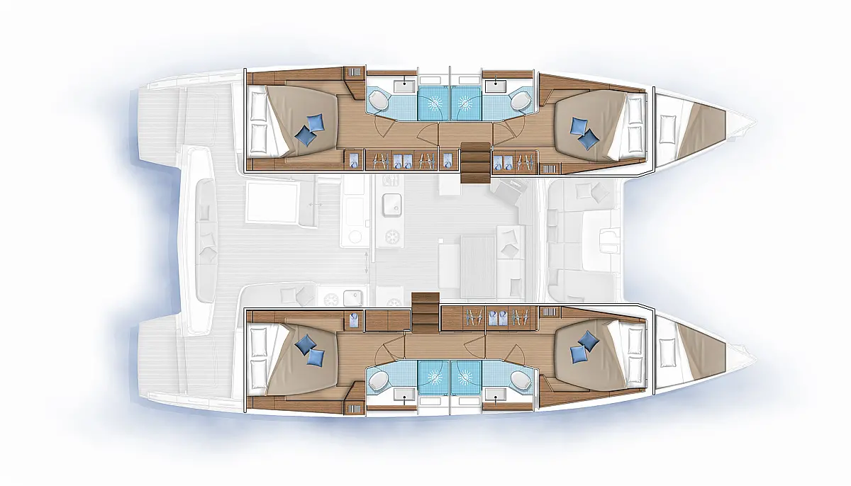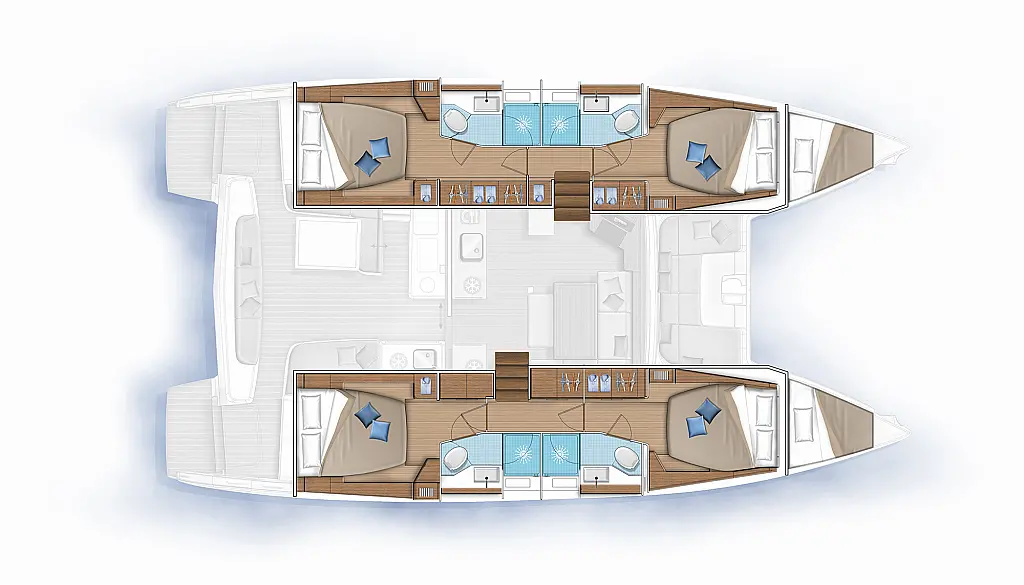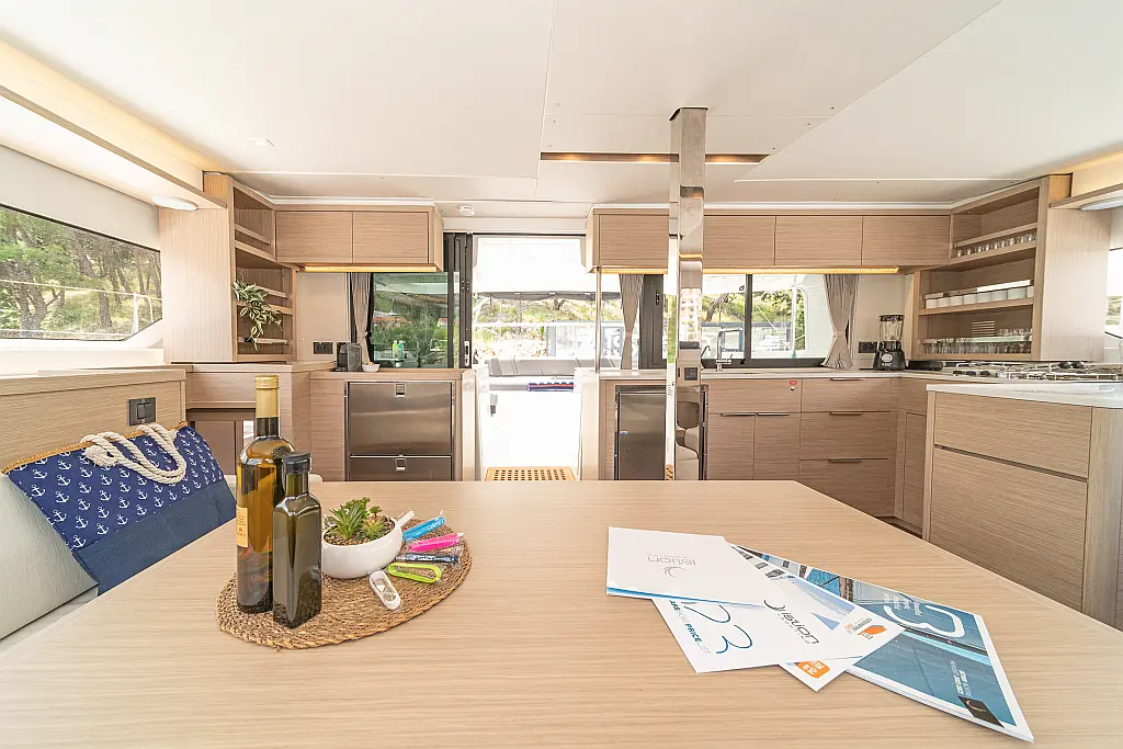 Cockpit cushions, Sprayhood, Bimini, Coffee maker, Generator, Water maker, Dinghy, Wi-Fi & Internet, Electric toilet, Refrigerator, Hydraulic gangway, Solar Panels, Cockpit speakers