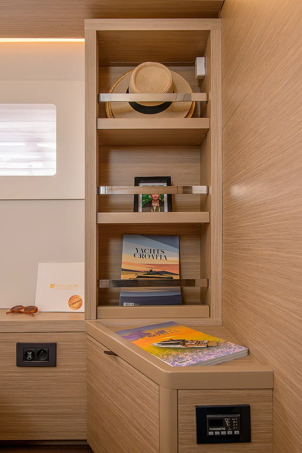Bimini, Teak Cockpit, Outboard engine, Air condition, Refrigerator, Generator, Ice maker, Coffee maker, Water maker, Wi-Fi & Internet, Electric toilet