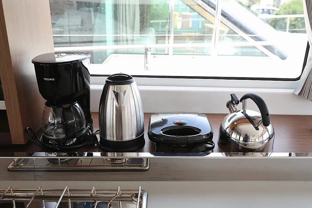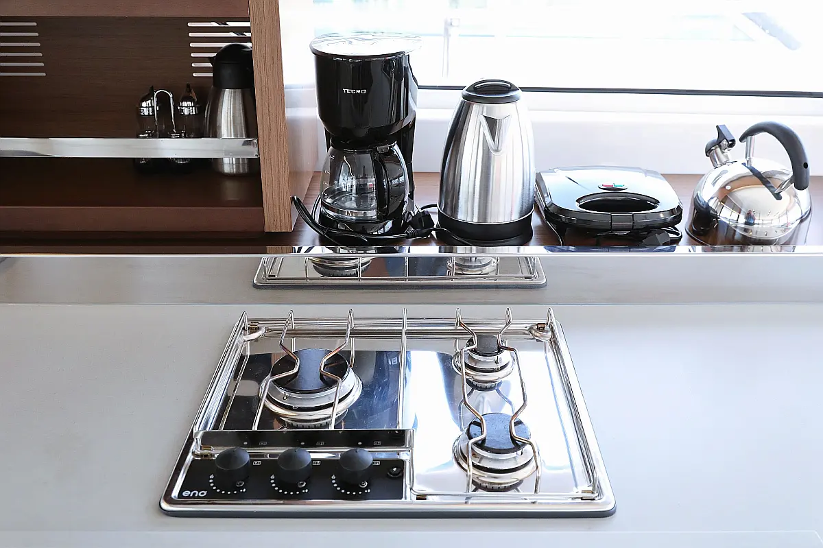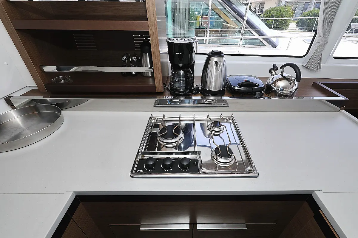 Dishwasher, Refrigerator, Electric toilet, Inverter, Wi-Fi & Internet, Dinghy, Air condition, Teak Cockpit, Generator, Water maker