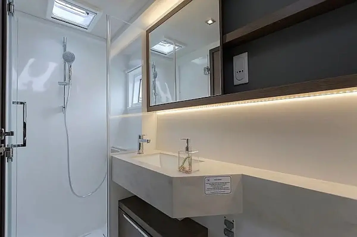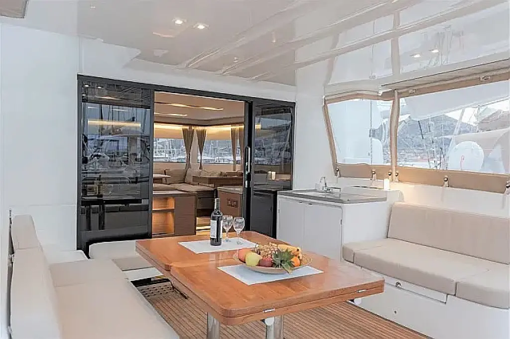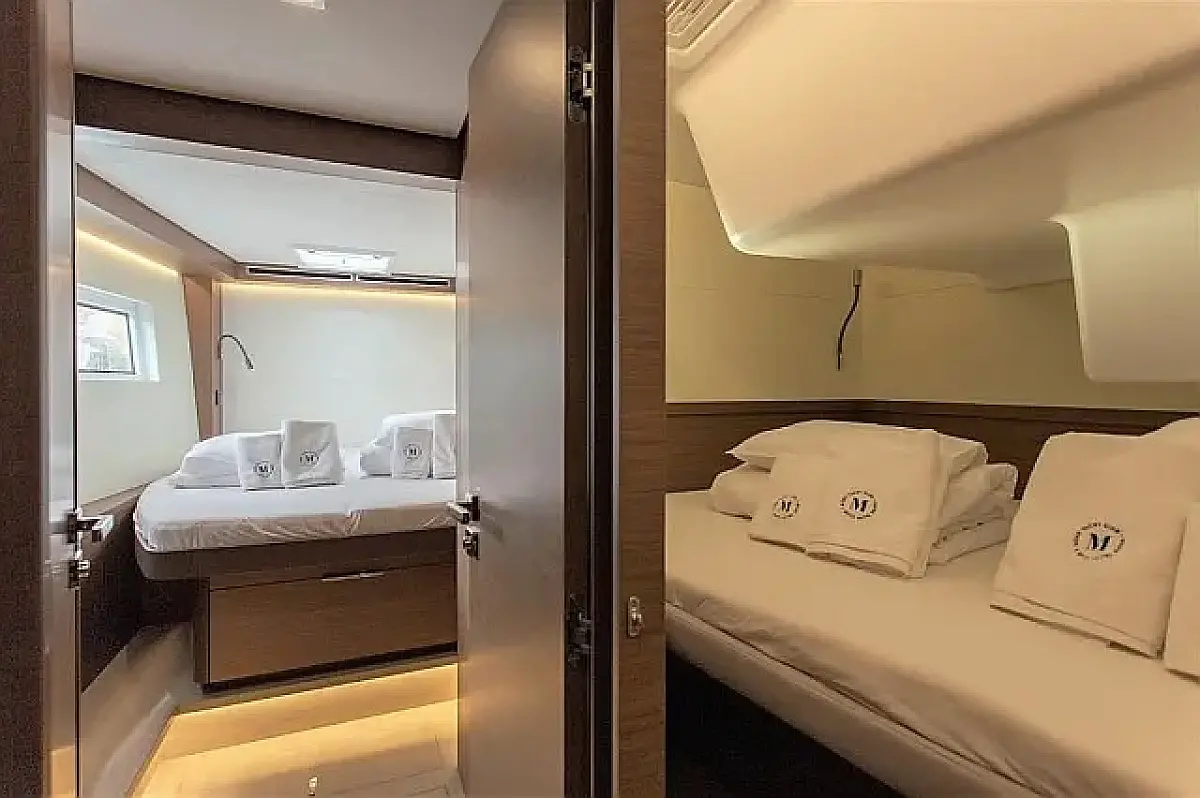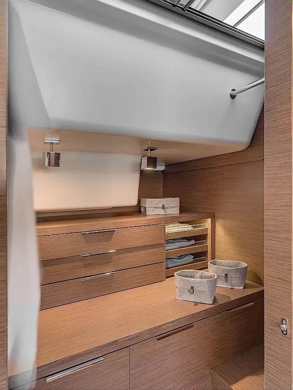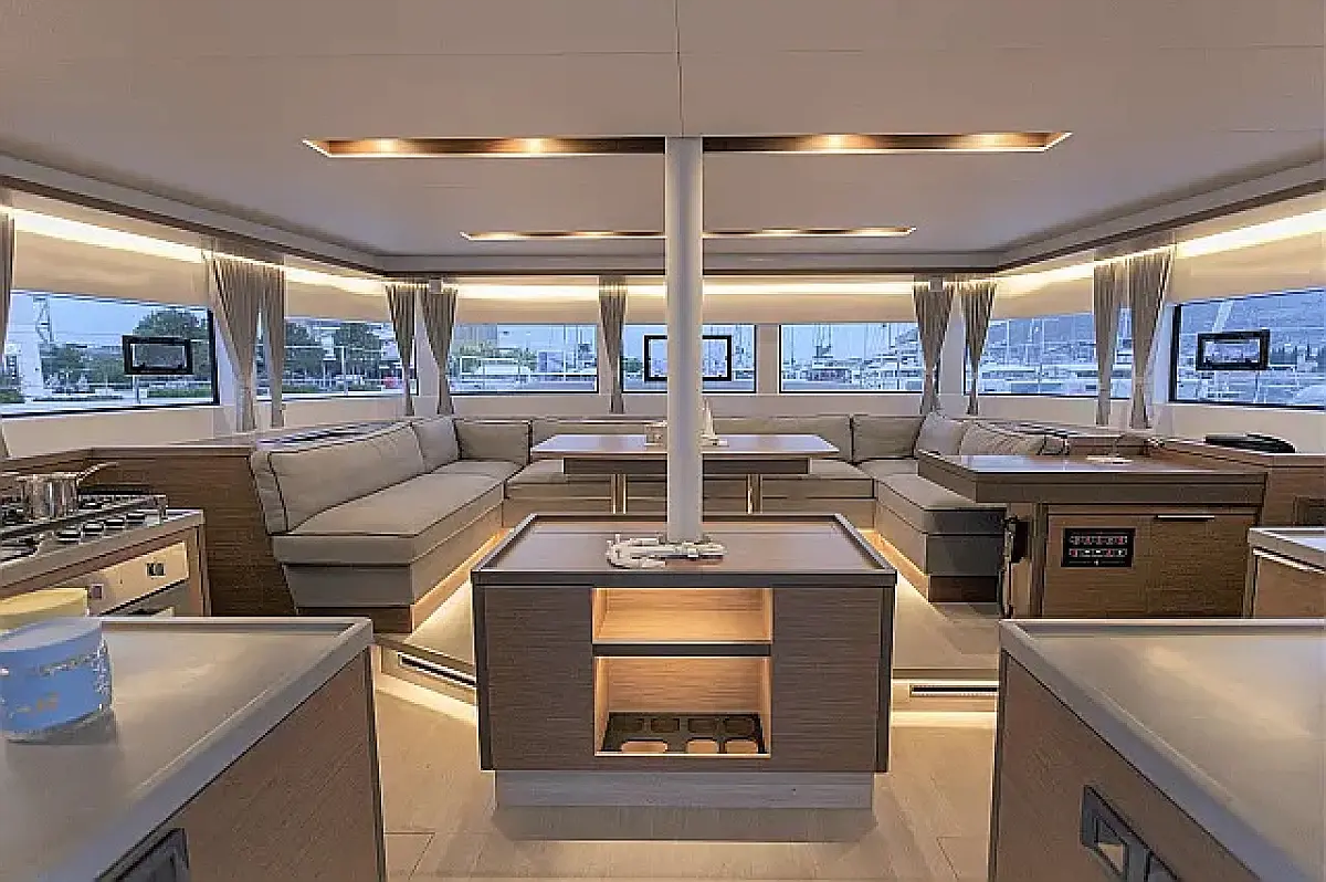 Air condition, Swimming platform, Cockpit cushions, Cockpit speakers, Dinghy, Coffee maker, Dishwasher, Refrigerator, Electric toilet, Generator, Heating, Holding tank, Ice maker, Inverter, Outboard engine, Teak Cockpit, Water maker, Wi-Fi & Internet