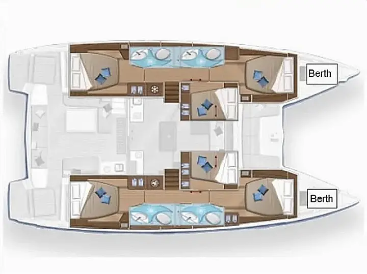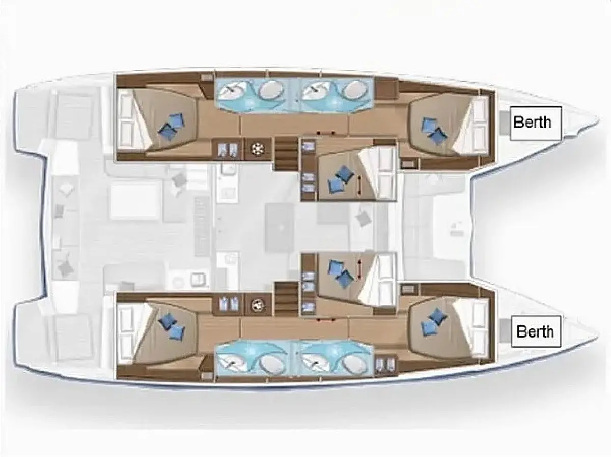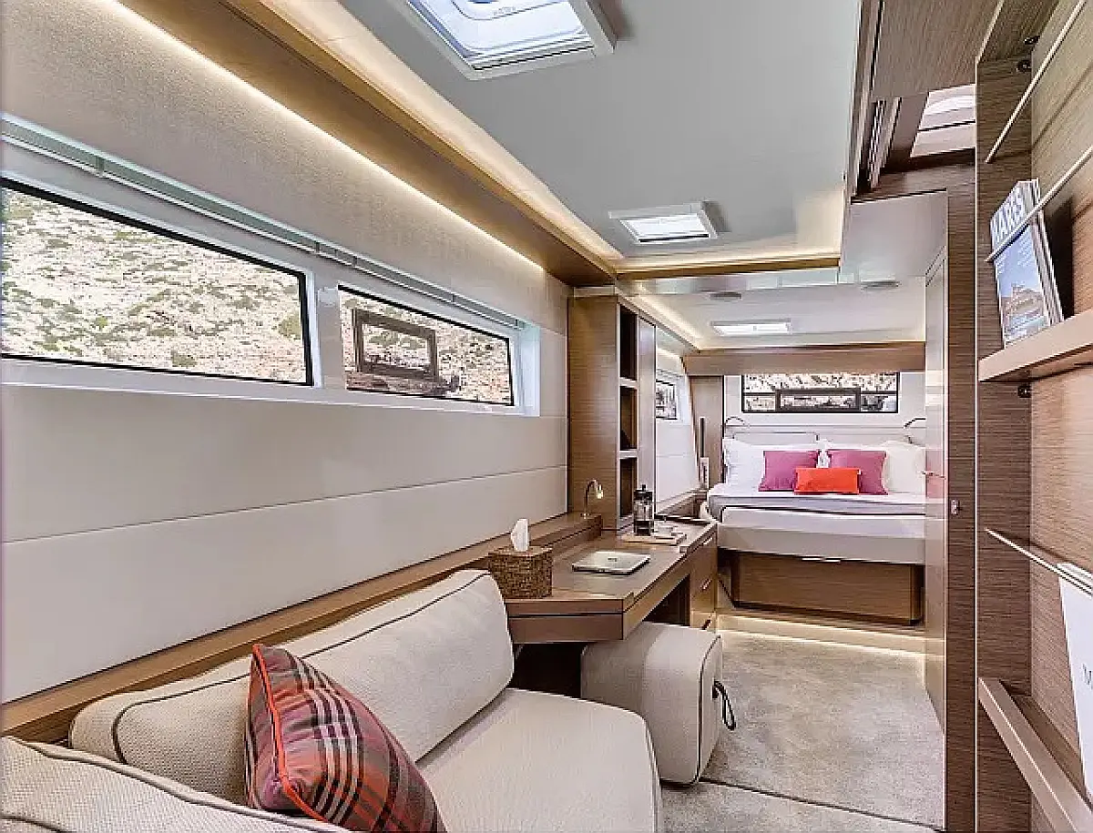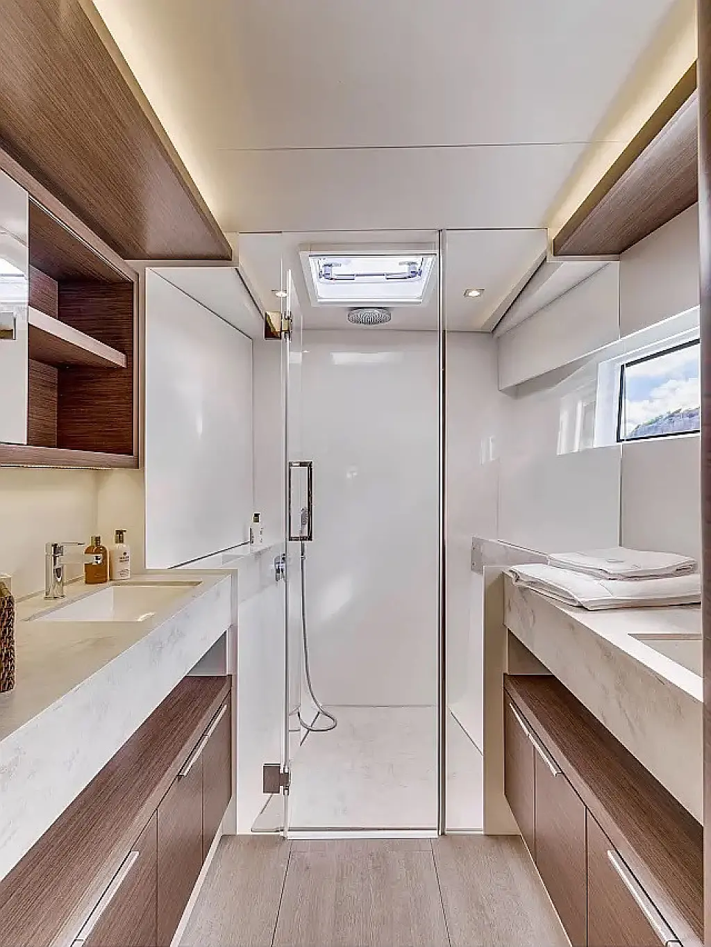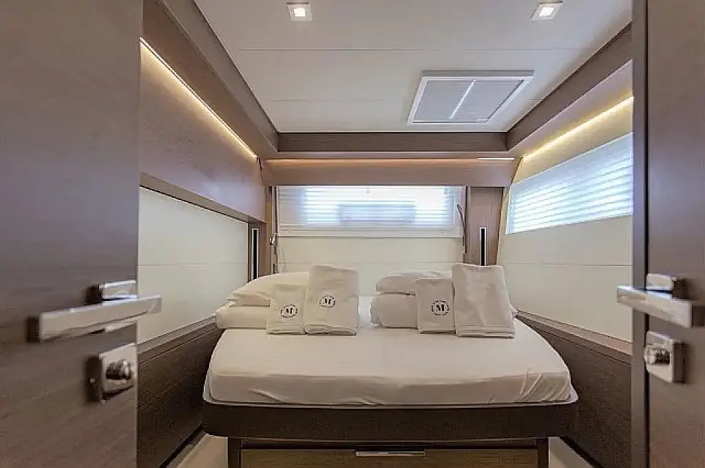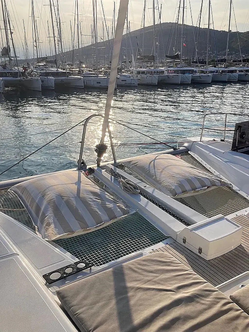 Air condition, Swimming platform, Cockpit cushions, Cockpit speakers, Dinghy, Coffee maker, Dishwasher, Refrigerator, Electric toilet, Generator, Heating, Holding tank, Ice maker, Inverter, Outboard engine, Teak Cockpit, Water maker, Wi-Fi & Internet