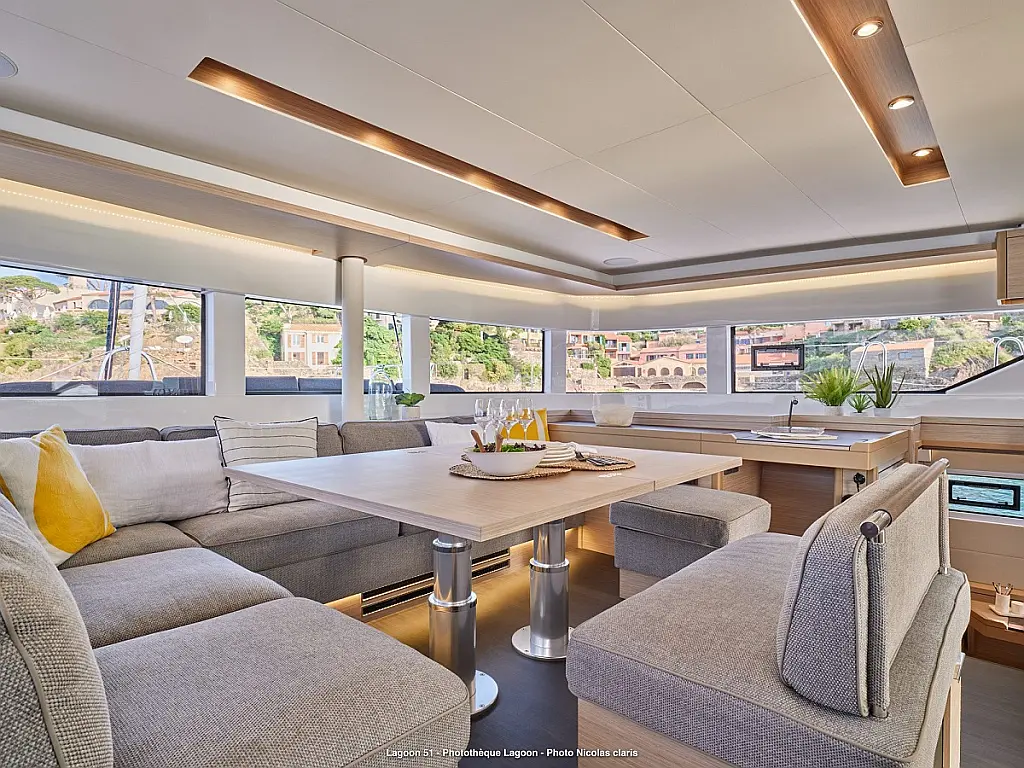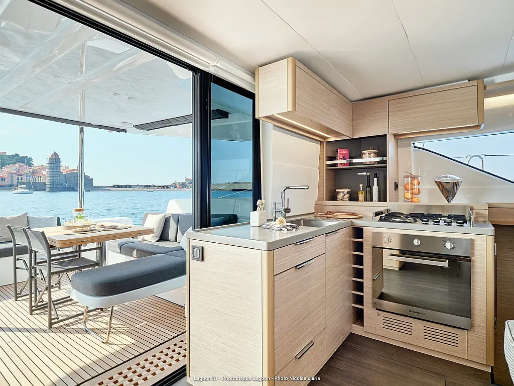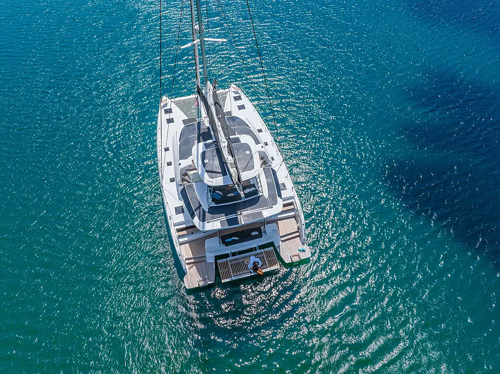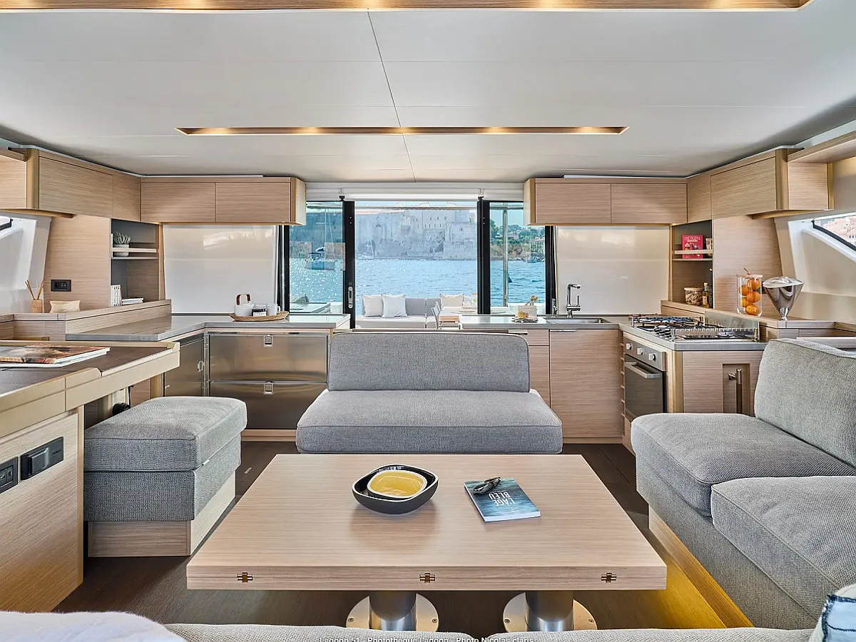 Refrigerator, Coffee maker, Ice maker, Air condition, Electric winches, Inverter, Heating, Generator, Water maker, Bimini, Flybridge, Barbecue grill in cockpit, Outboard engine, Teak deck