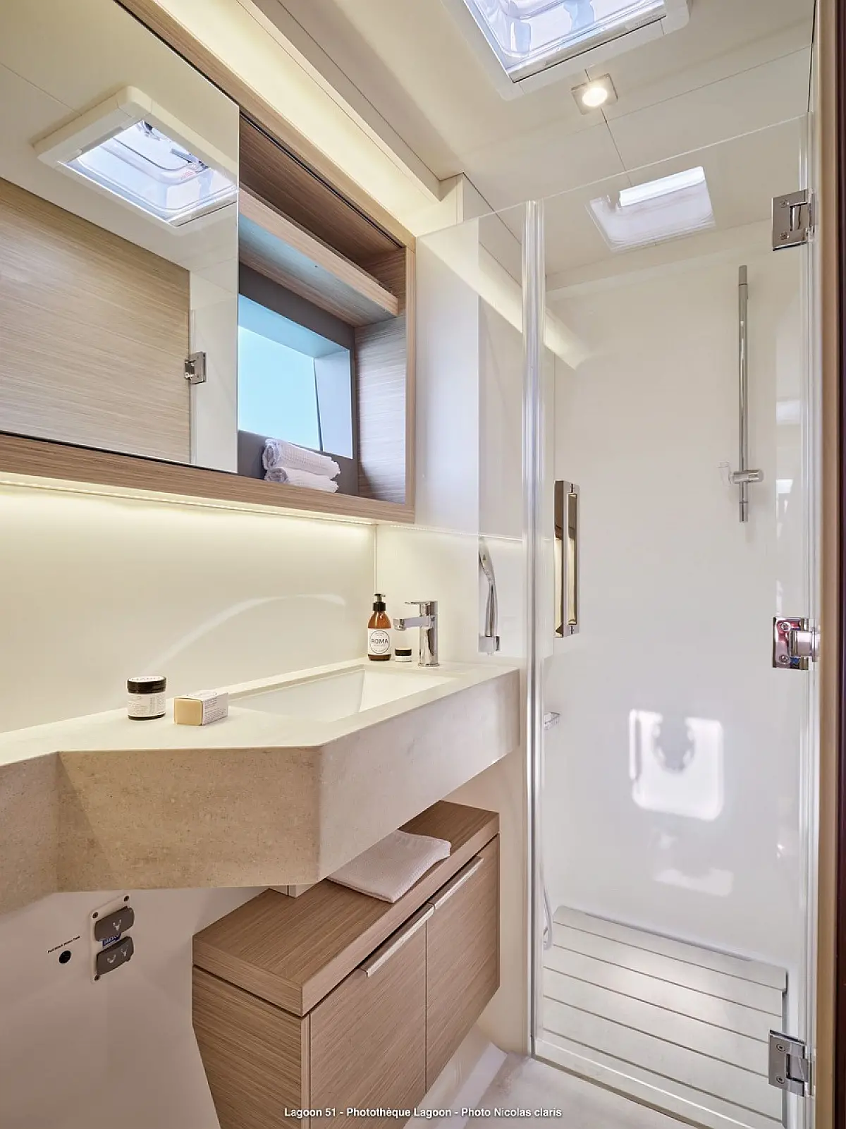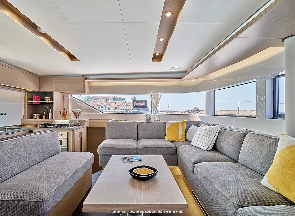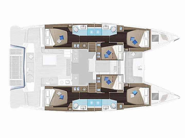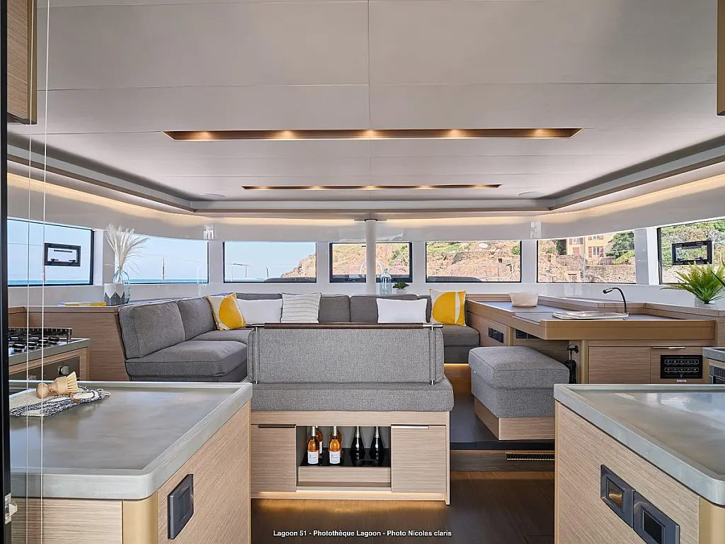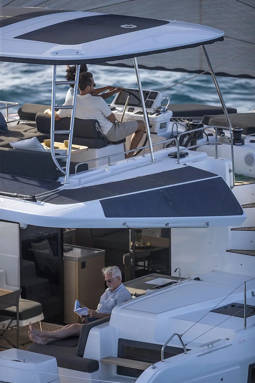 Refrigerator, Coffee maker, Ice maker, Air condition, Electric winches, Inverter, Heating, Generator, Water maker, Bimini, Flybridge, Barbecue grill in cockpit, Outboard engine, Teak deck