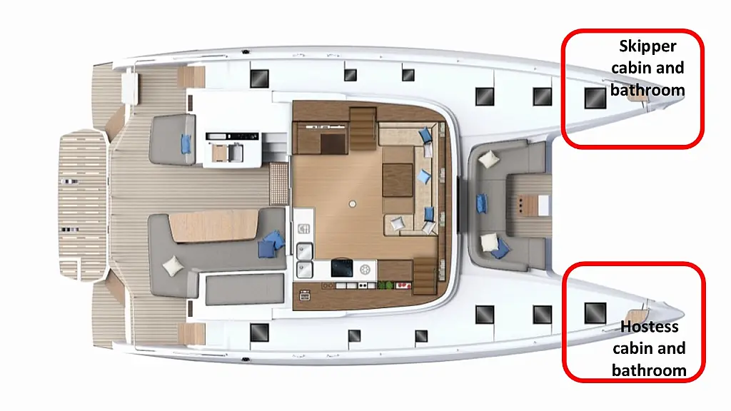 Air condition, Dinghy, Generator, Water maker, Cockpit speakers, Cockpit cushions, Refrigerator, Flybridge, Wi-Fi & Internet, Coffee maker, Inverter, Solar Panels, Electric toilet, Barbecue grill in cockpit, Ice maker, Washer/Dryer