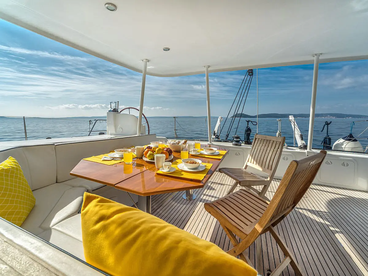 Water maker, Generator, Inverter, Ice maker, Air condition, Coffee maker, Wi-Fi & Internet, Cockpit speakers, Refrigerator, Electric toilet, Teak Cockpit, Holding tank
