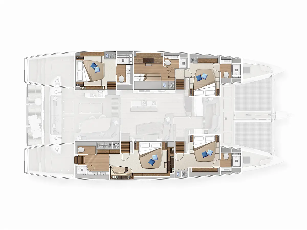 Refrigerator, Hydraulic gangway, Flybridge, Air condition, Cockpit speakers, Dinghy, Inverter, Water maker, Coffee maker, Generator, Electric toilet
