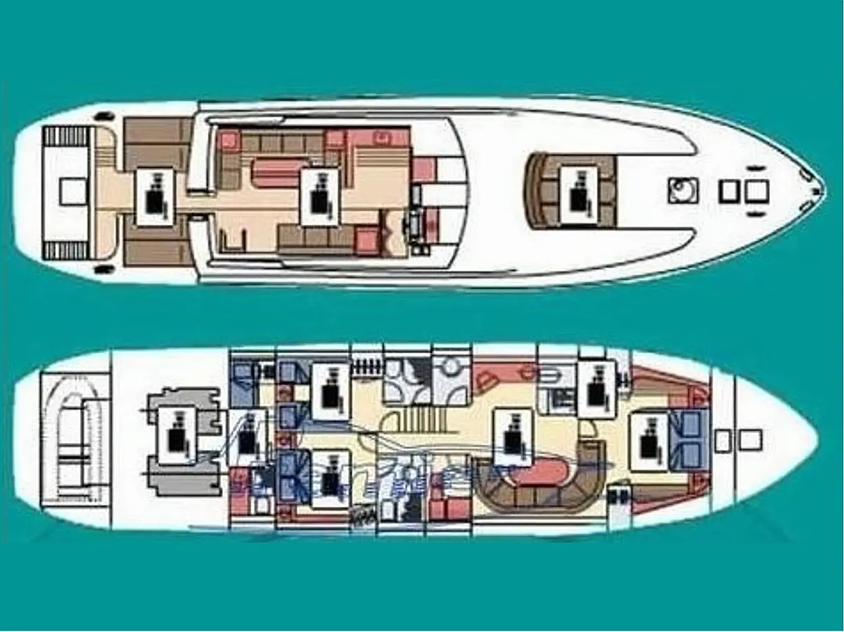 Generator, Refrigerator, Coffee maker, Ice maker, Air condition, Heating, Inverter, Teak deck, Bimini