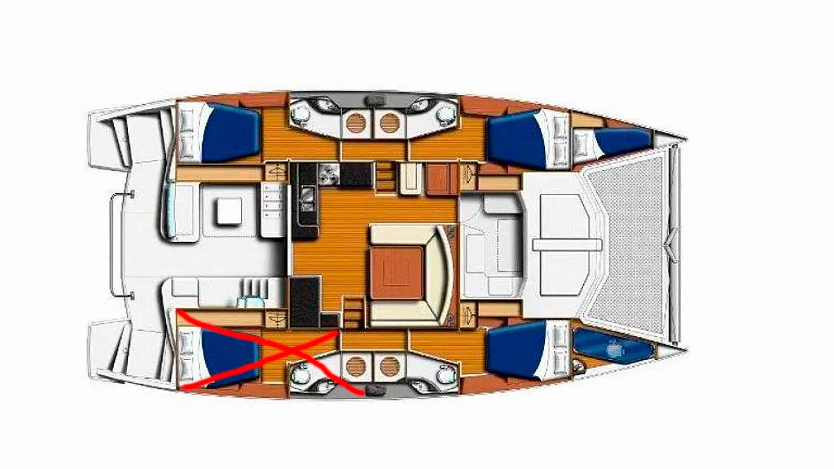 3 (3 guest cabins + saloon + 3 crew cabins)