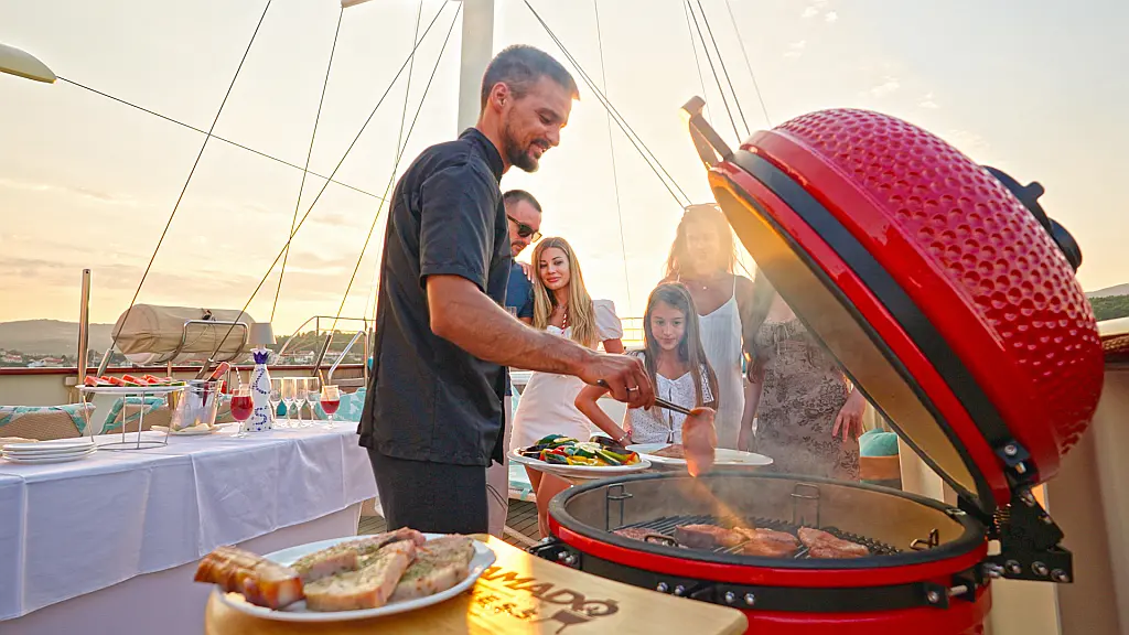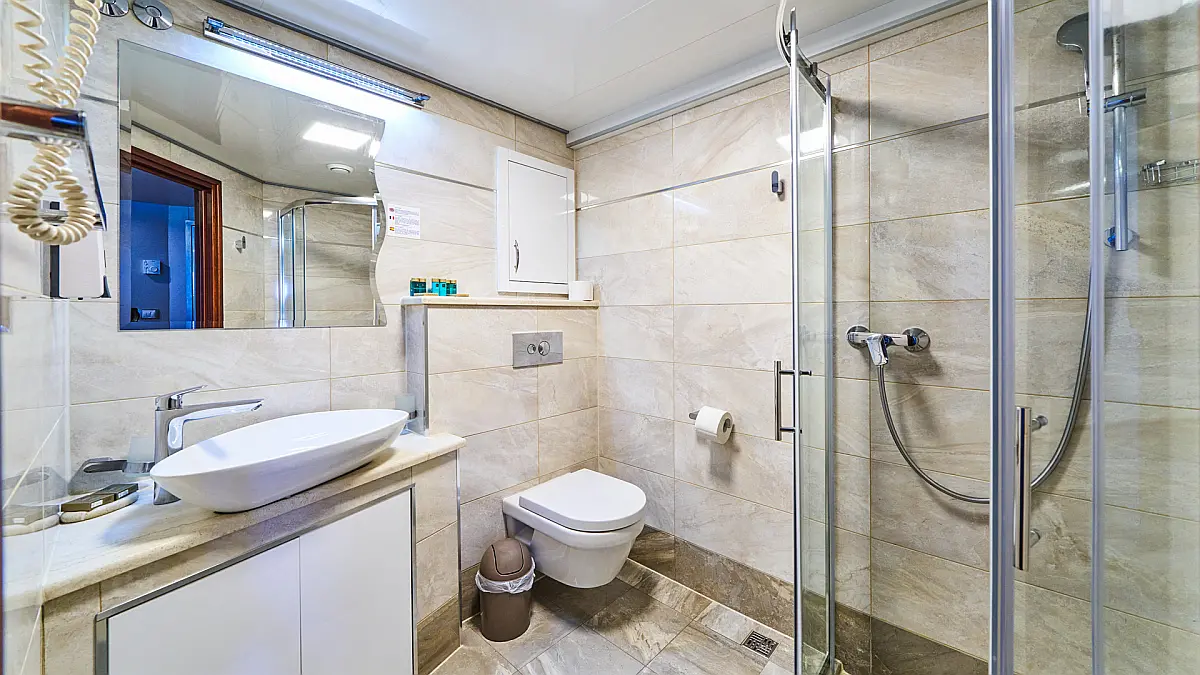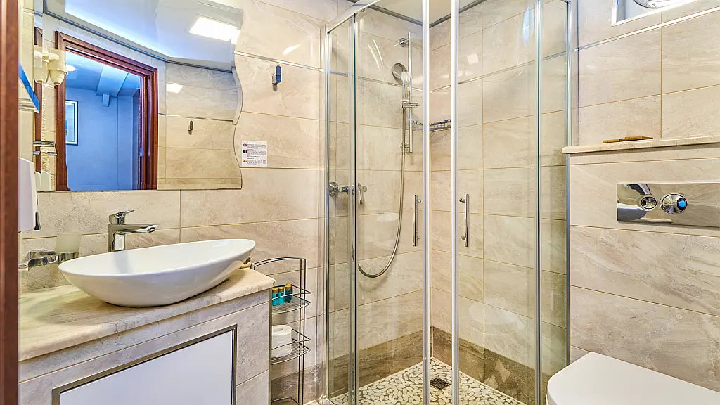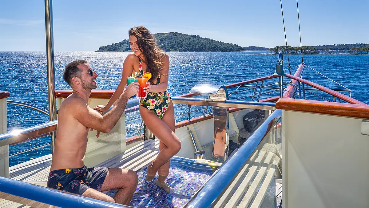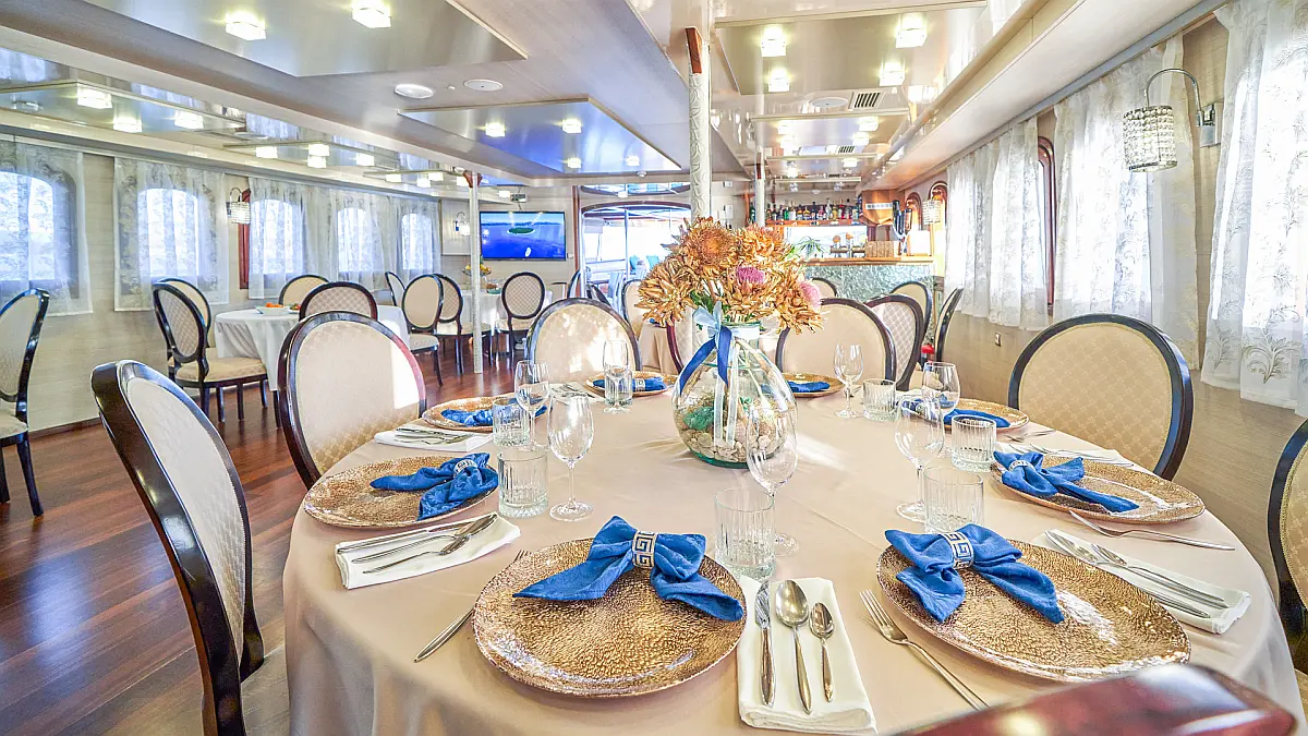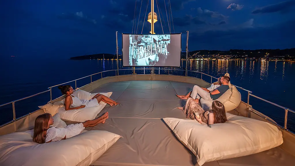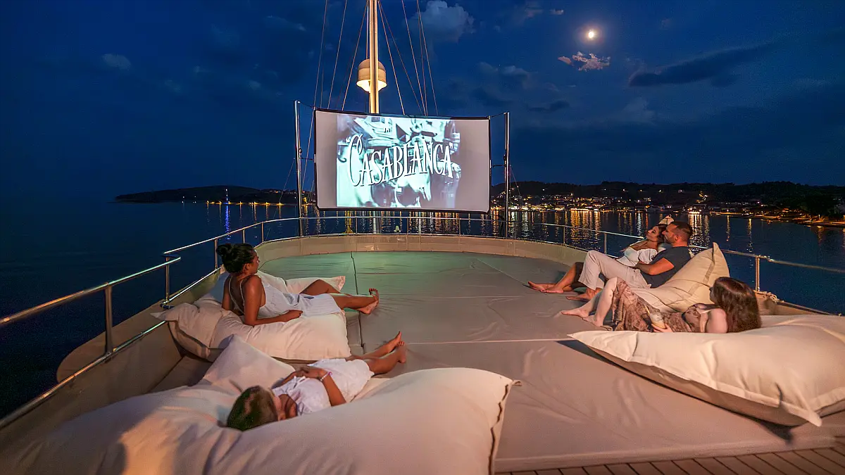 175 ft | Length 18 (7 Double Cabins, 5 Twin Cabins, 6 Convertible Cabins) + crew Cabins 36 Berths 18 Heads Technical Specifications Draught: 13 ft | Engine: N/A Water capacity: N/A Main sail: None Displacement: N/A Fuel capacity: N/A Beam: 29 ft | Genoa: None Equipment Comfort: Dinghy, Air condition, Wi-Fi & Internet Entertainment: Stand up paddle, TV Documents Download Brochure Download Brochure Download Brochure