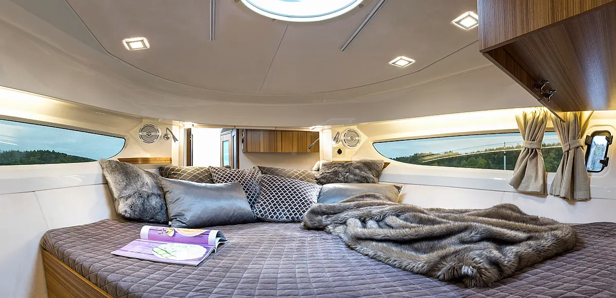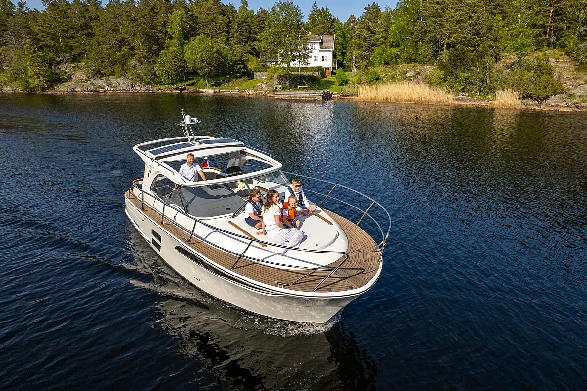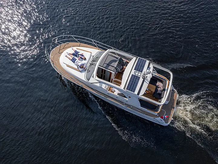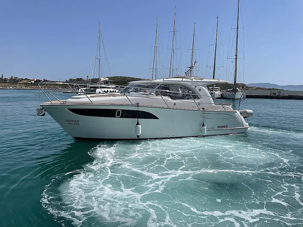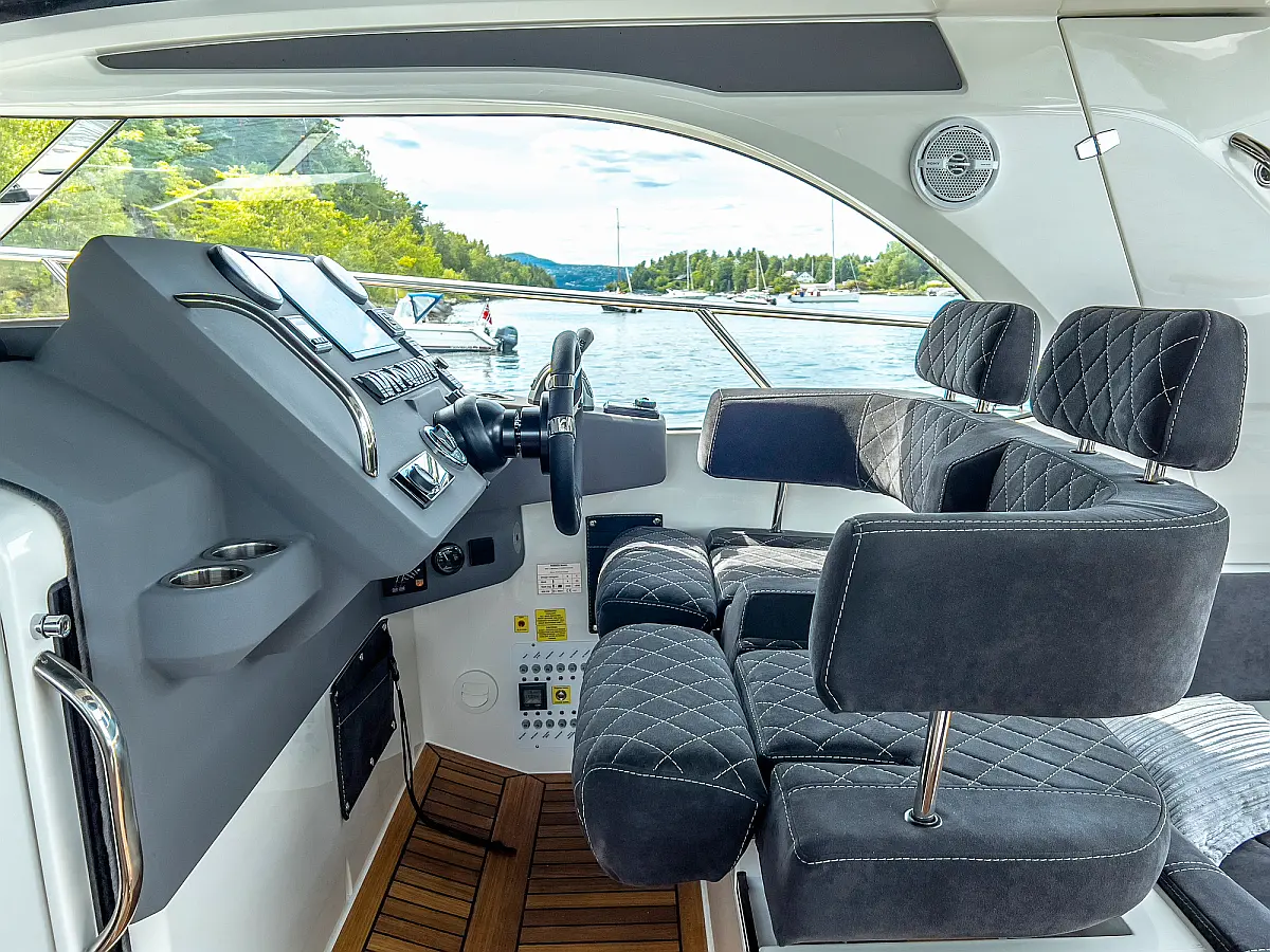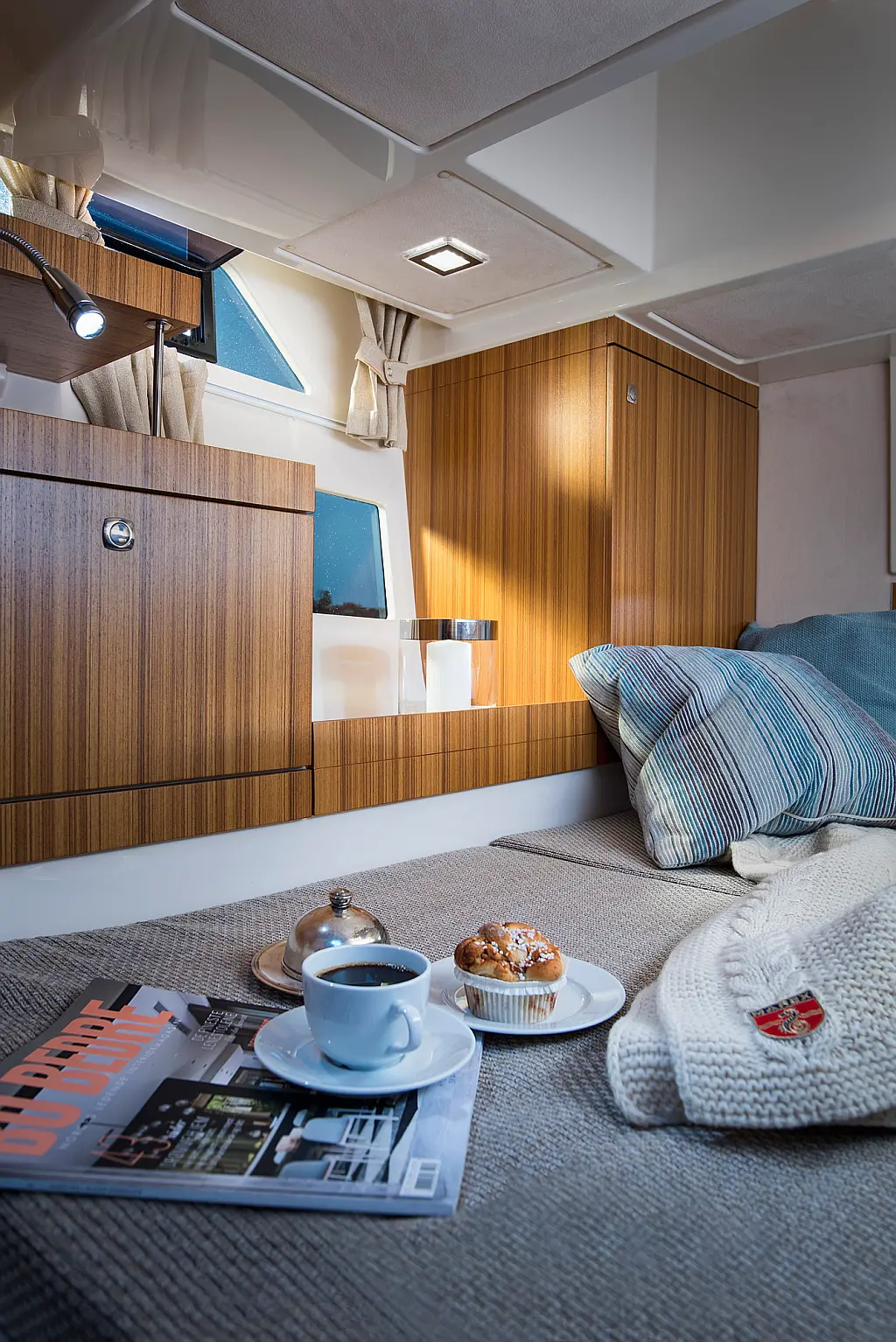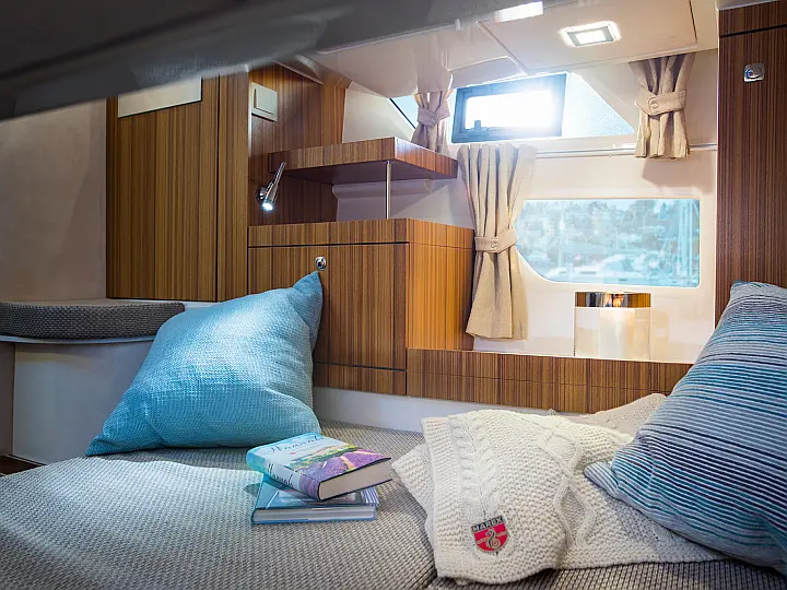 31 ft | Length 2 Cabins 4 Berths 2 Heads Technical Specifications Draught: 3 ft | Engine: 2x162 HP Volvo Penta Water capacity: 280.00 l Main sail: None Displacement: 4500.00 kg Fuel capacity: 440.00 l Beam: 11 ft | Genoa: None Equipment Comfort: Refrigerator, Bimini, Electric toilet, Solar Panels Documents Download Brochure Download Brochure Download Brochure Download Brochure