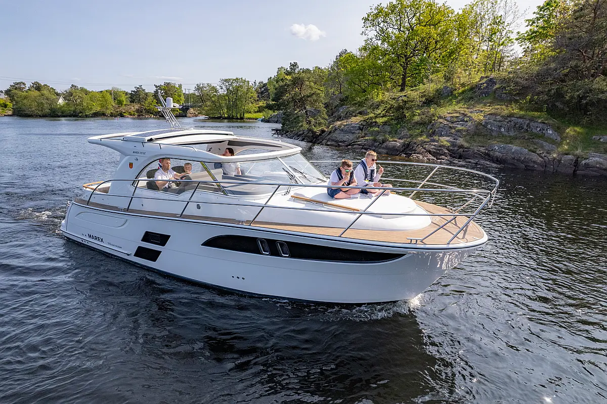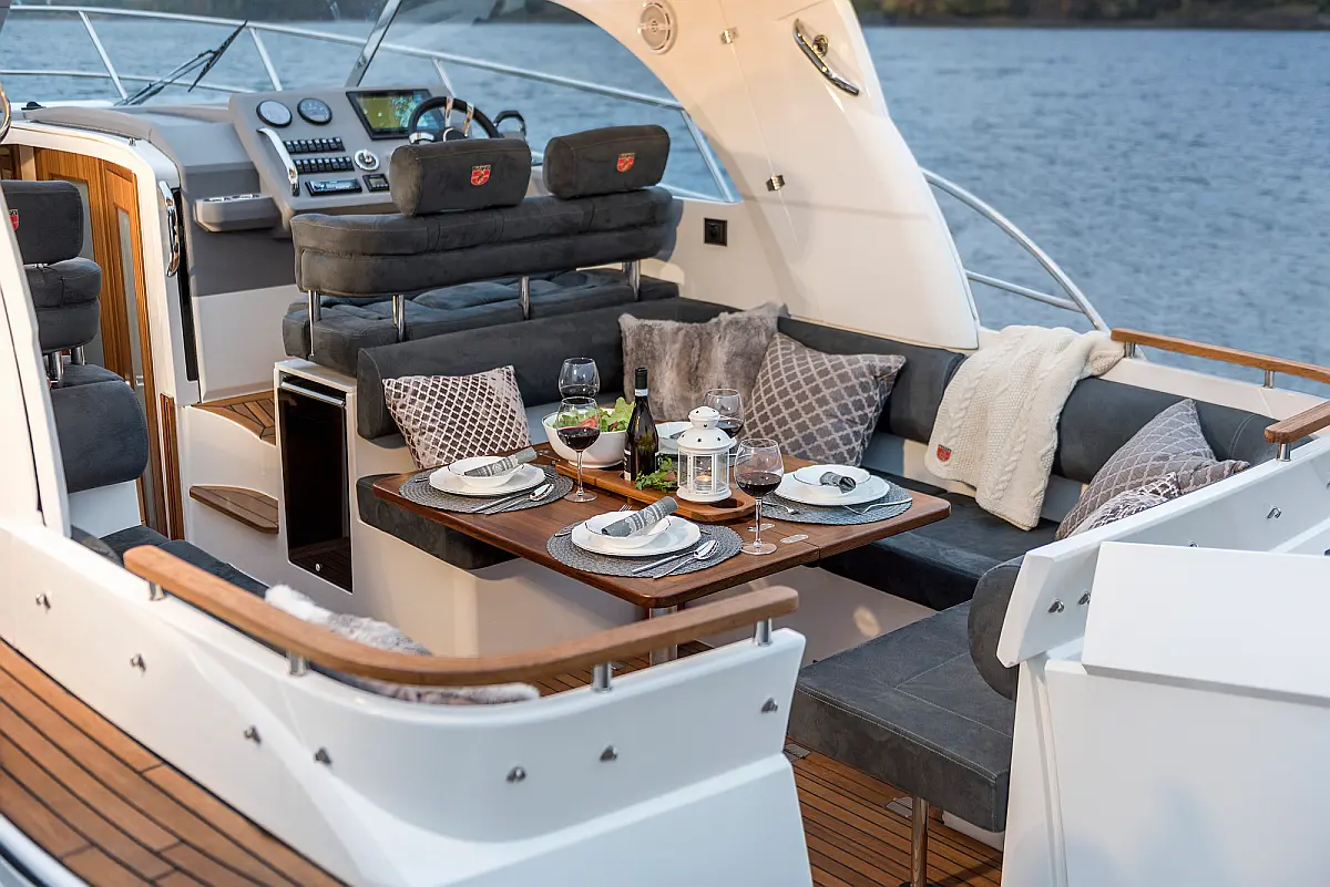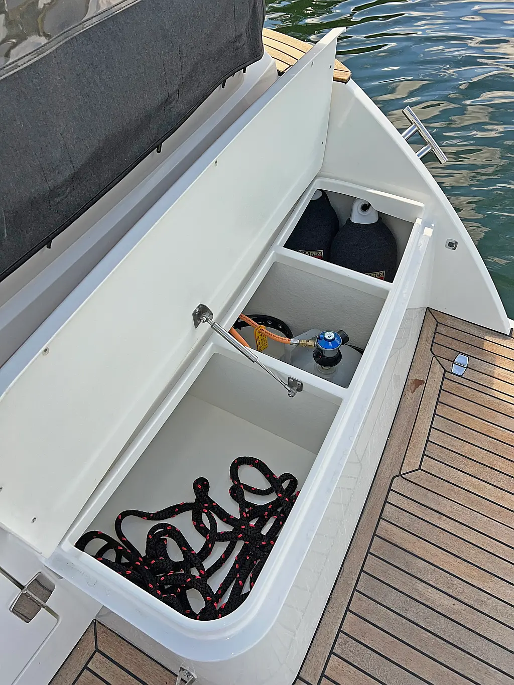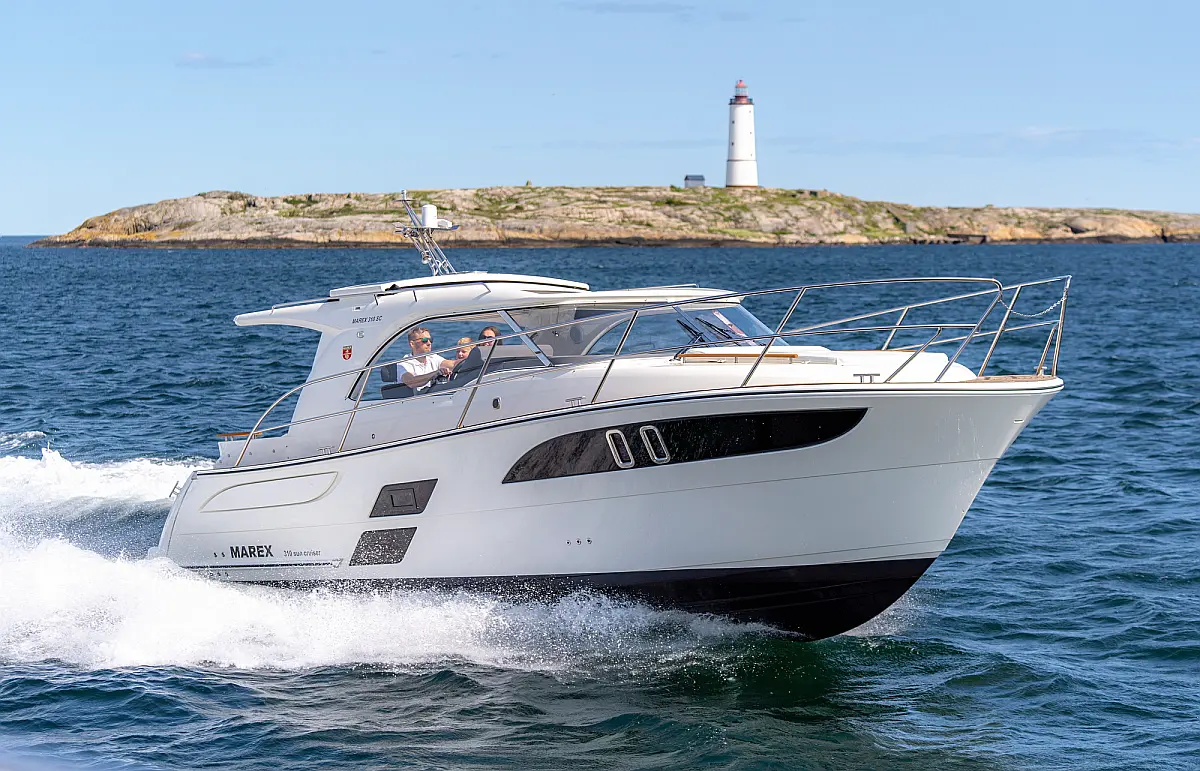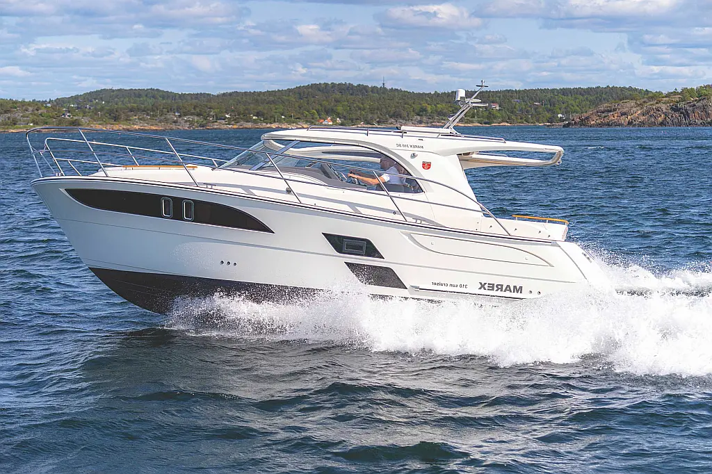 31 ft | Length 2 Cabins 4 Berths 2 Heads Technical Specifications Draught: 3 ft | Engine: 2x162 HP Volvo Penta Water capacity: 280.00 l Main sail: None Displacement: 4500.00 kg Fuel capacity: 440.00 l Beam: 11 ft | Genoa: None Equipment Comfort: Refrigerator, Bimini, Electric toilet, Solar Panels Documents Download Brochure Download Brochure Download Brochure Download Brochure