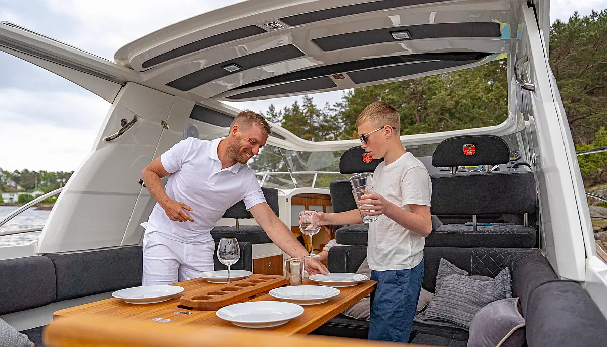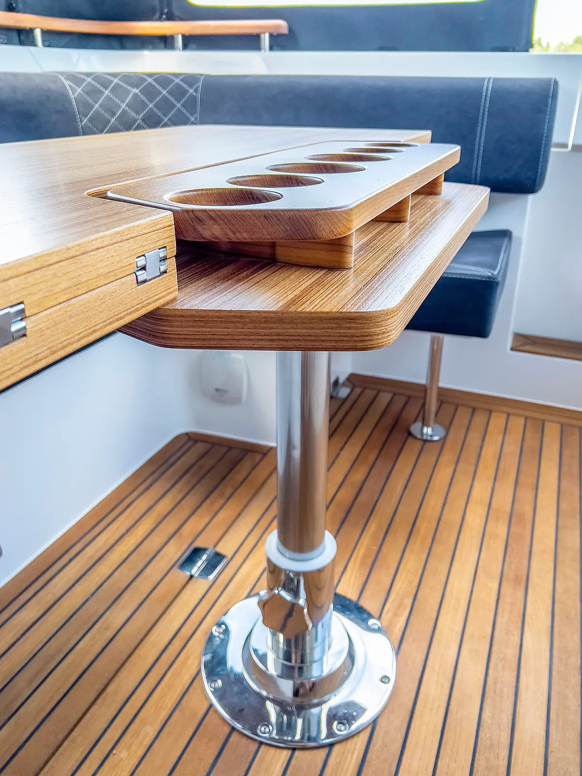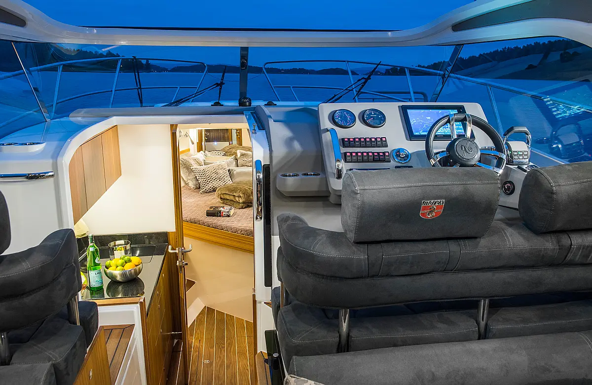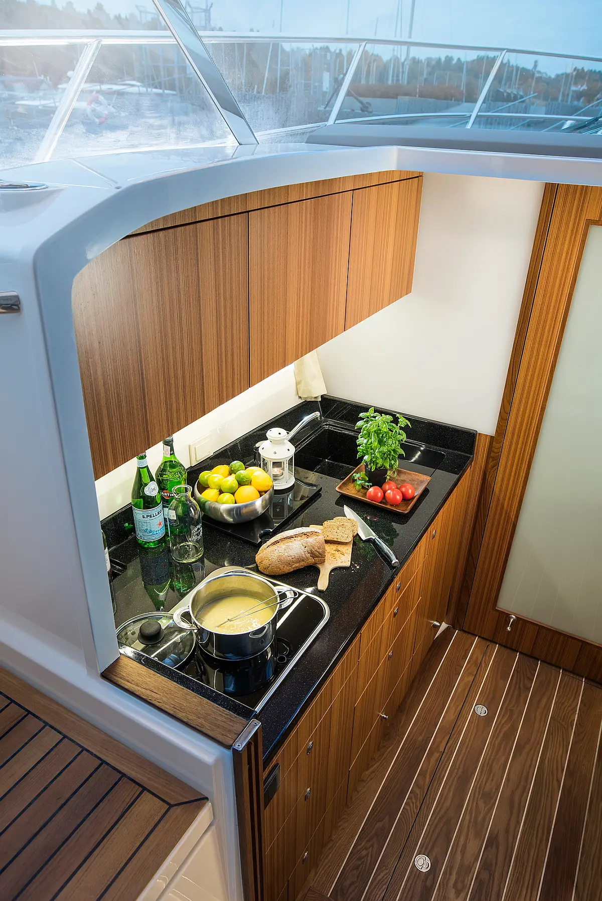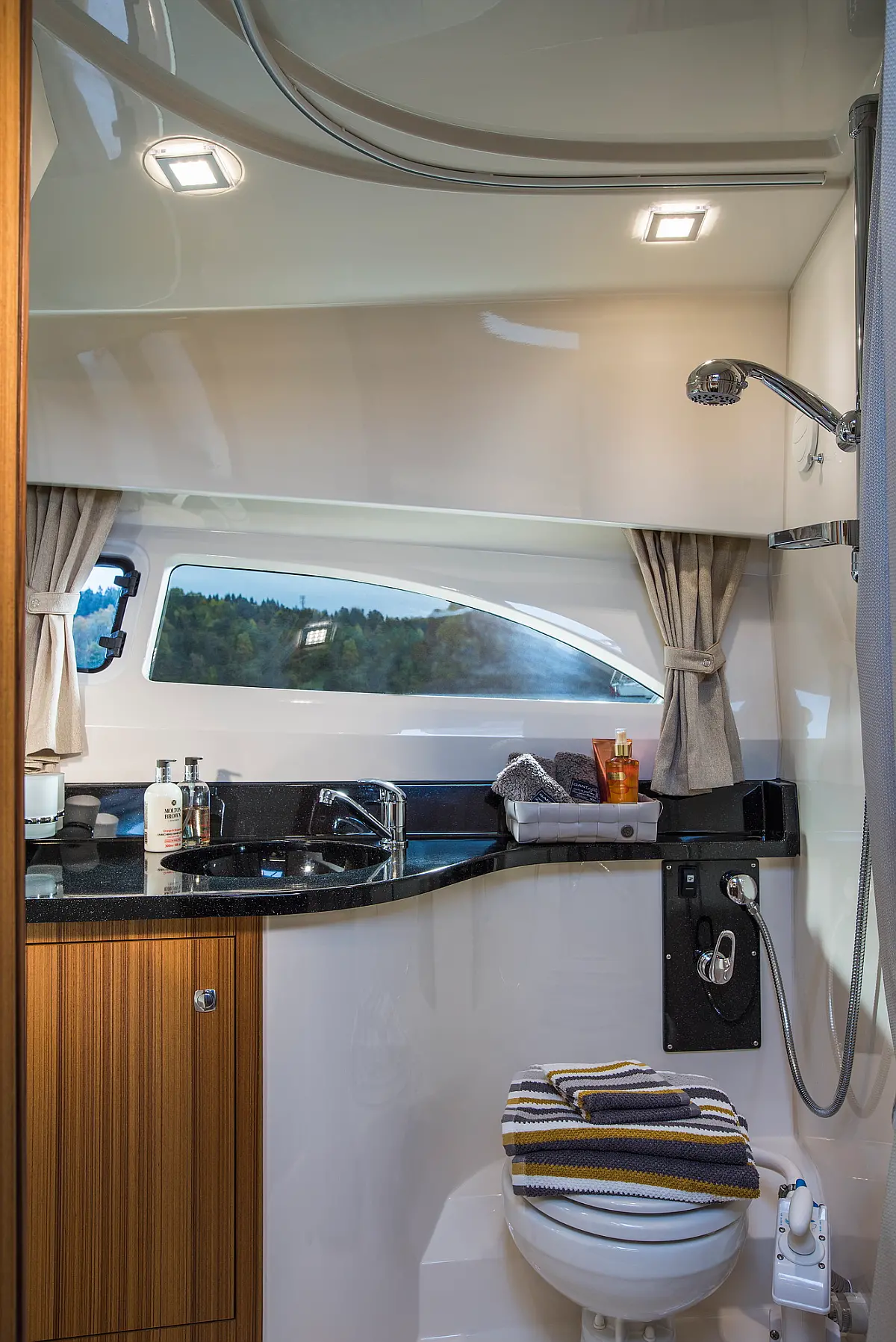 31 ft | Length 2 Cabins 4 Berths 2 Heads Technical Specifications Draught: 3 ft | Engine: 2x162 HP Volvo Penta Water capacity: 280.00 l Main sail: None Displacement: 4500.00 kg Fuel capacity: 440.00 l Beam: 11 ft | Genoa: None Equipment Comfort: Refrigerator, Bimini, Electric toilet, Solar Panels Documents Download Brochure Download Brochure Download Brochure Download Brochure