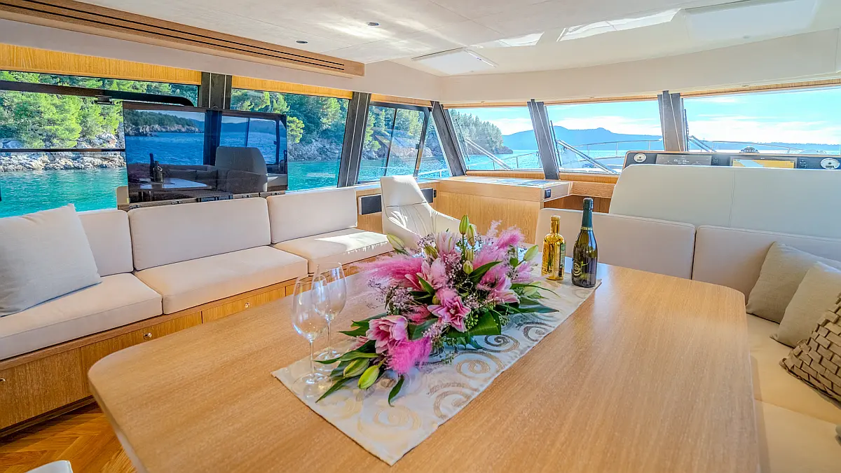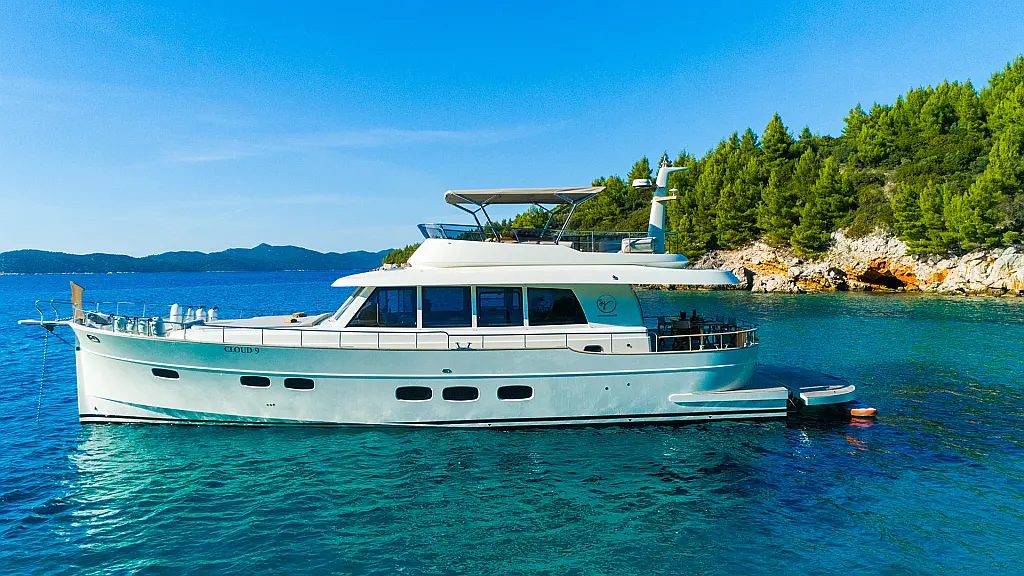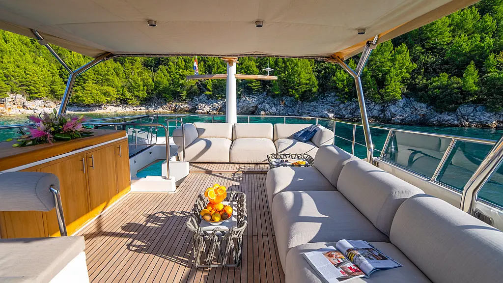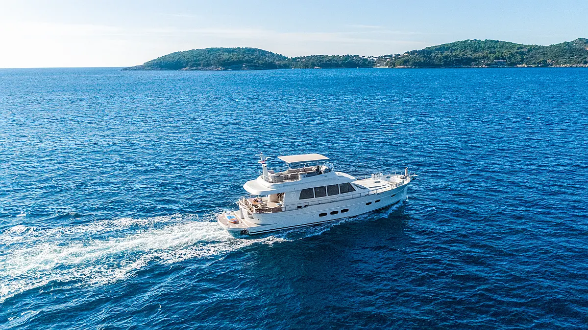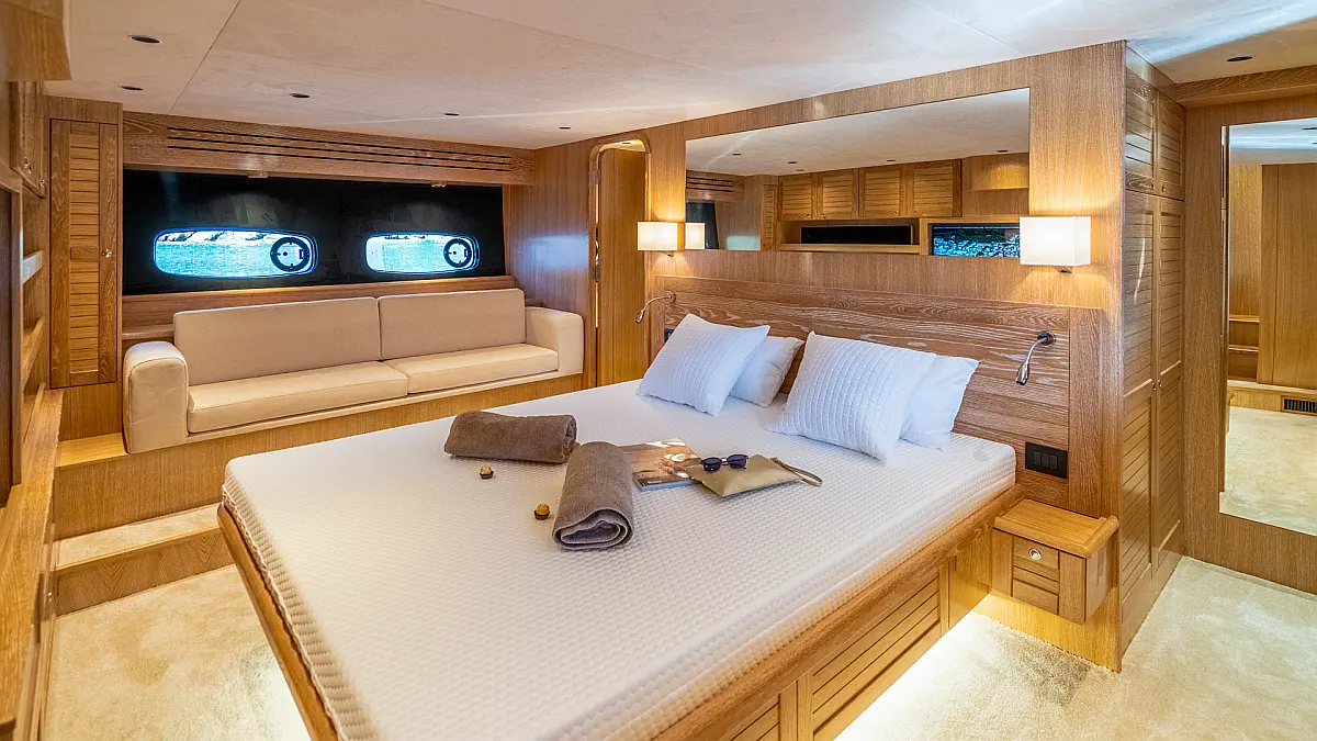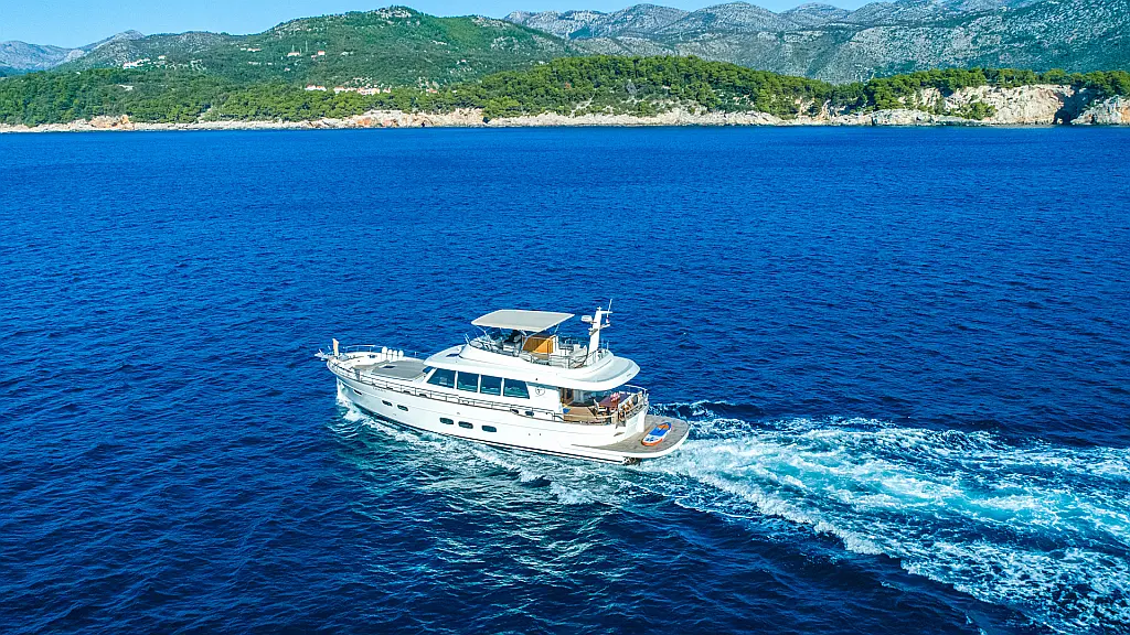 70 ft | Length 3 Cabins 6 Berths 3 Heads Technical Specifications Draught: 5 ft | Engine: N/A Water capacity: N/A Main sail: None Displacement: N/A Fuel capacity: N/A Beam: 19 ft | Genoa: None Equipment Entertainment: Stand up paddle, TV Comfort: Dinghy, Flybridge Documents Download Brochure Download Brochure