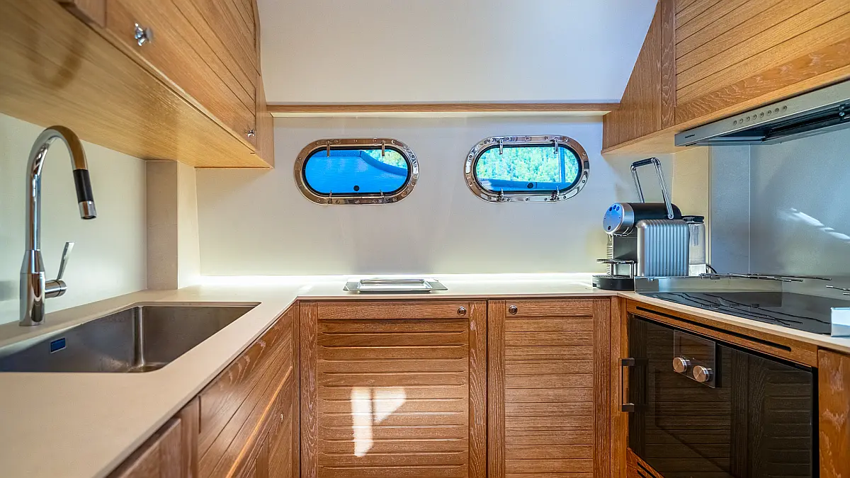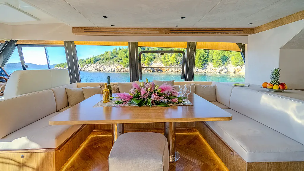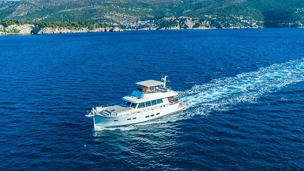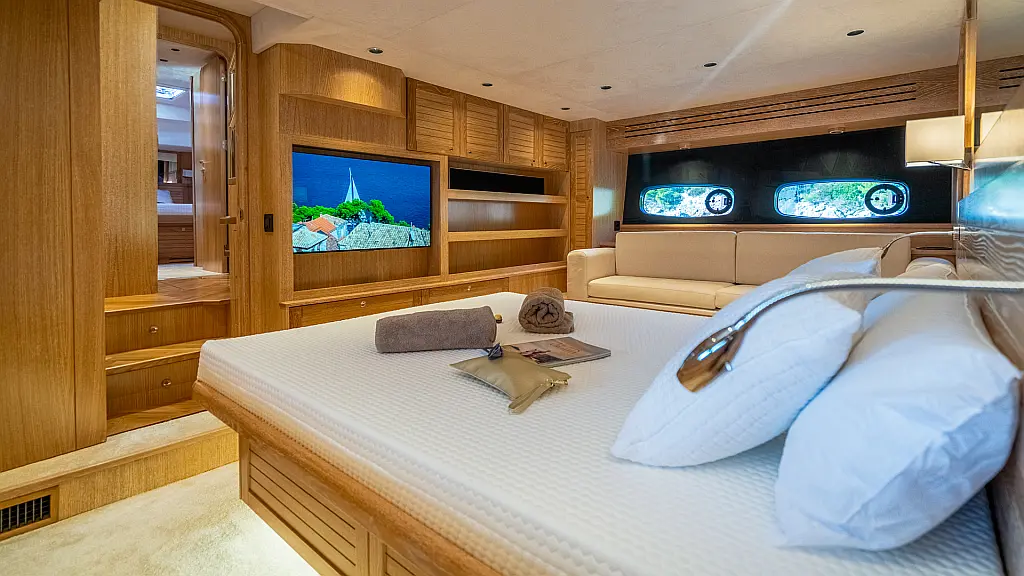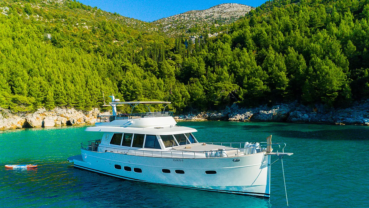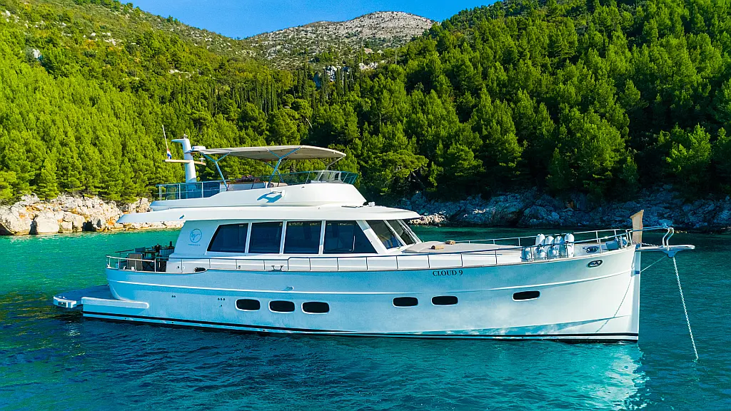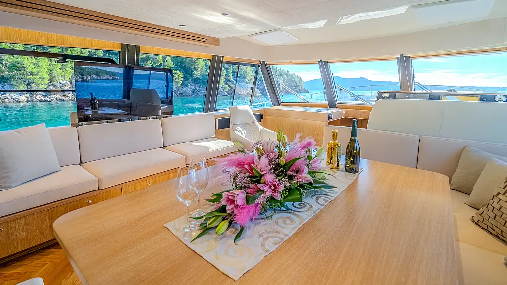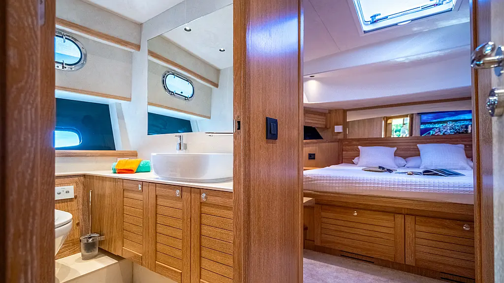 70 ft | Length 3 Cabins 6 Berths 3 Heads Technical Specifications Draught: 5 ft | Engine: N/A Water capacity: N/A Main sail: None Displacement: N/A Fuel capacity: N/A Beam: 19 ft | Genoa: None Equipment Entertainment: Stand up paddle, TV Comfort: Dinghy, Flybridge Documents Download Brochure Download Brochure
