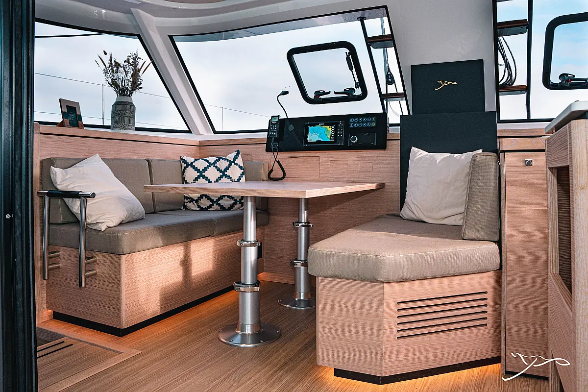 Cockpit cushions, Generator, Electric winches, Electric toilet, Refrigerator
