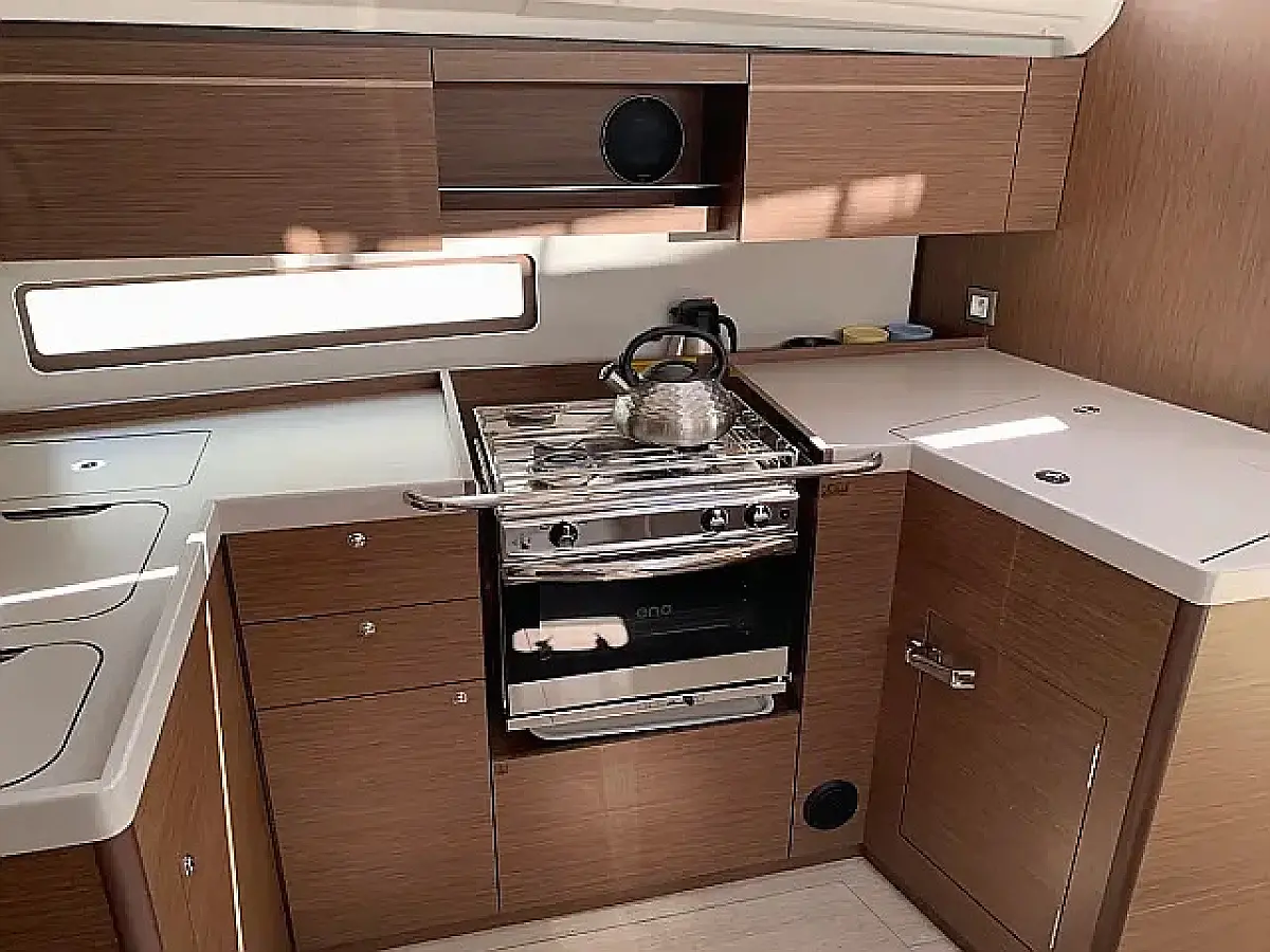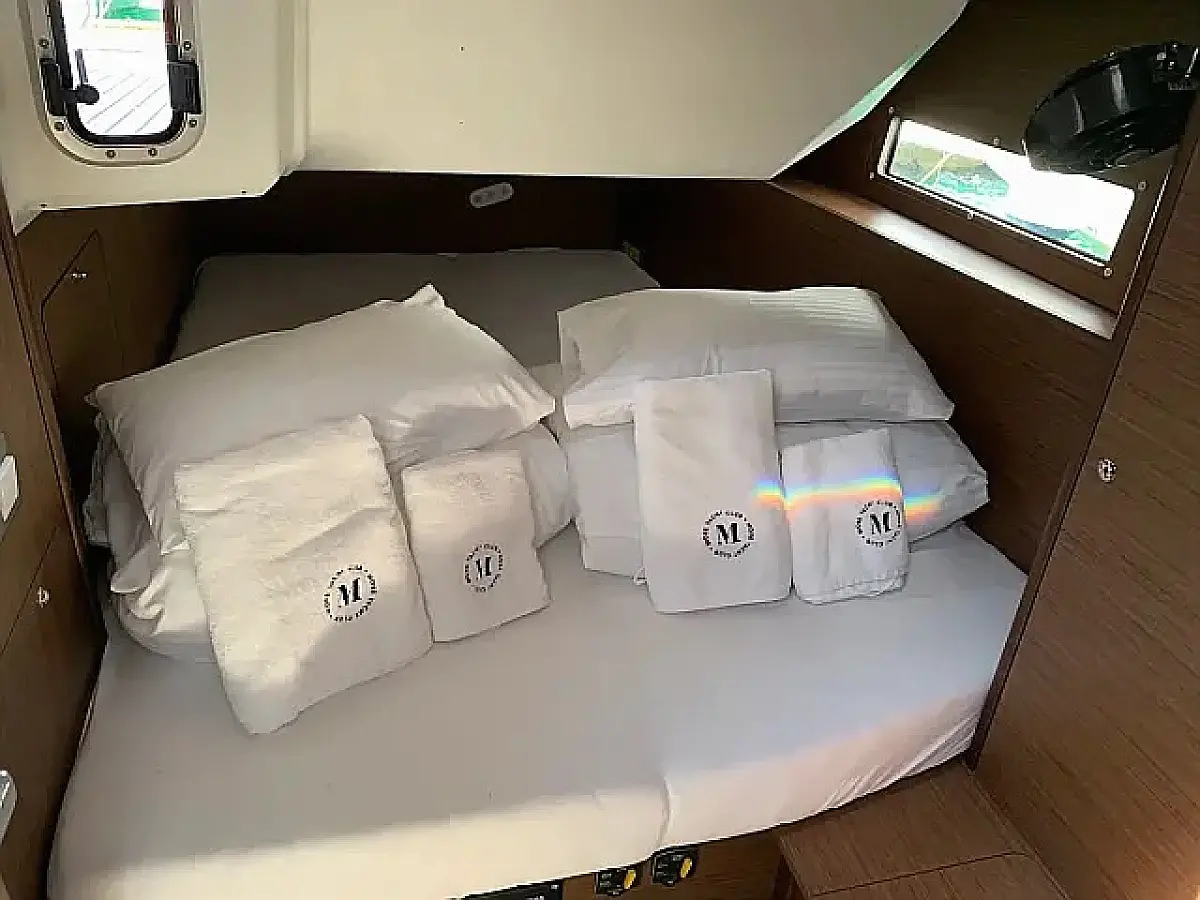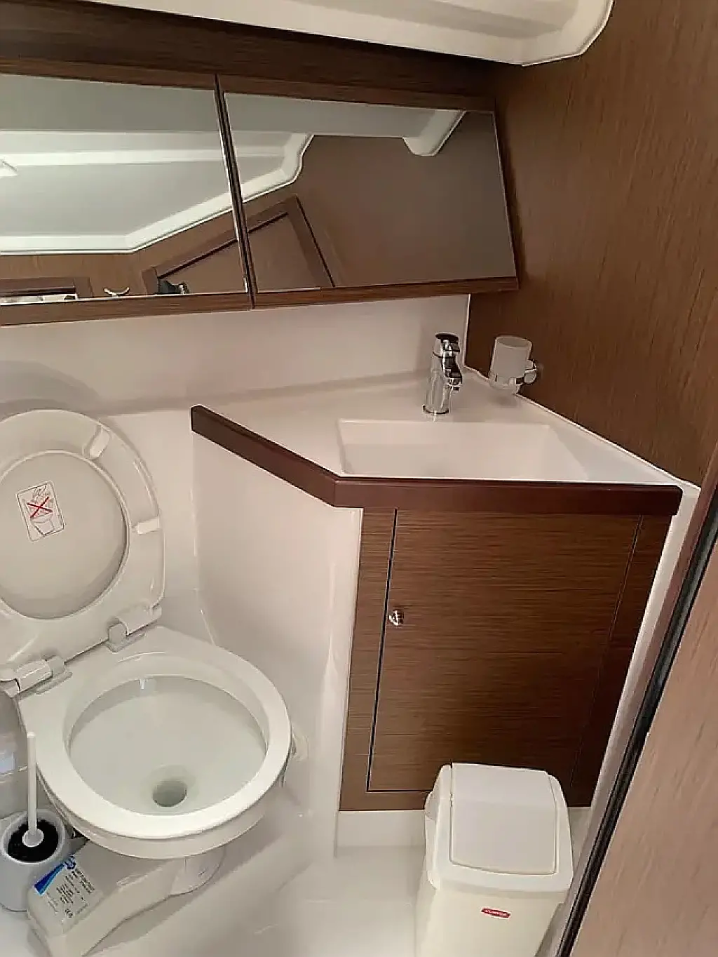 Swimming platform, Bimini, Cockpit cushions, Cockpit speakers, Dinghy, Refrigerator, Electric toilet, Heating, Holding tank, Inverter, Sprayhood, Teak Cockpit, Wi-Fi & Internet