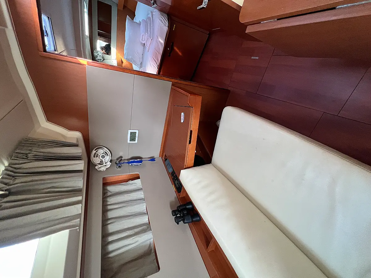 Solar Panels, Bimini, Cockpit cushions, Sprayhood, Cockpit speakers, Dinghy, Outboard engine, Coffee maker, Refrigerator