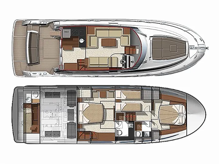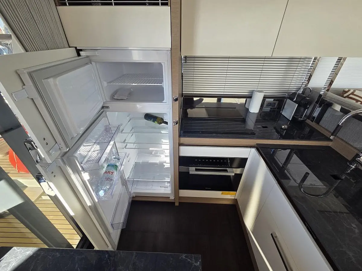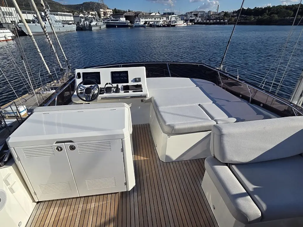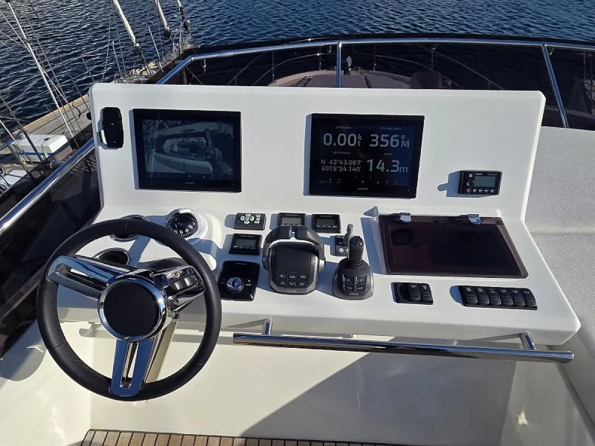 Generator, Heating, Air condition, Cockpit cushions, Outboard engine, Hydraulic gangway, Flybridge, Wi-Fi & Internet