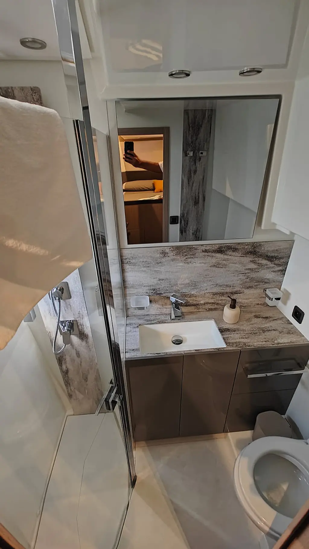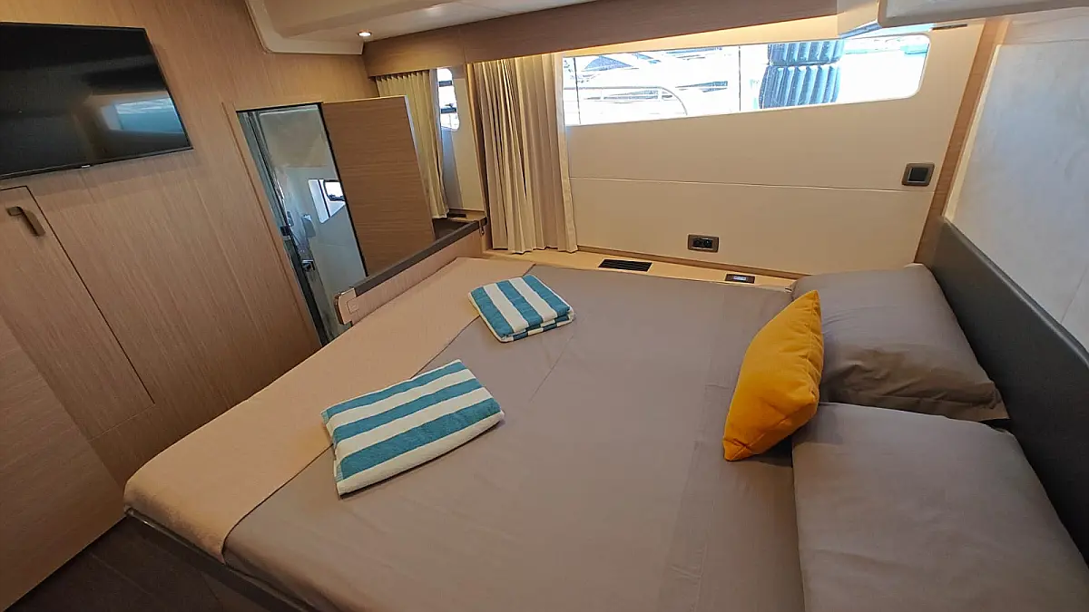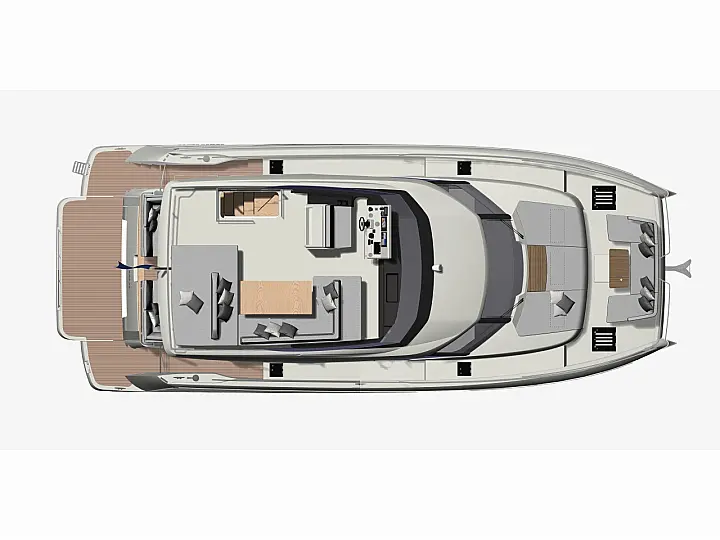 Teak Cockpit, Refrigerator, Cockpit speakers, Barbecue grill in cockpit, Air condition, Heating, Swimming platform, Generator, Dinghy