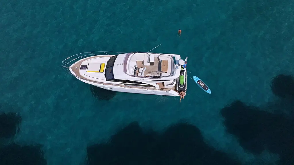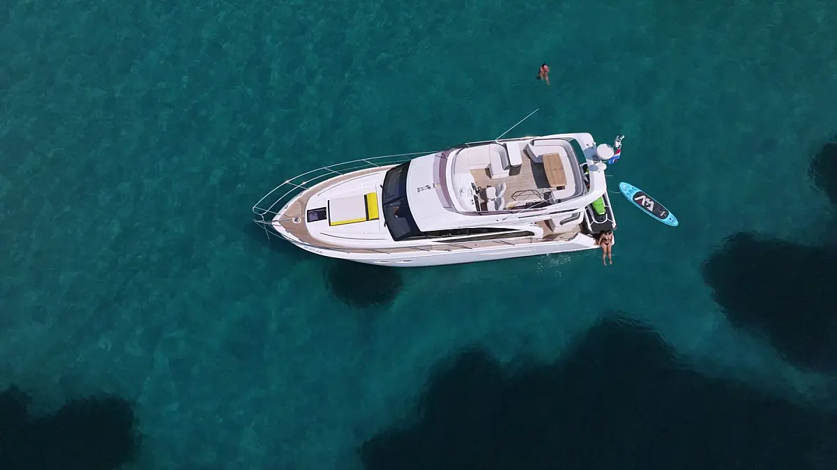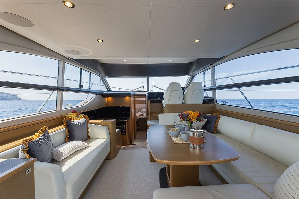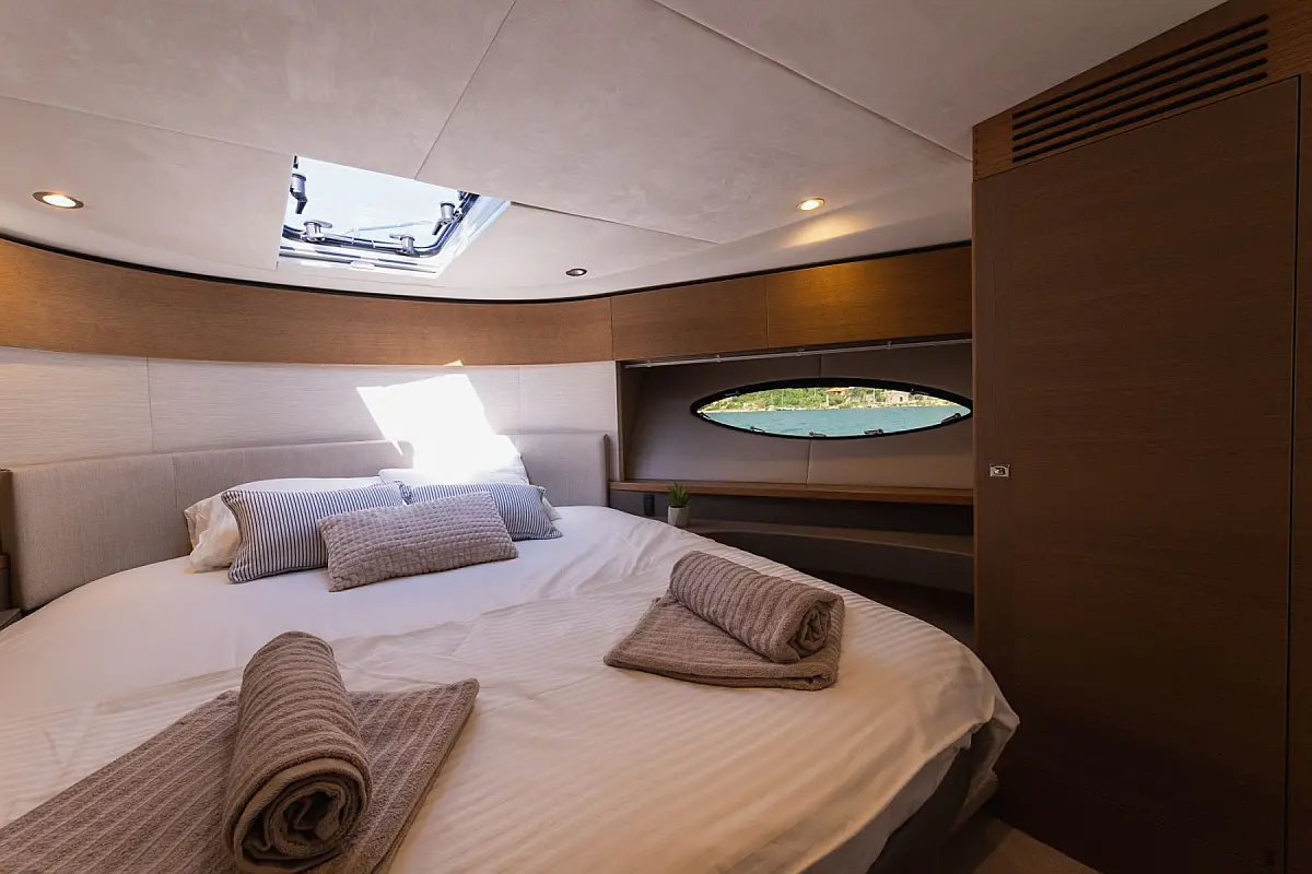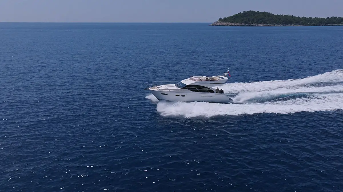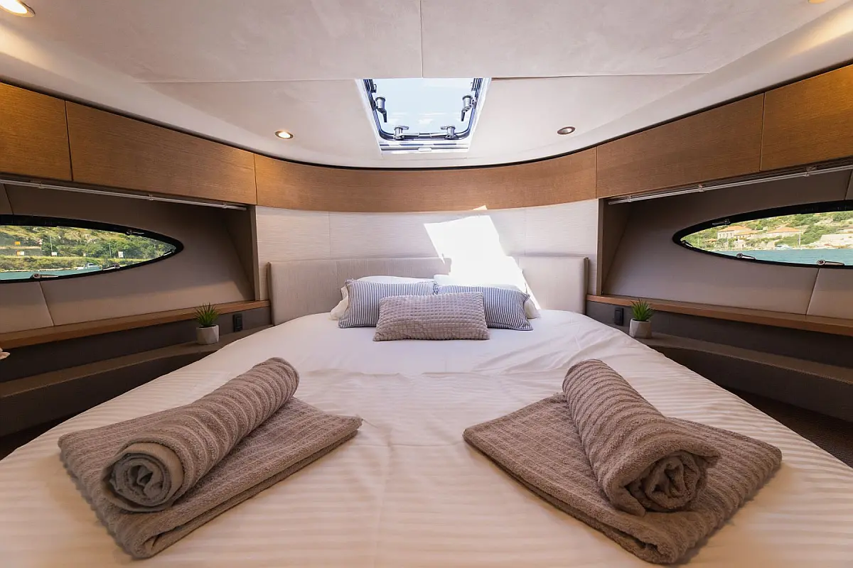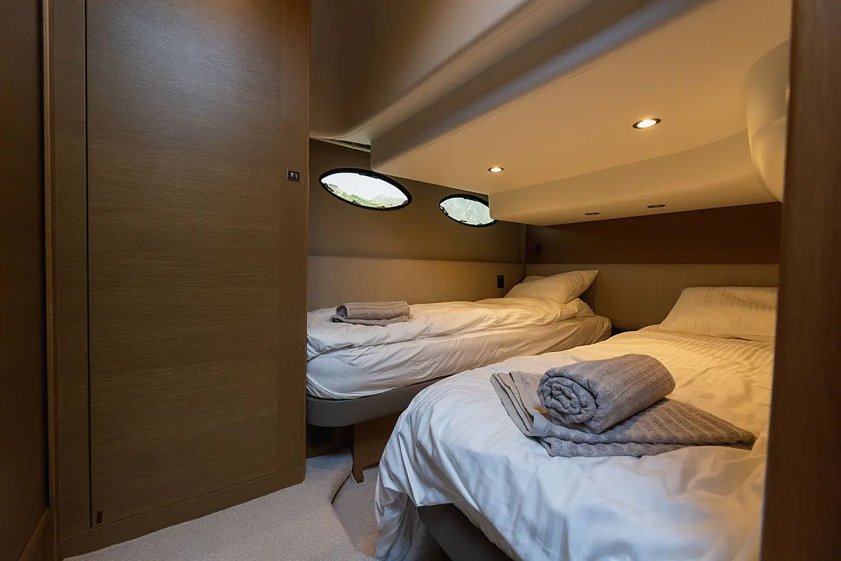 48 ft | Length 2 Cabins 4 Berths 2 Heads Technical Specifications Draught: 4 ft | Engine: 2x550 Hp Cummins QSB Water capacity: 455.00 l Main sail: None Displacement: 15100.00 kg Fuel capacity: 1363.00 l Beam: 14 ft | Genoa: None Equipment Comfort: Flybridge, Heating, Air condition Entertainment: TV Documents Download Brochure