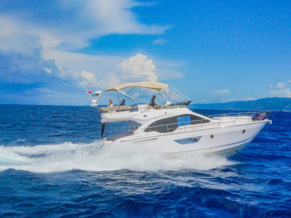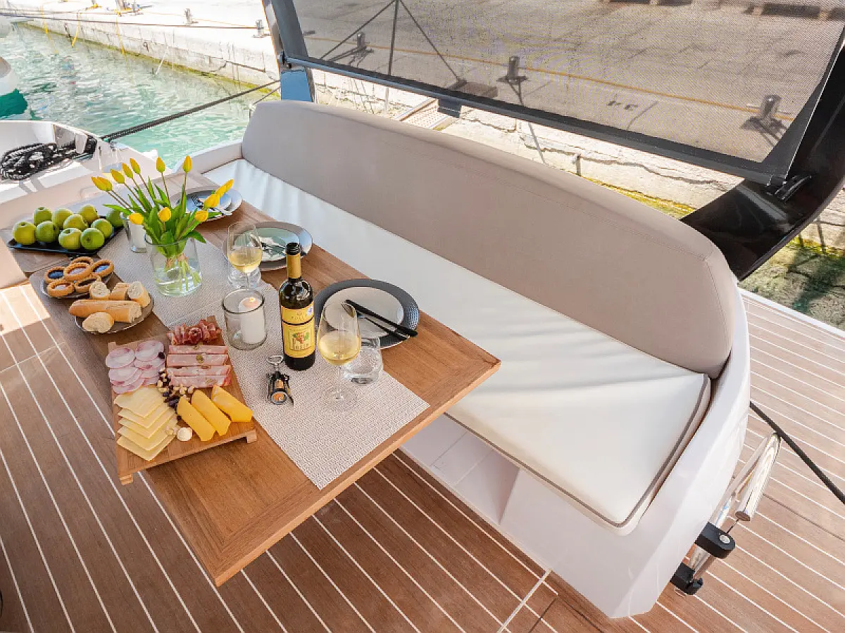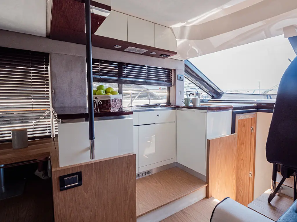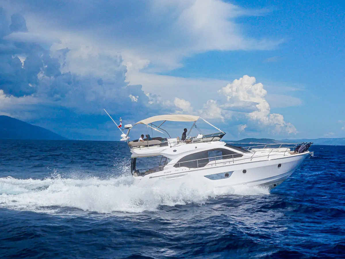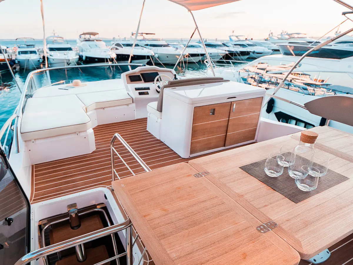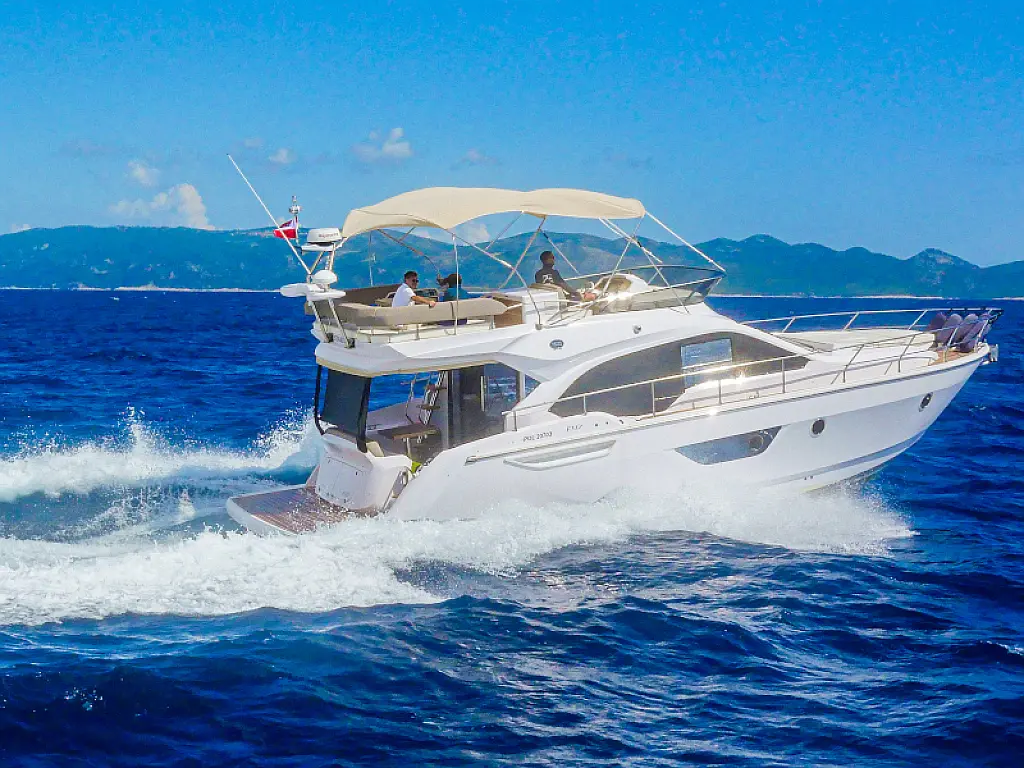 47 ft | Length 3 Cabins 8 6+2 Berths 2 Heads Technical Specifications Draught: 4 ft | Engine: 2x435 hp 2x Volvo Penta D6 IPS 600 Water capacity: 560.00 l Main sail: None Displacement: N/A Fuel capacity: 1272.00 l Beam: 14 ft | Genoa: None Equipment Comfort: Bimini Documents Download Brochure