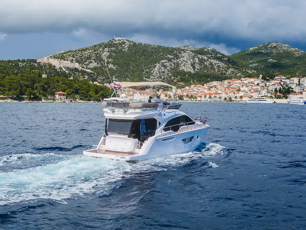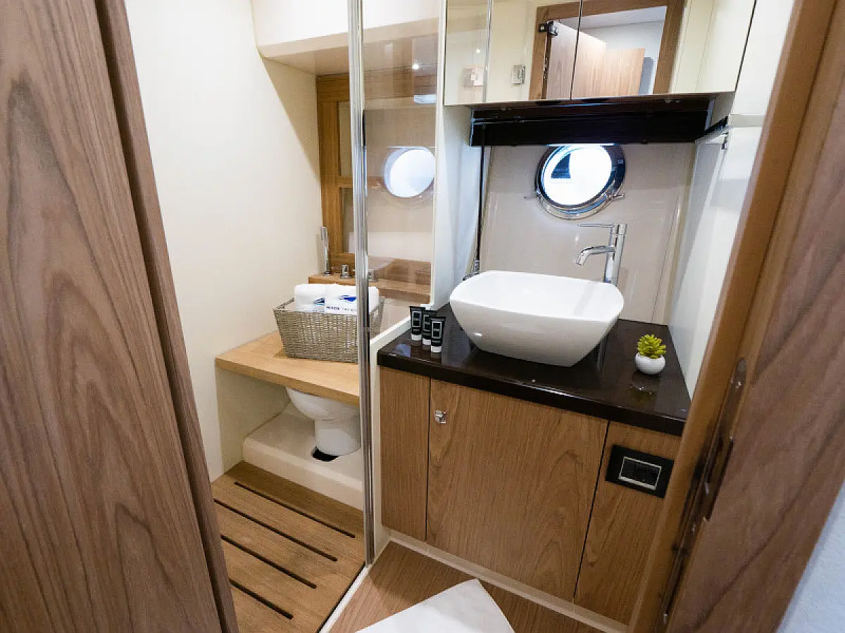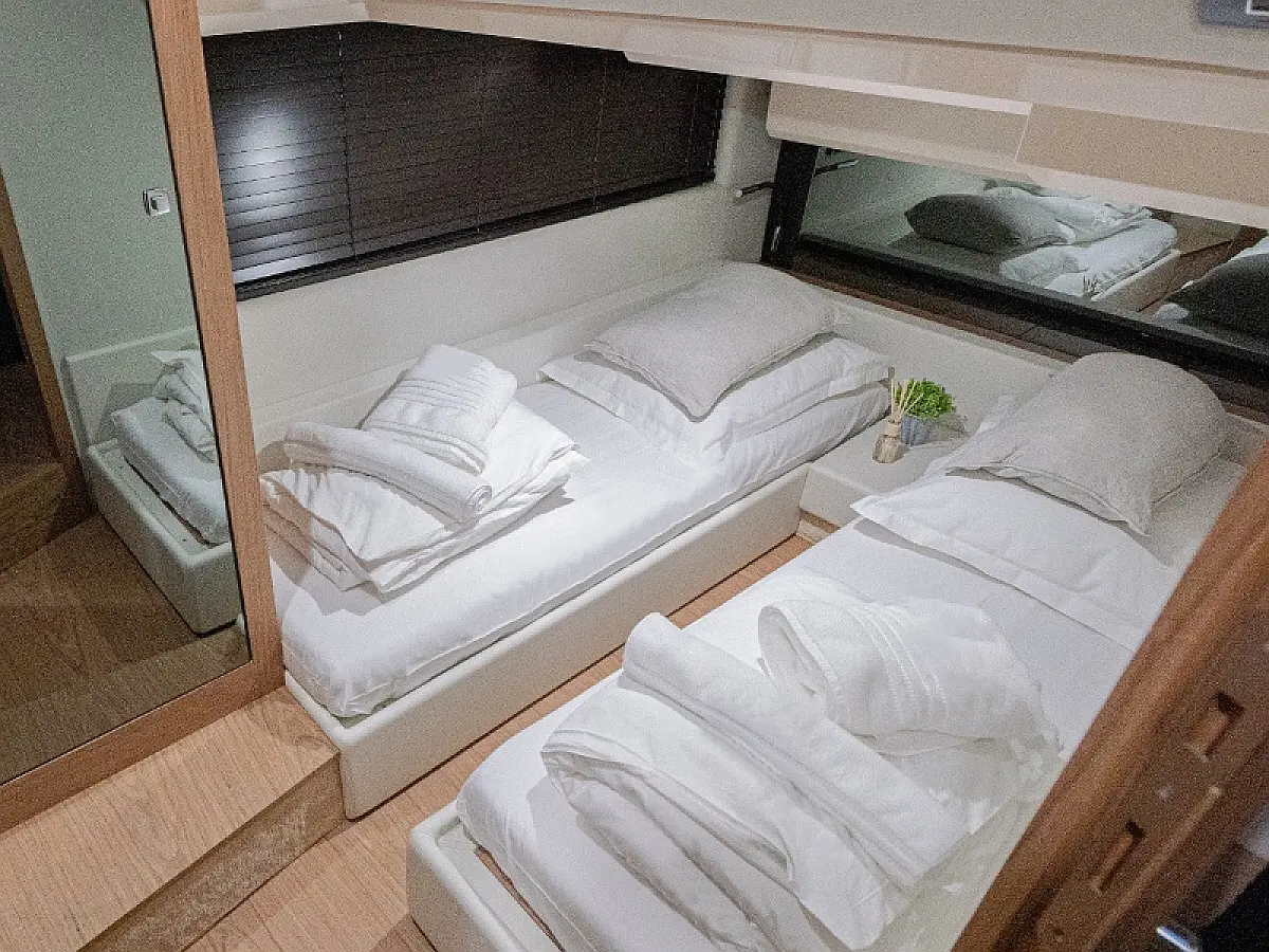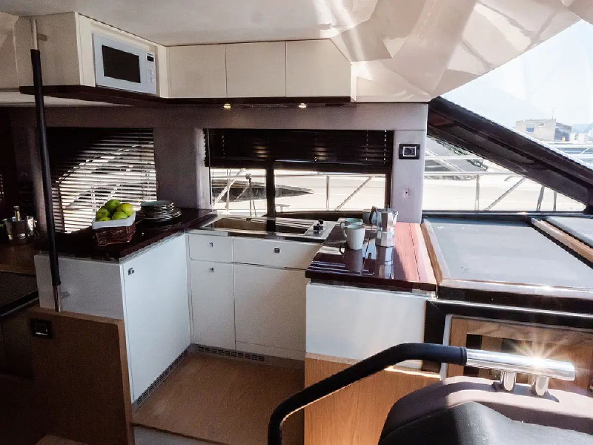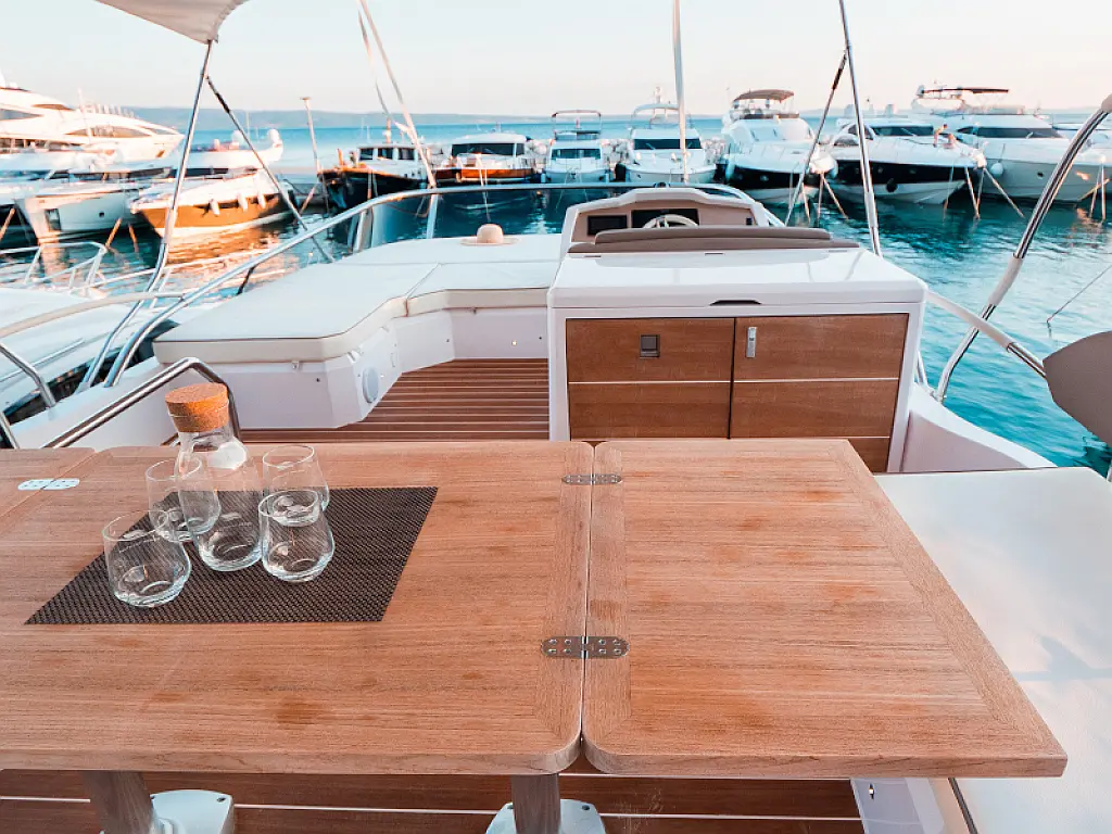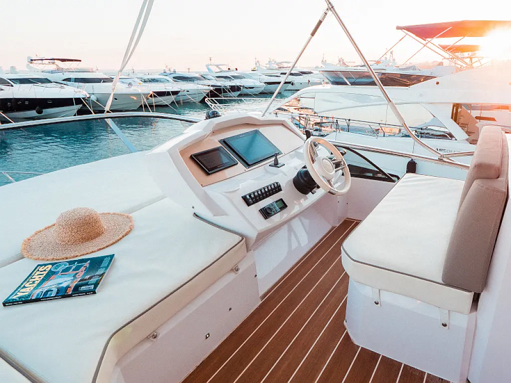 47 ft | Length 3 Cabins 8 6+2 Berths 2 Heads Technical Specifications Draught: 4 ft | Engine: 2x435 hp 2x Volvo Penta D6 IPS 600 Water capacity: 560.00 l Main sail: None Displacement: N/A Fuel capacity: 1272.00 l Beam: 14 ft | Genoa: None Equipment Comfort: Bimini Documents Download Brochure