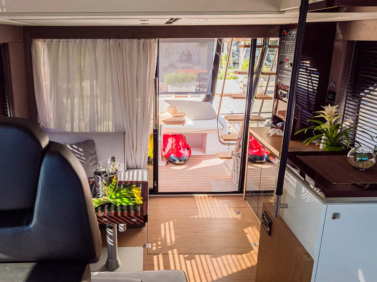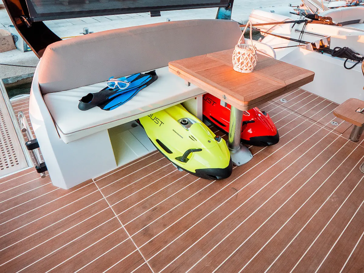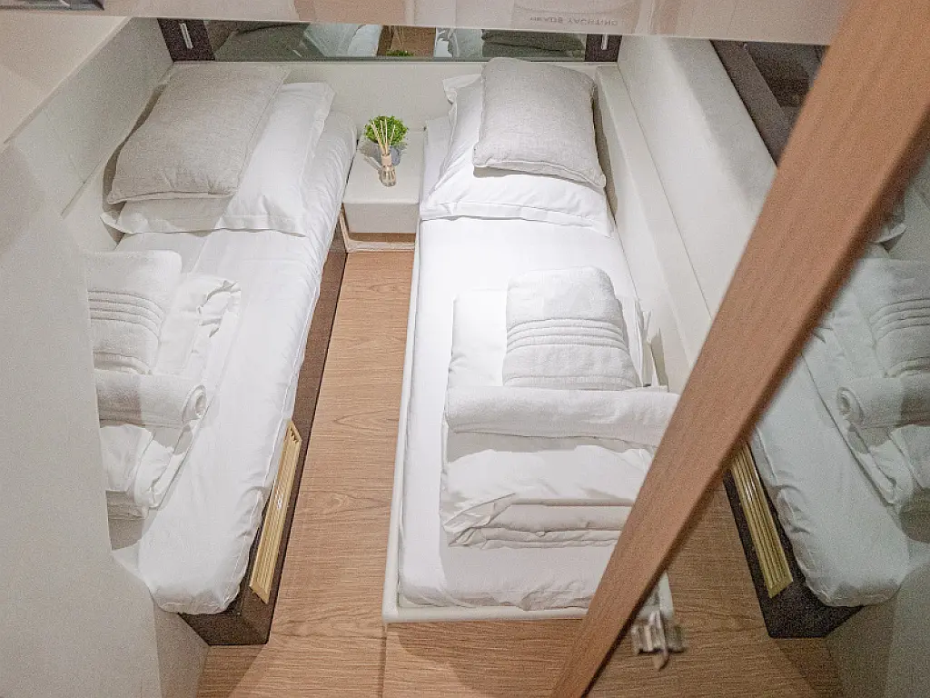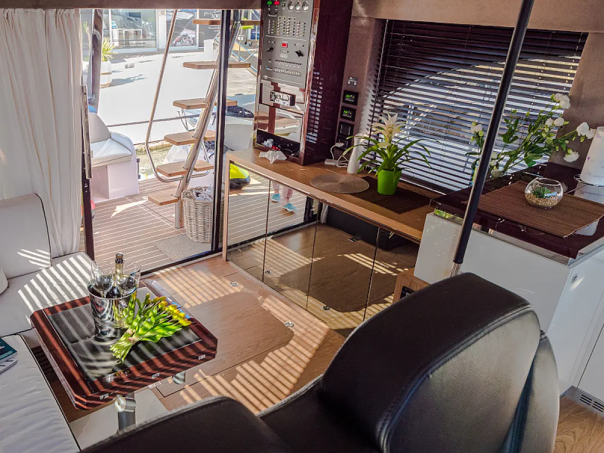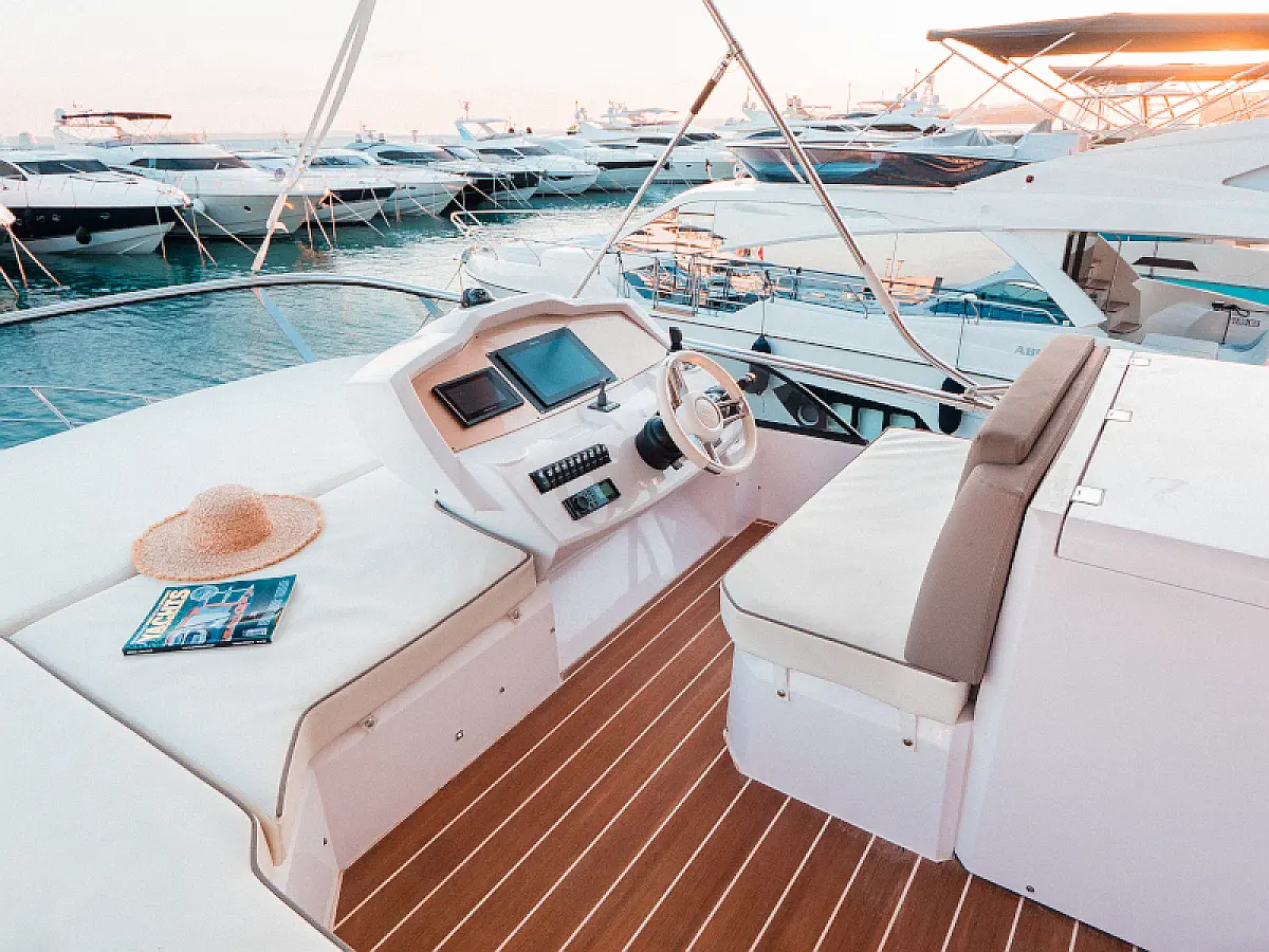 47 ft | Length 3 Cabins 8 6+2 Berths 2 Heads Technical Specifications Draught: 4 ft | Engine: 2x435 hp 2x Volvo Penta D6 IPS 600 Water capacity: 560.00 l Main sail: None Displacement: N/A Fuel capacity: 1272.00 l Beam: 14 ft | Genoa: None Equipment Comfort: Bimini Documents Download Brochure