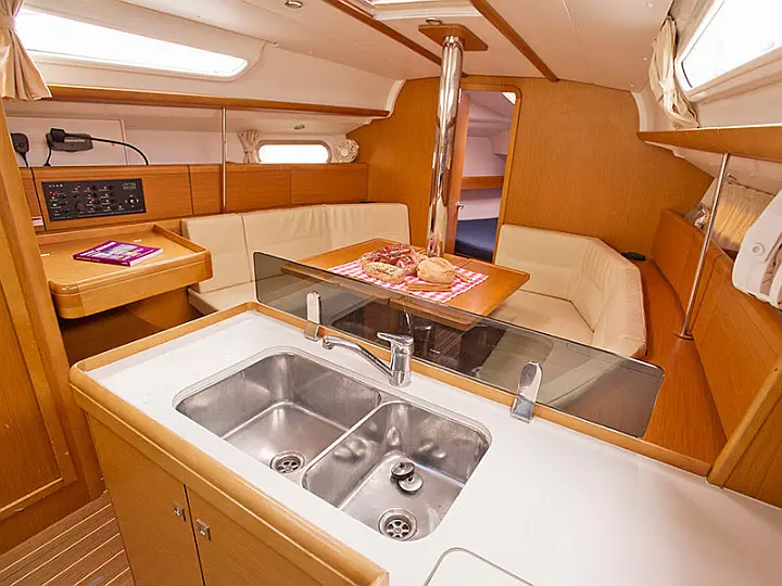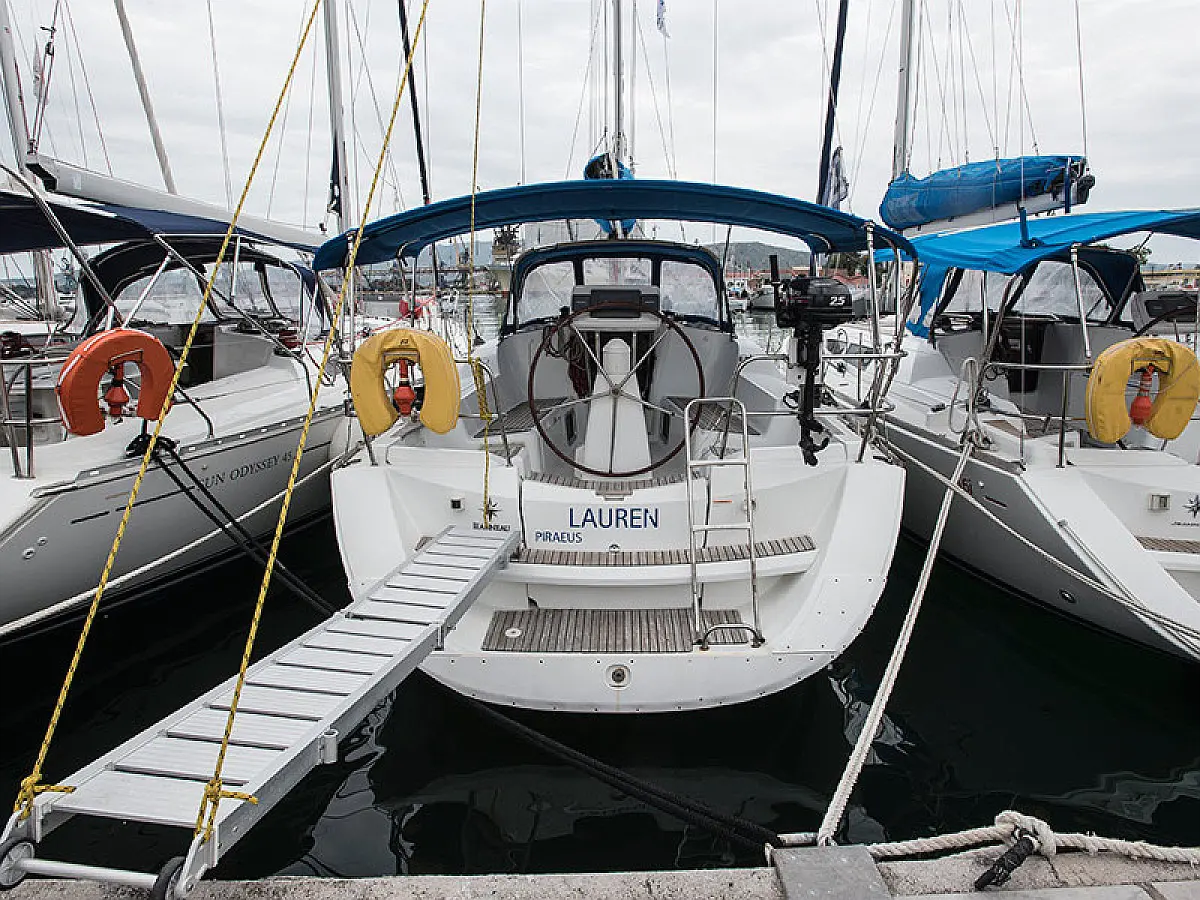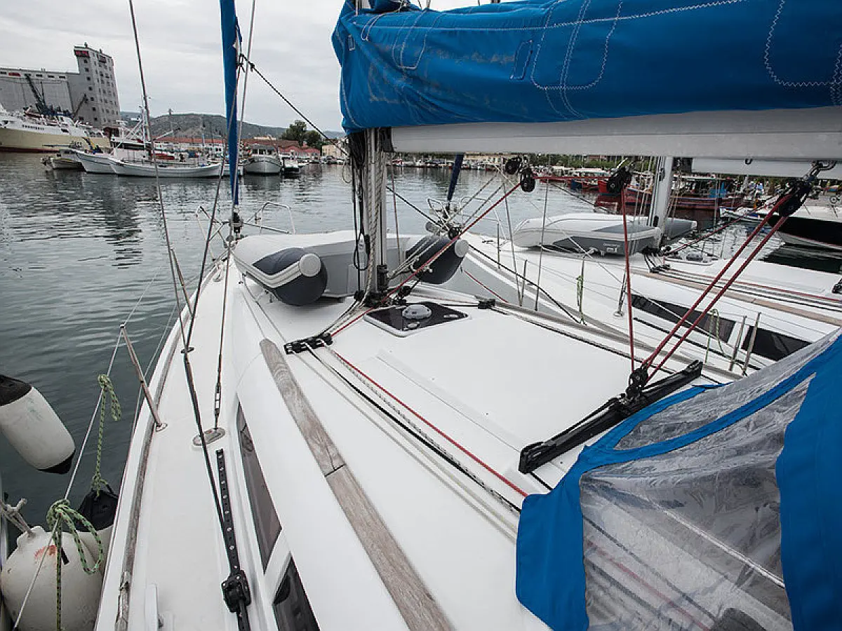 Bimini, Swimming platform, Refrigerator, Sprayhood, Cockpit cushions