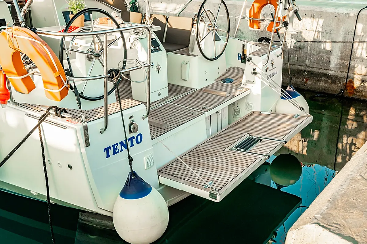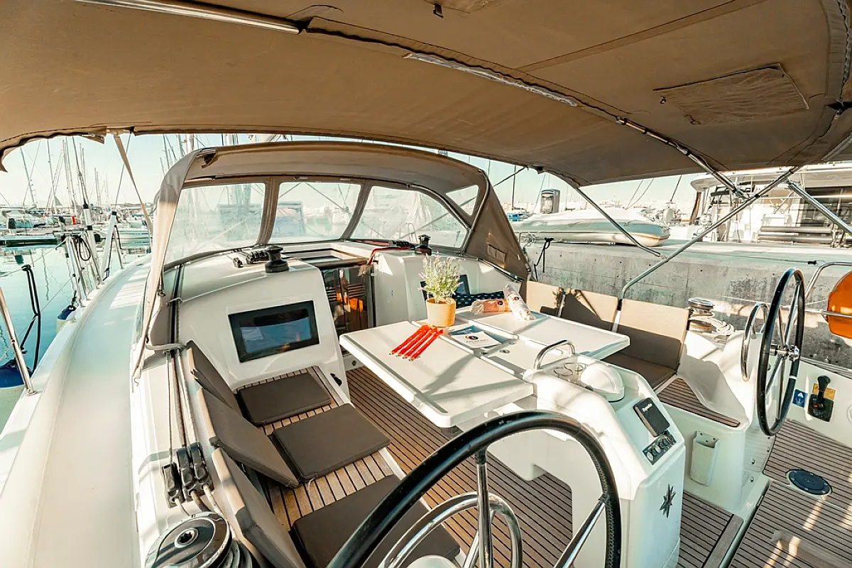 Dinghy, Outboard engine, Bimini, Cockpit cushions, Sprayhood, Teak Cockpit, Solar Panels, Convertible table, Refrigerator